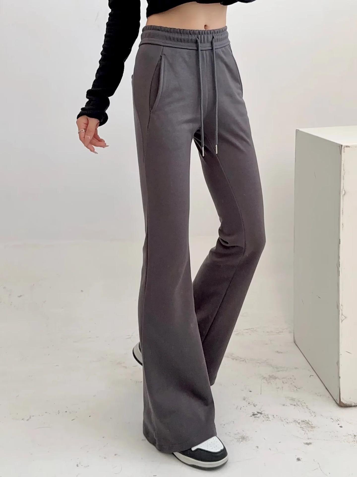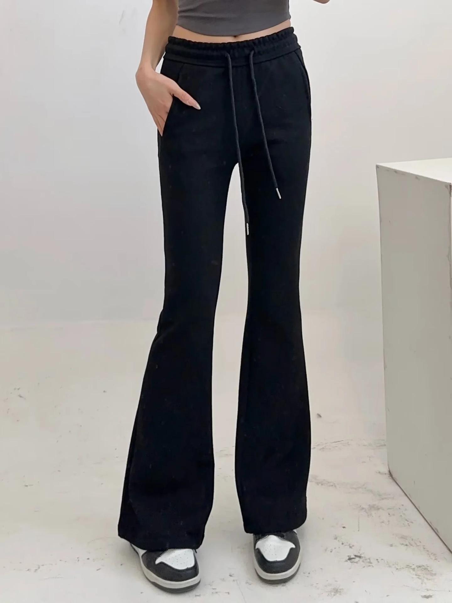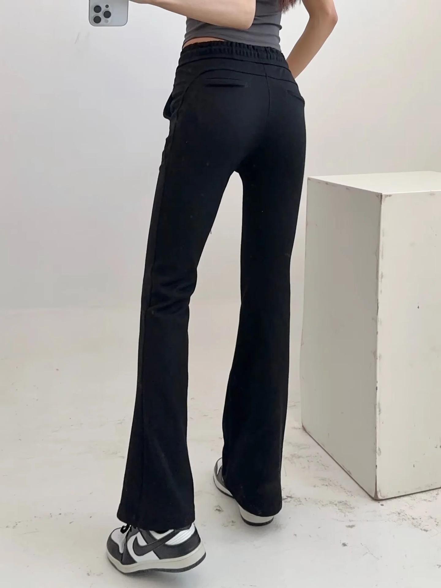 Pantalones acampanados retro americanos 2024 para mujer nuevos de tiro bajo con cordón elástico ajustados adelgazantes skinny casuales