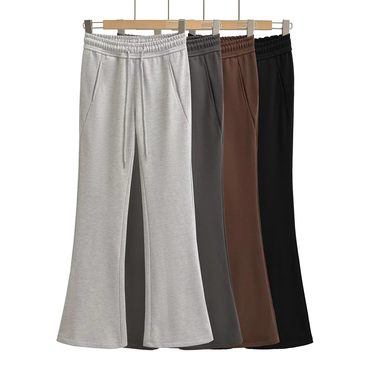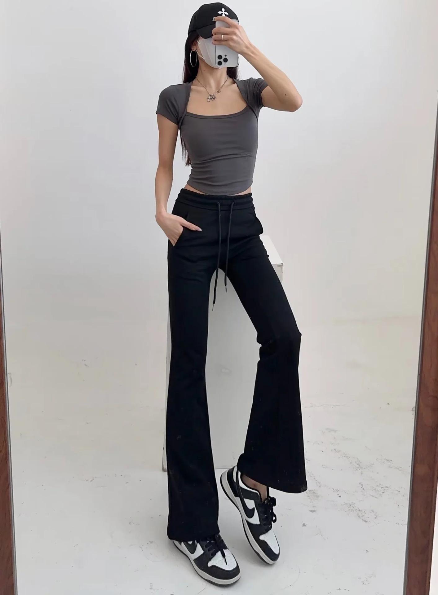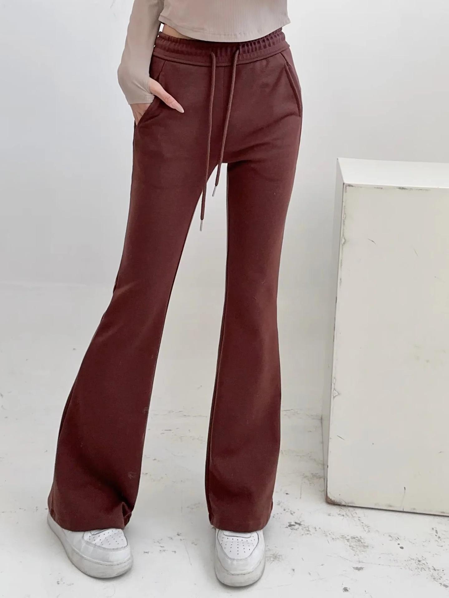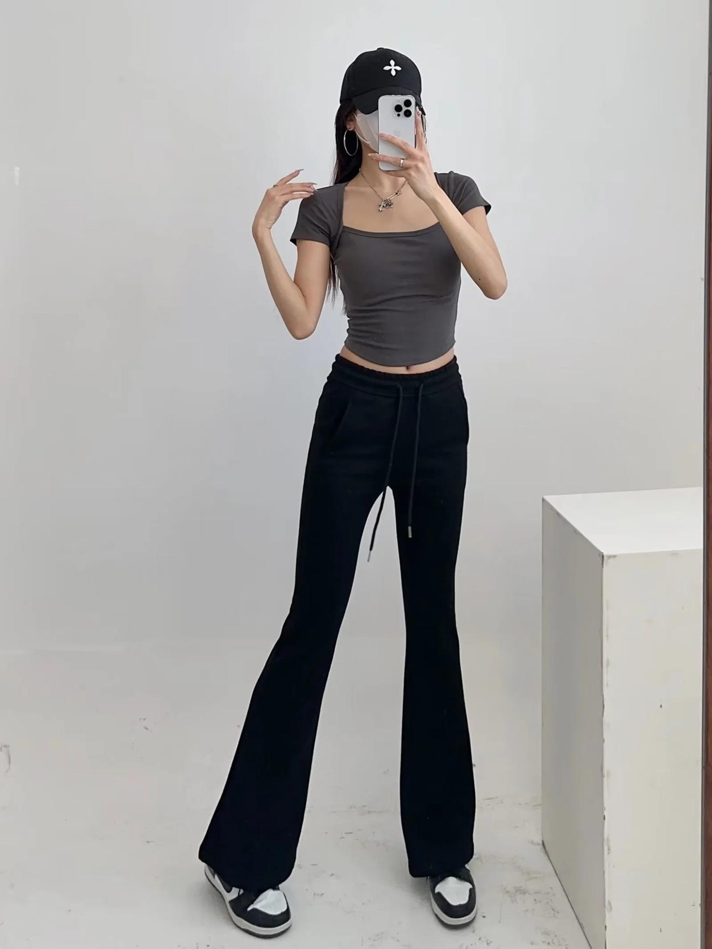 Pantalones acampanados retro americanos 2024 para mujer nuevos de tiro bajo con cordón elástico ajustados adelgazantes skinny casuales