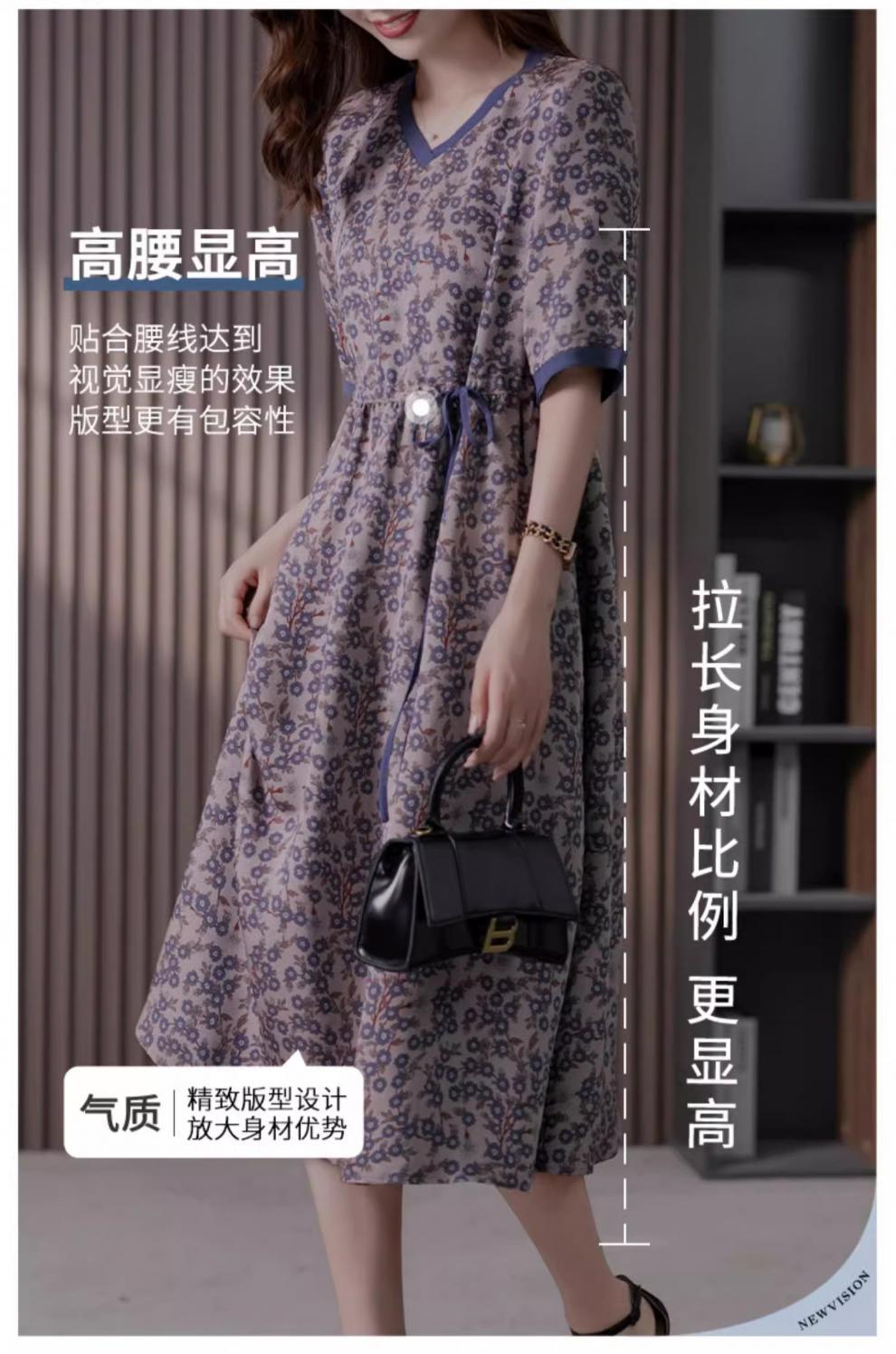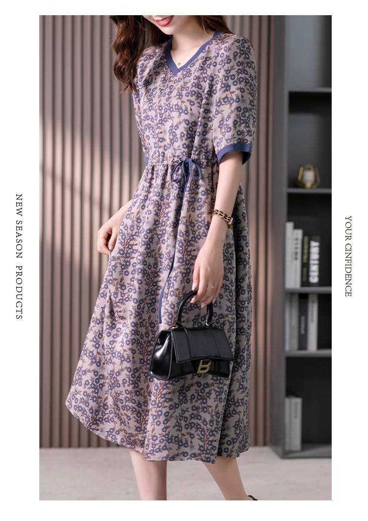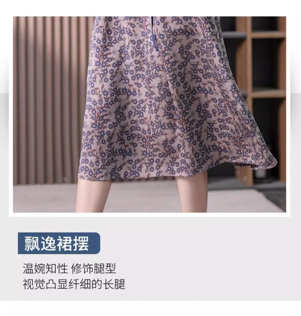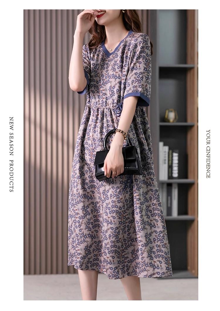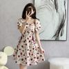 Vestido suave de estilo francés con estampado floral para mujer, Verano 2024 Nueva versión coreana, Elegante vestido floral entallado con lazo