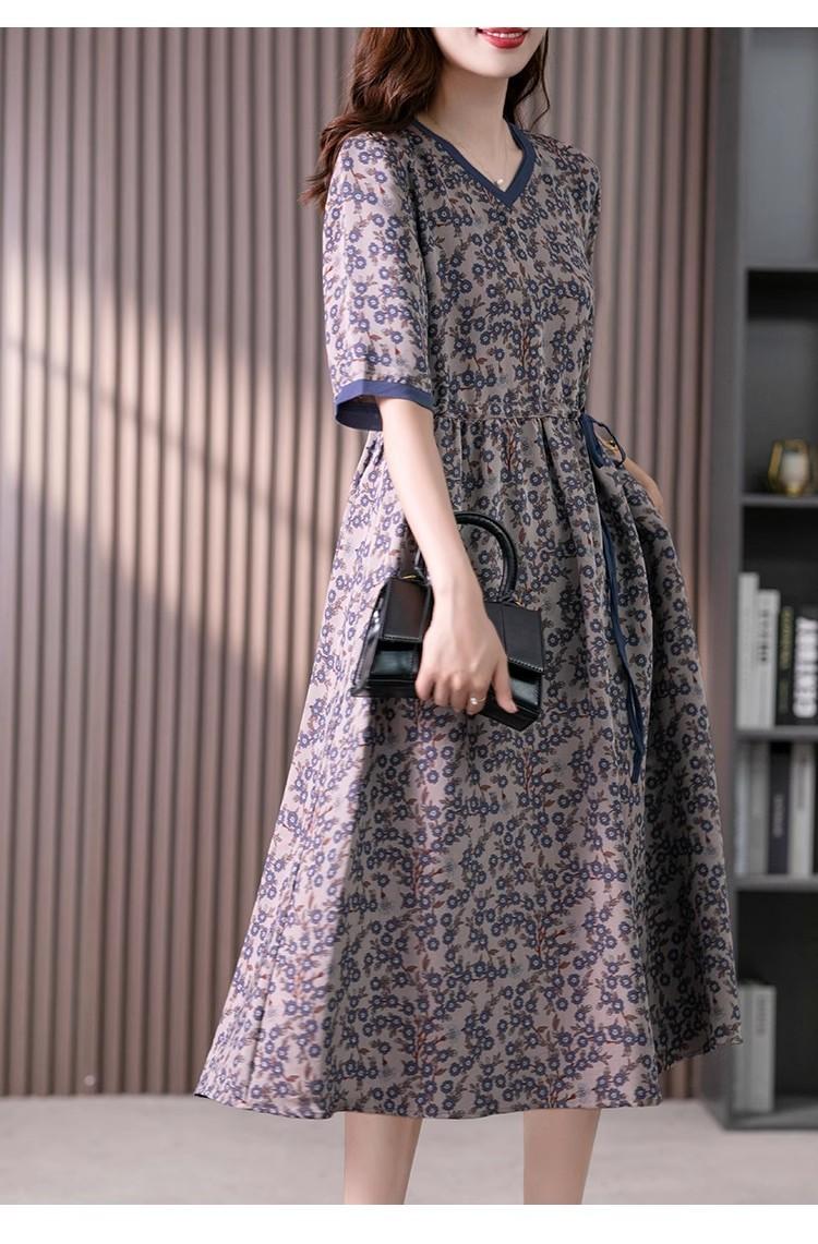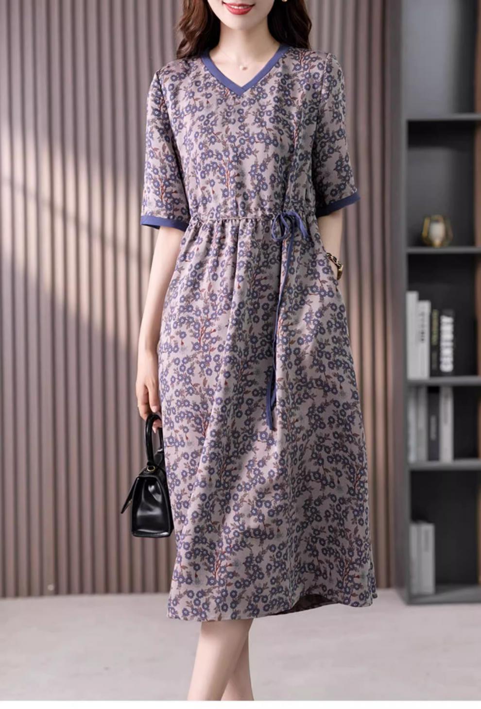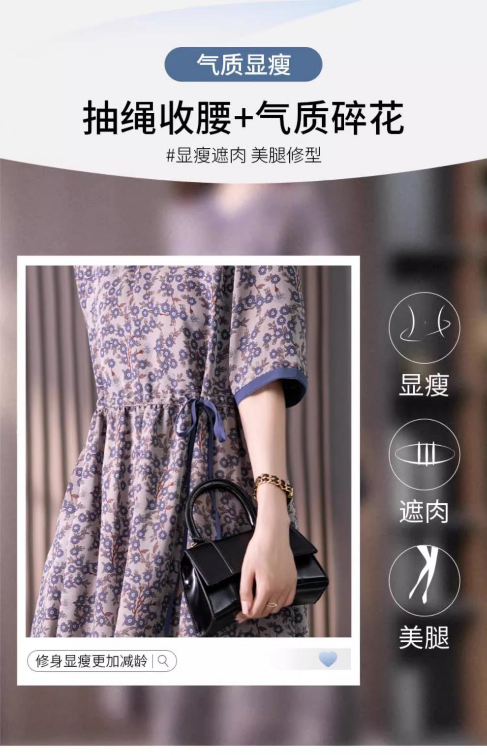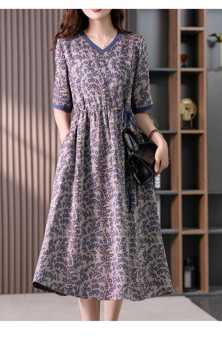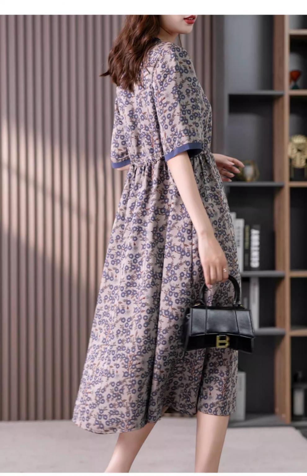 Vestido suave de estilo francés con estampado floral para mujer, Verano 2024 Nueva versión coreana, Elegante vestido floral entallado con lazo