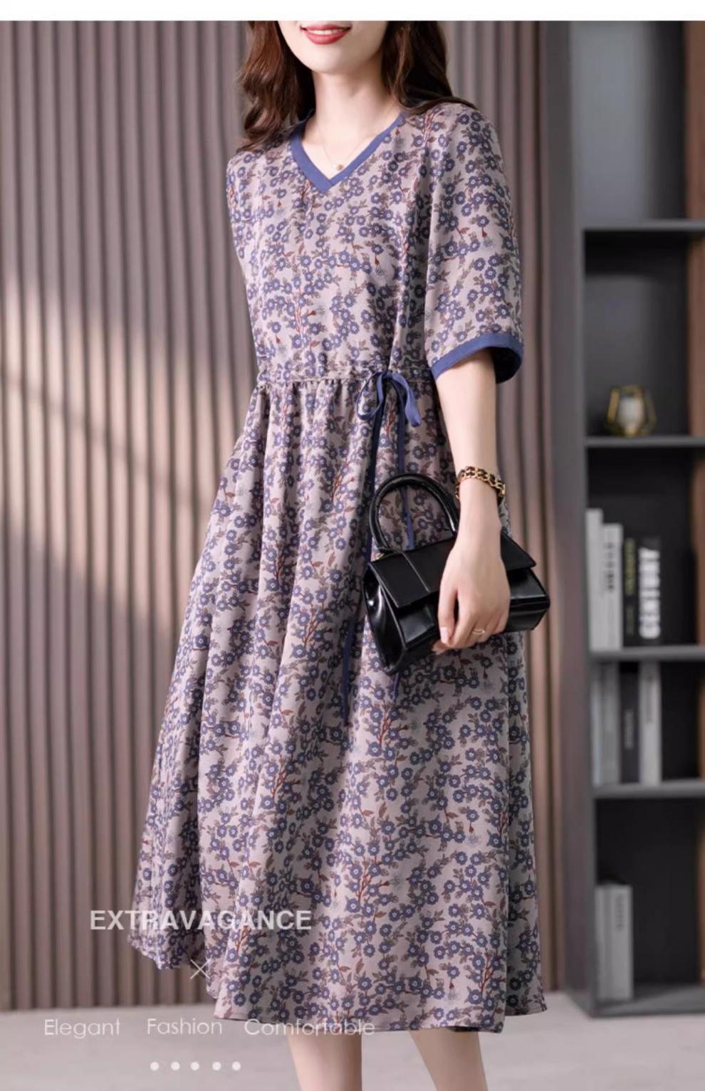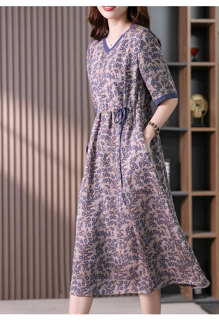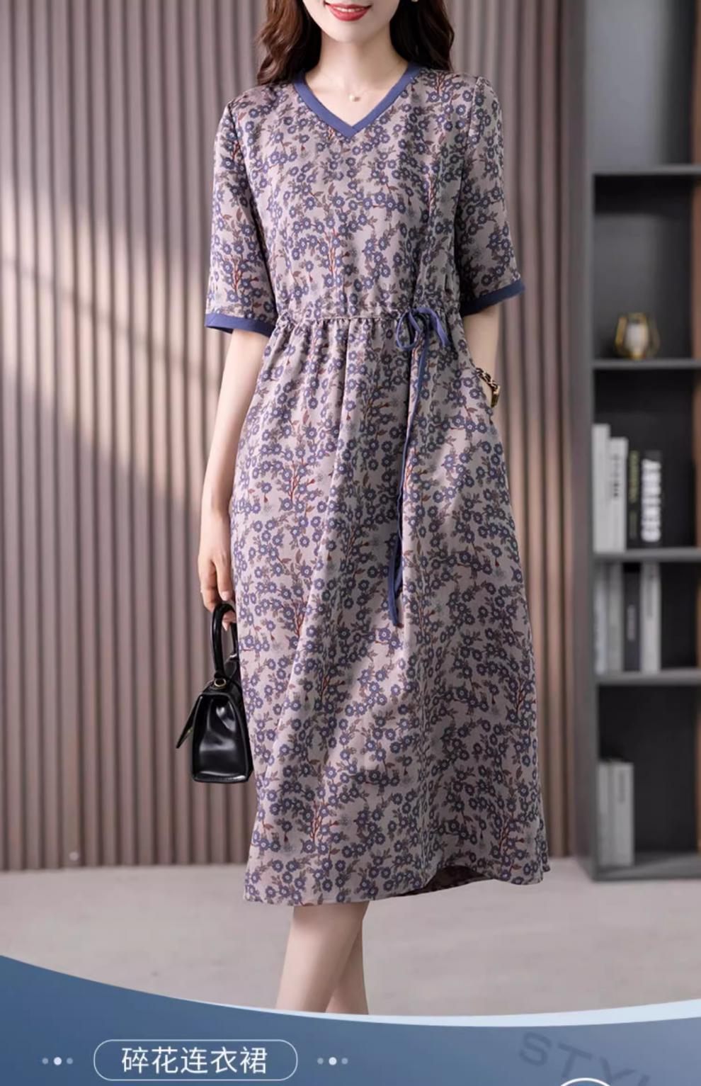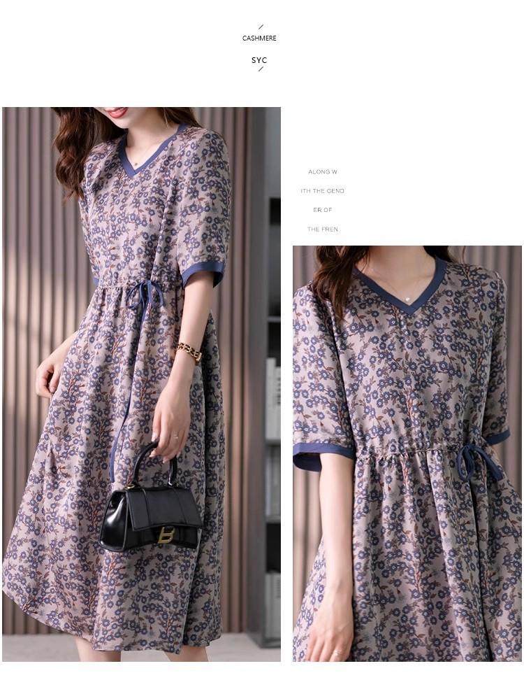 Vestido suave de estilo francés con estampado floral para mujer, Verano 2024 Nueva versión coreana, Elegante vestido floral entallado con lazo