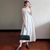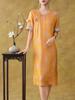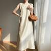 Vestido estilo chino retro de lino con una perla, temperamento artístico, cuello vertical, manga corta, corte A.