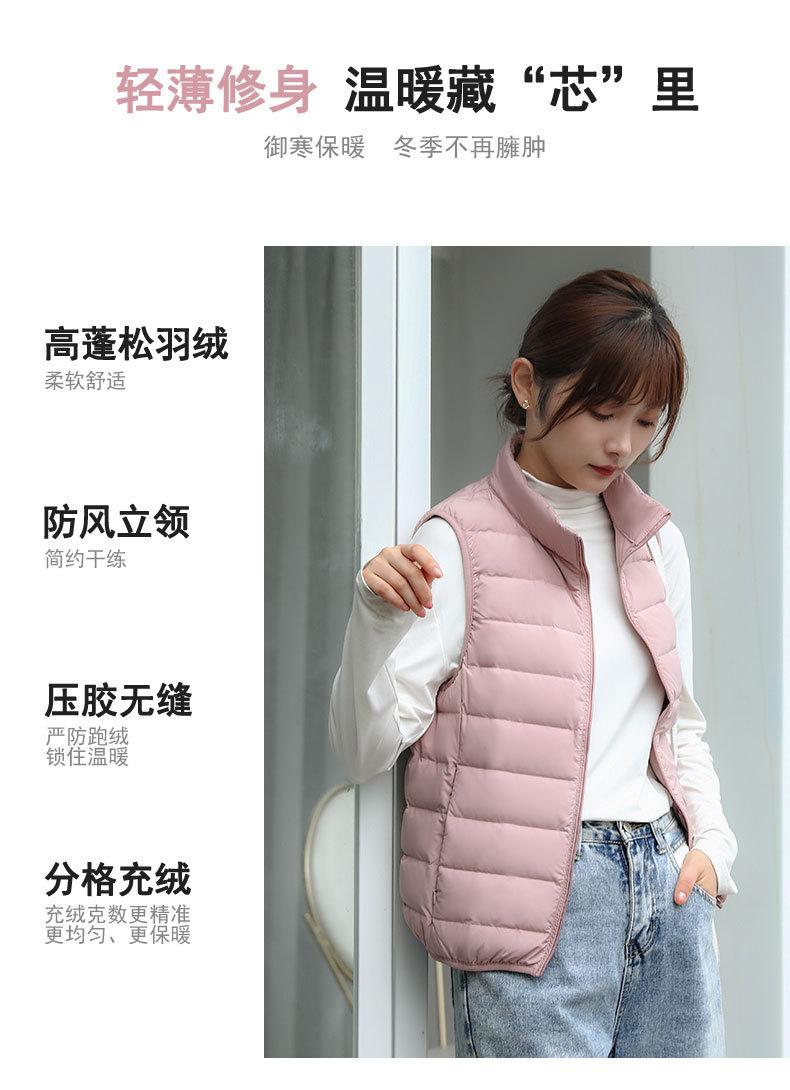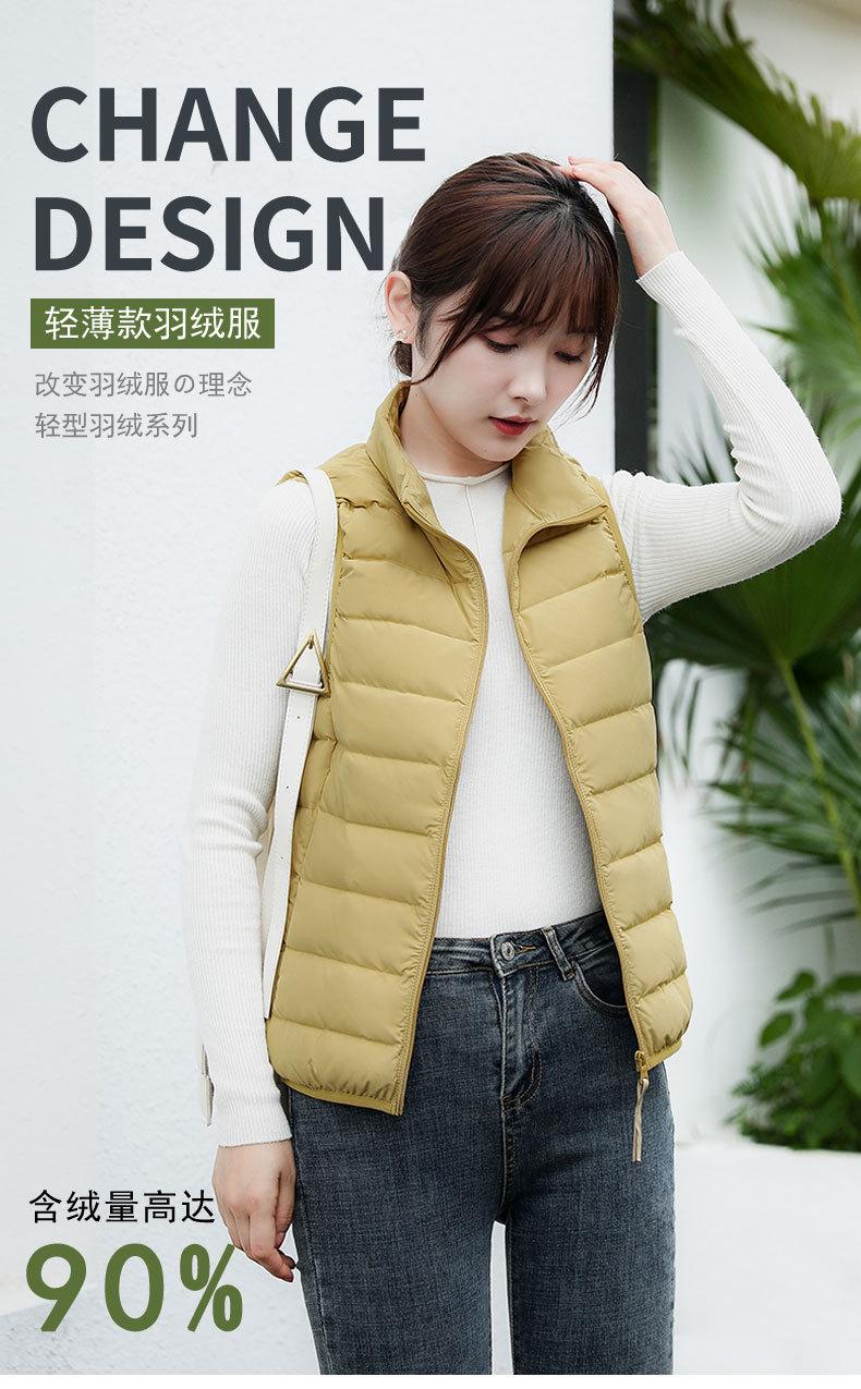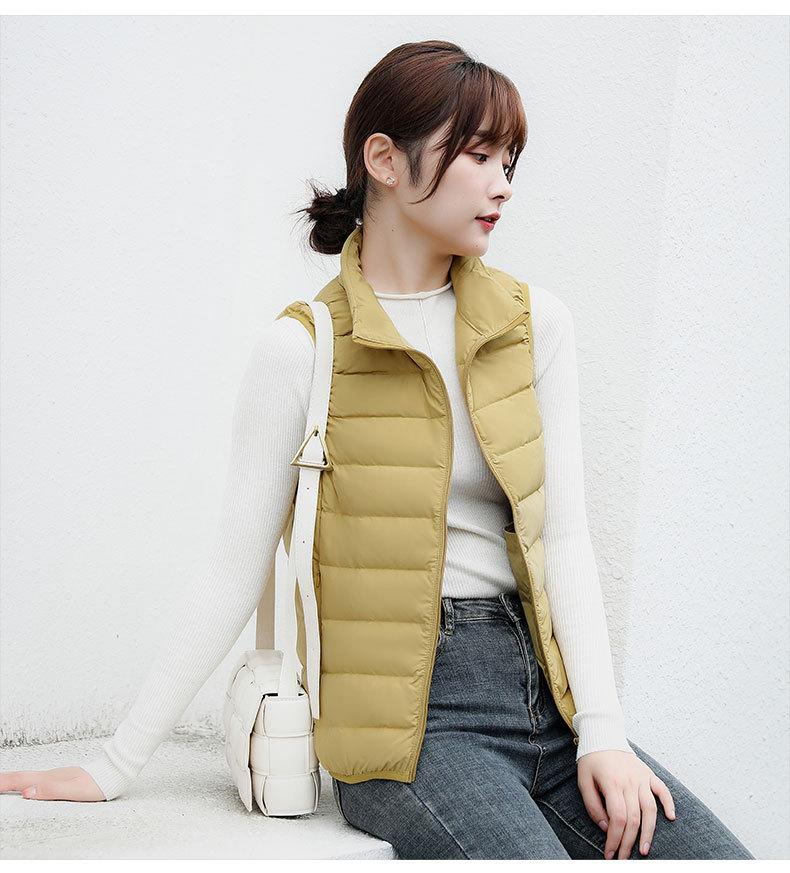 Hanwinter Si Yu Chaleco para Mujer 90 plumón Chaleco para Mujer con Cuello Alto Chaqueta de Plumón Laminada sin Costuras Chaqueta de Talla Grande Otoño e Invierno
