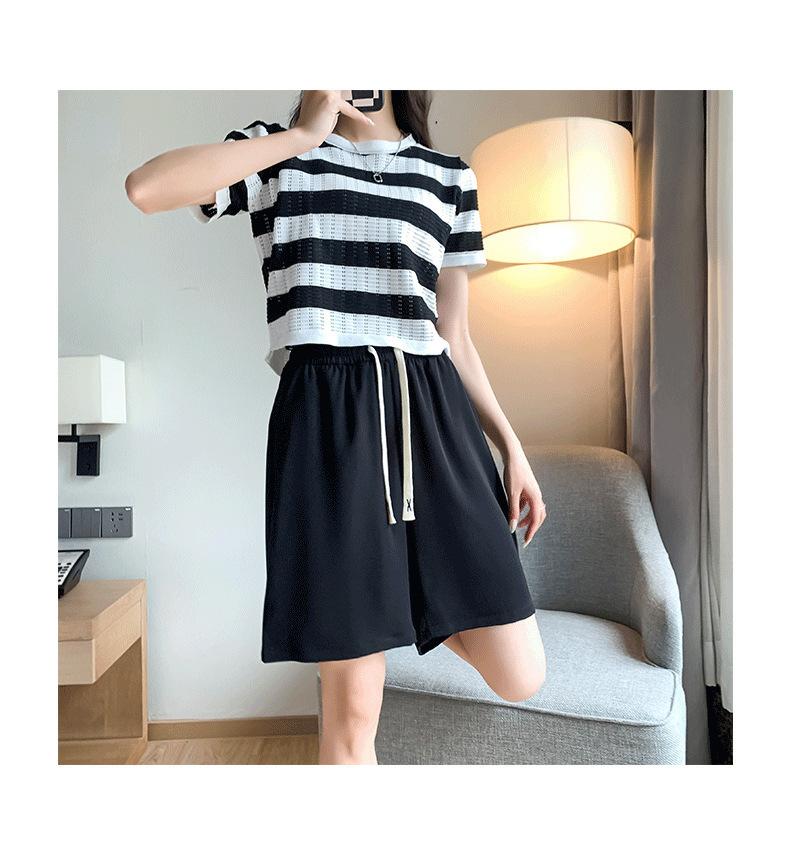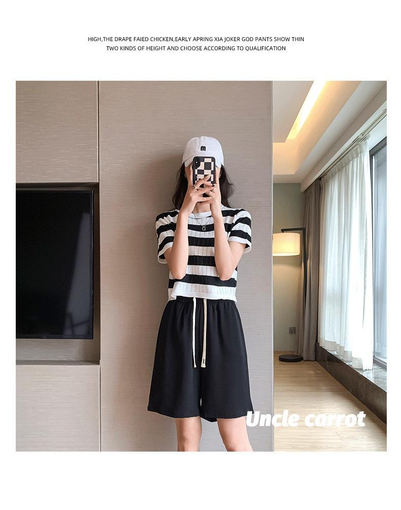 Pantalones de pierna ancha para mujer, otoño 2023, nuevos pantalones casuales ajustados con pliegues y rayas populares, rectos y pequeños.