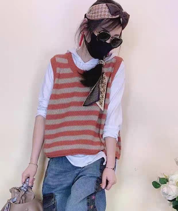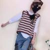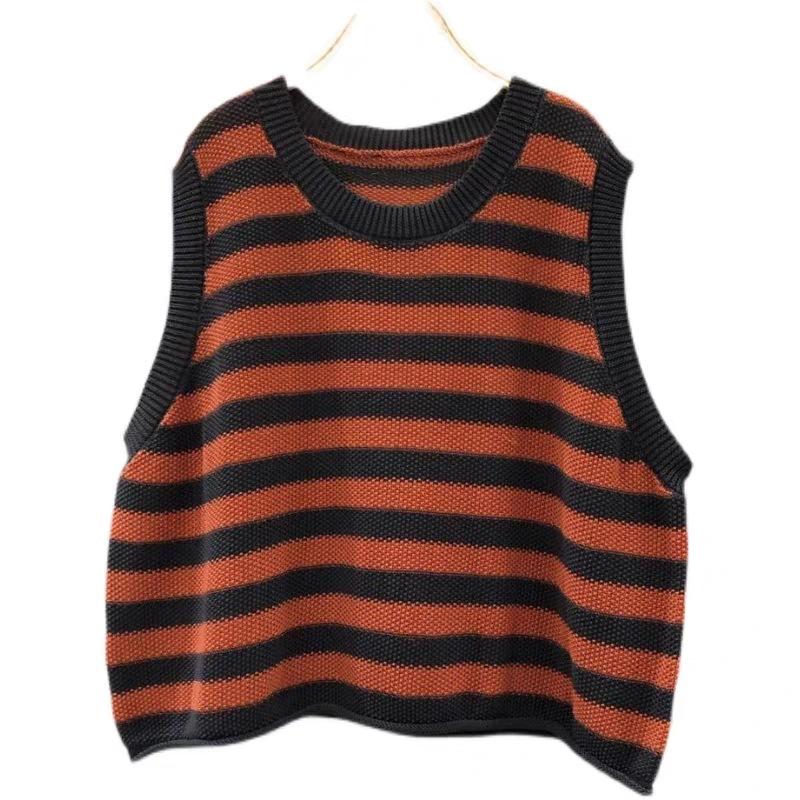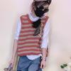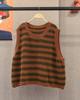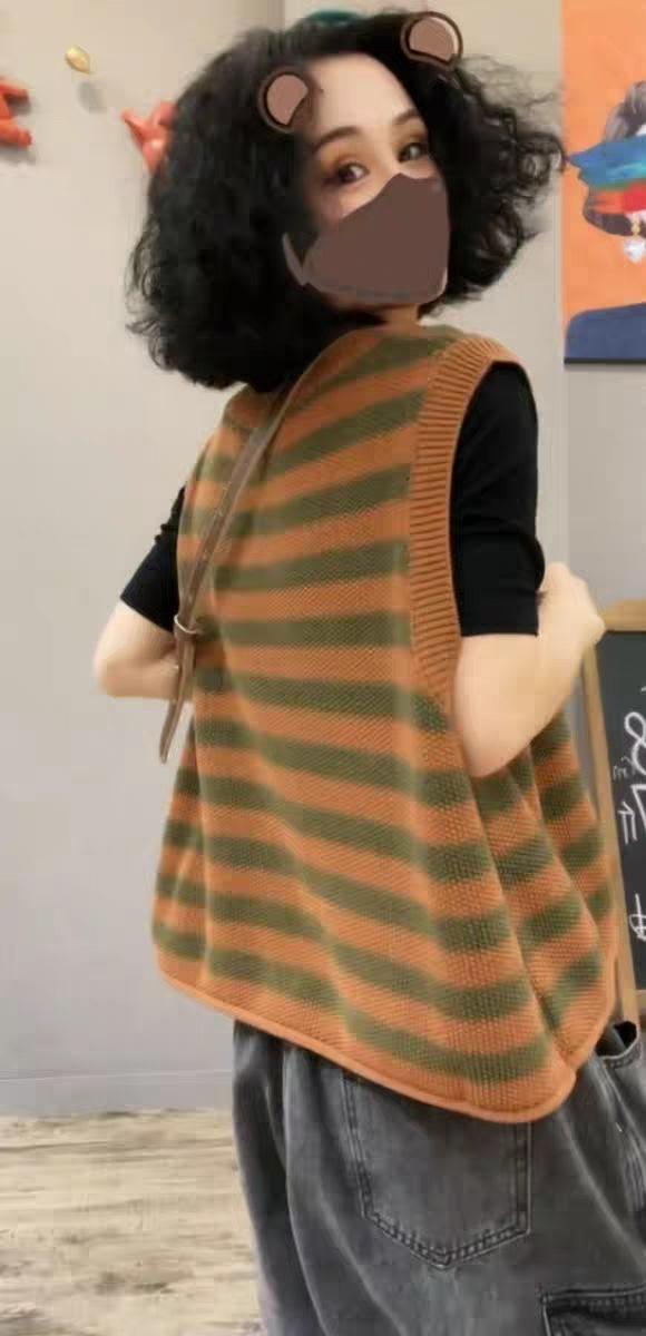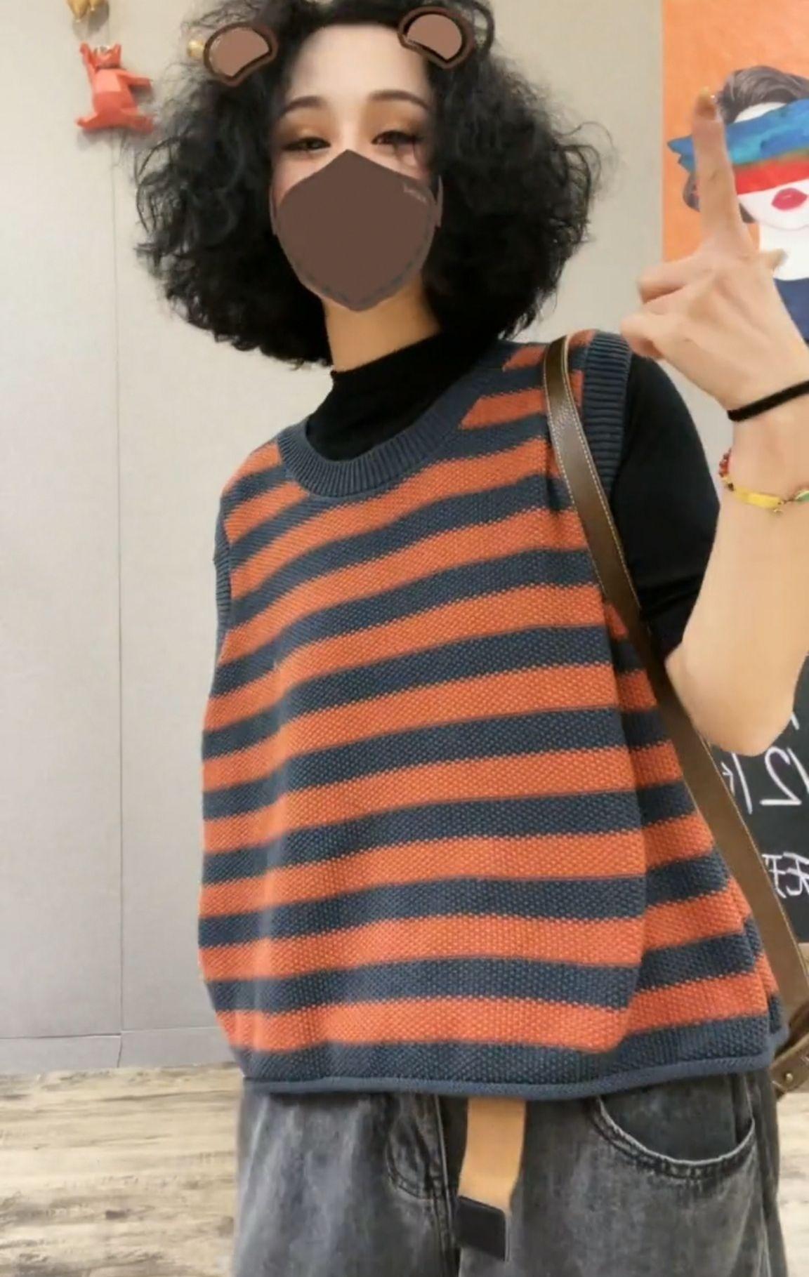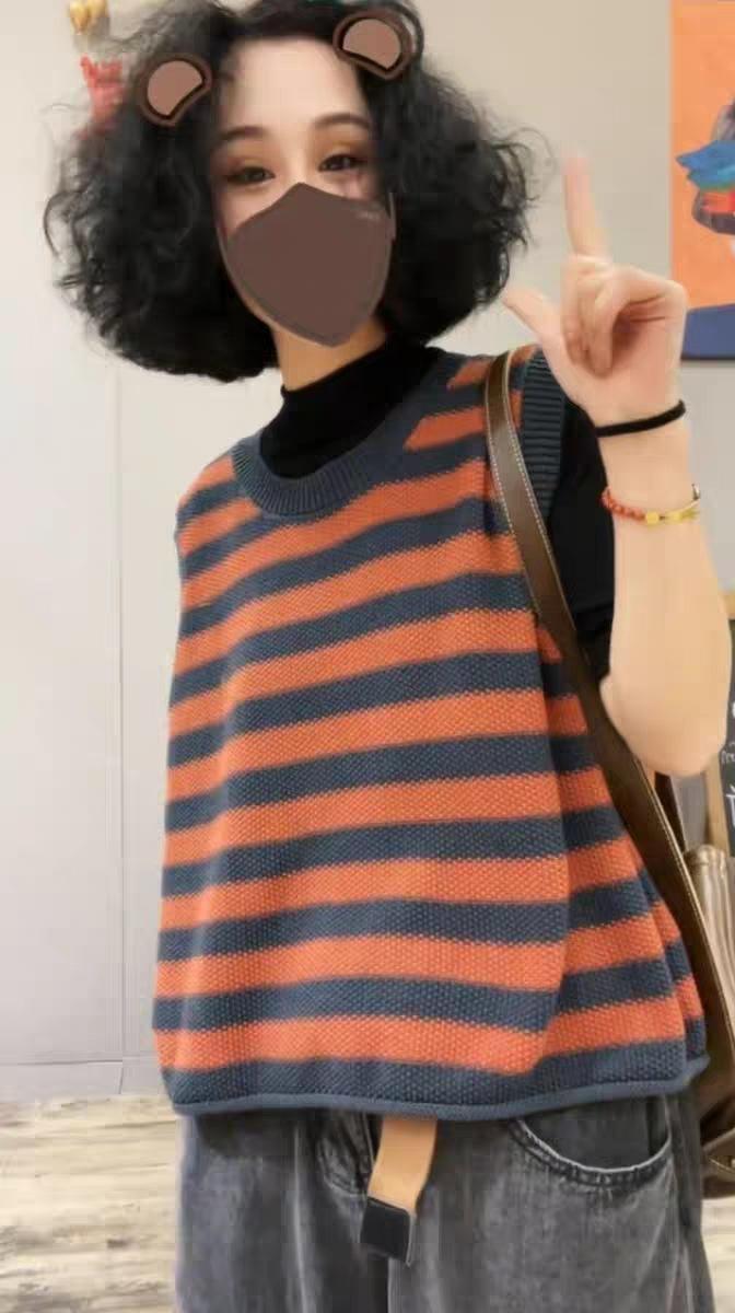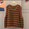 Chaleco de Punto Popular de Otoño 2024 con Rayas a Color para Mujer, Jersey Corto Suelto y Versátil, Cubre-Up para Reducir la Edad y Chaleco Adelgazante