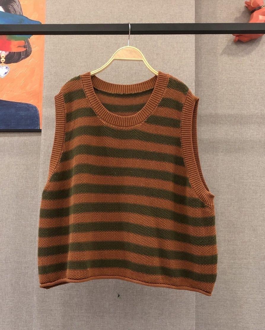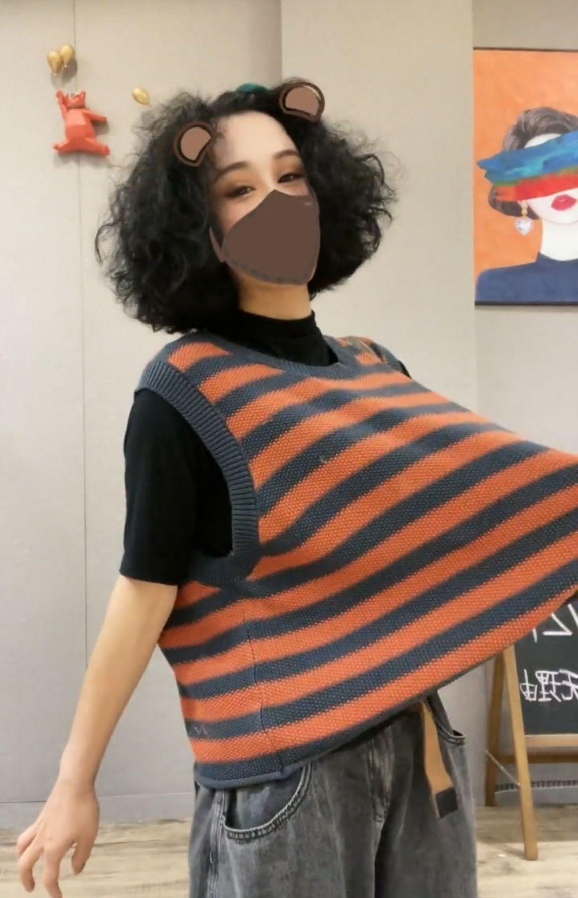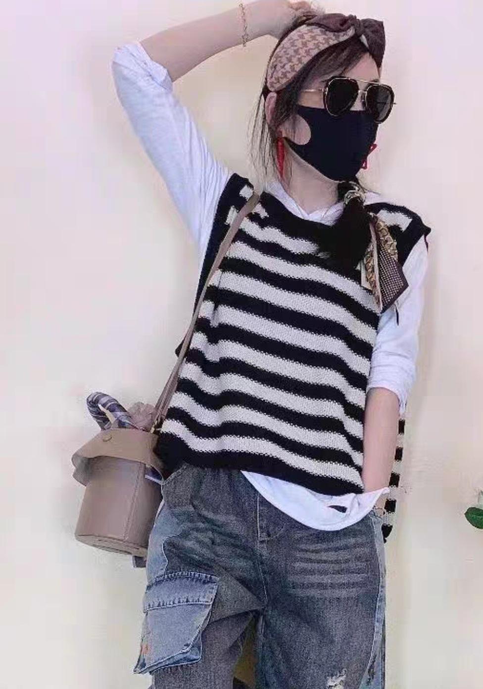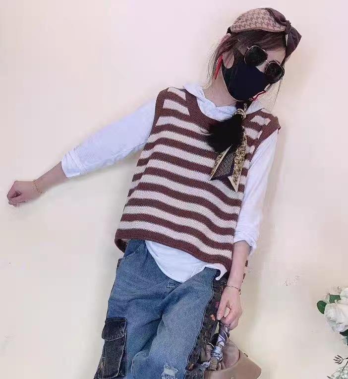 Chaleco de Punto Popular de Otoño 2024 con Rayas a Color para Mujer, Jersey Corto Suelto y Versátil, Cubre-Up para Reducir la Edad y Chaleco Adelgazante