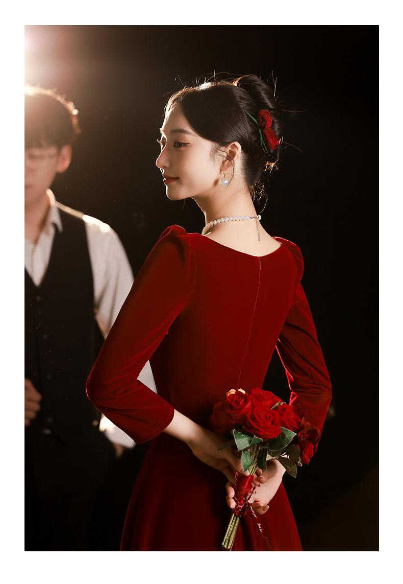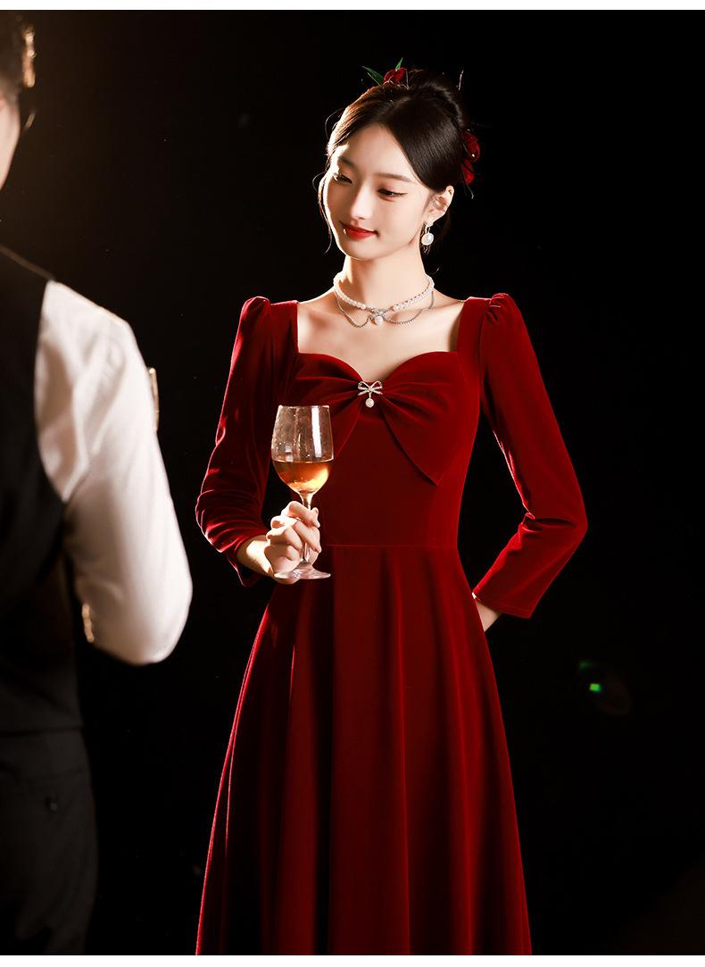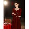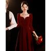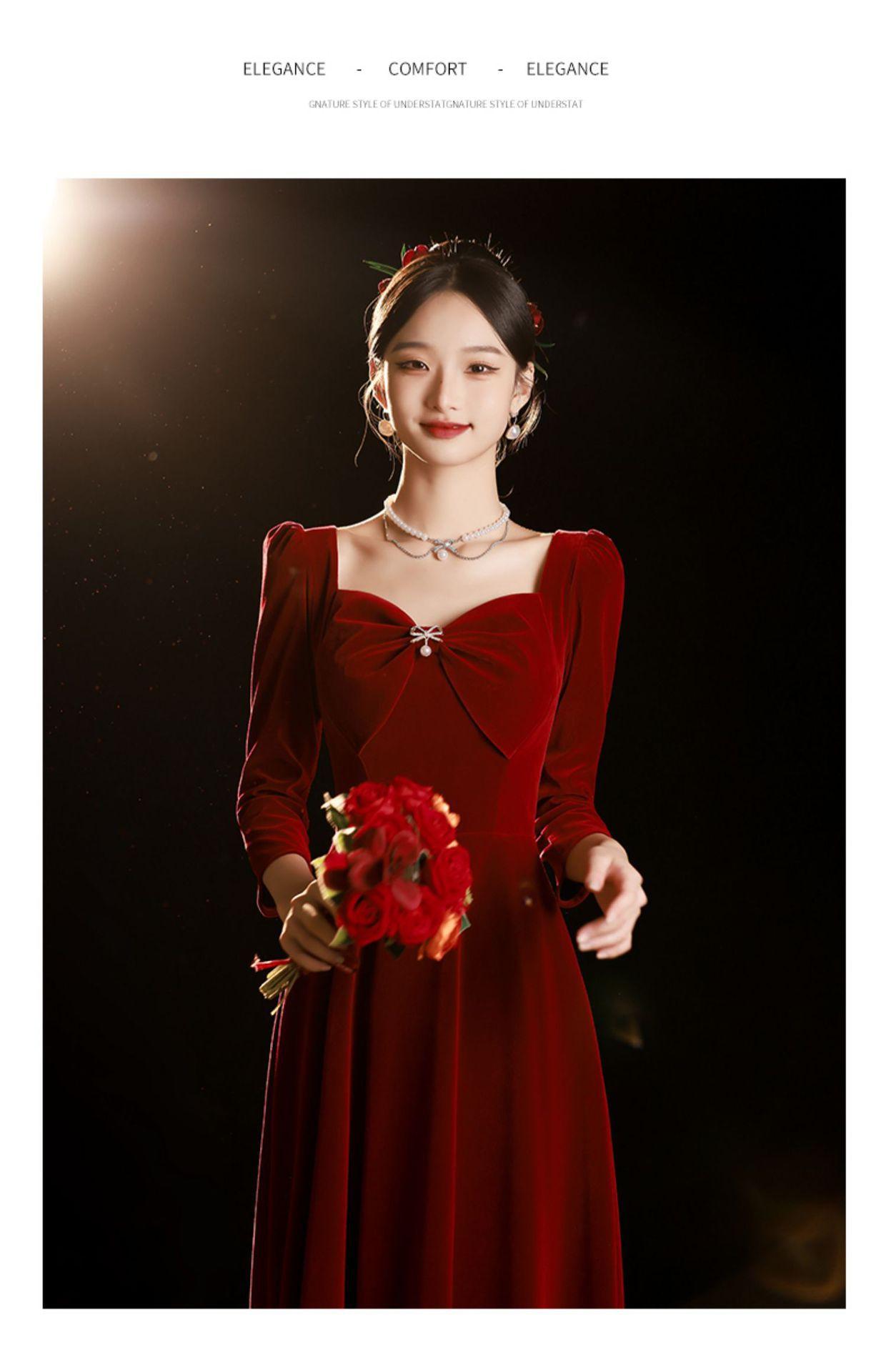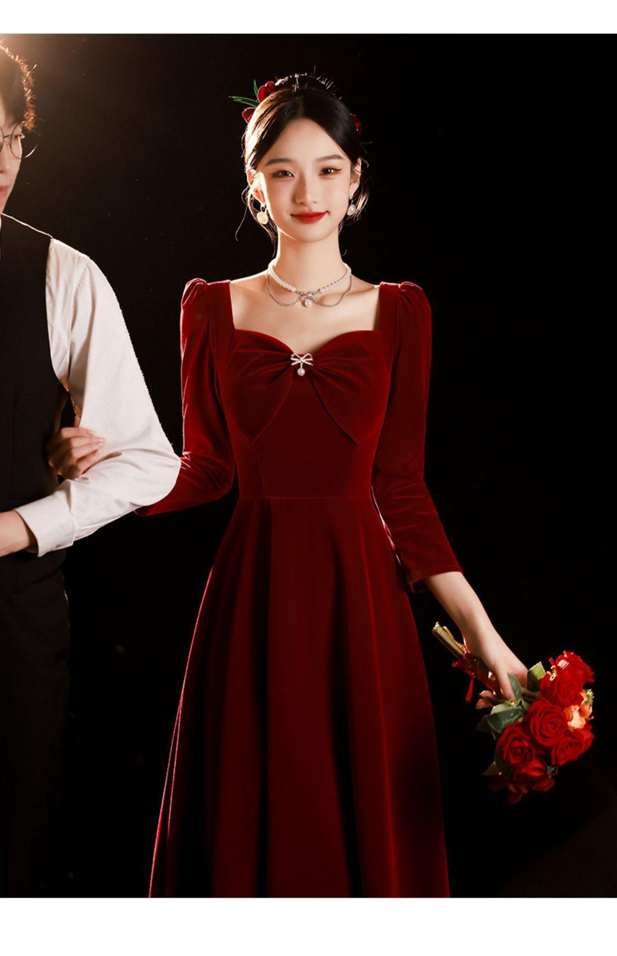 Vestido de Brindis de la Novia 2025 Otoño Nuevo Manga Larga Compromiso Regreso a Casa Vestido Borgoña Terciopelo Vestido de Brindis de Boda