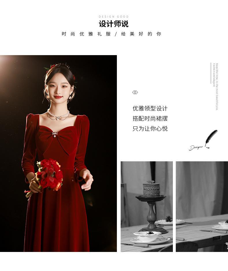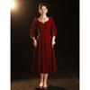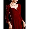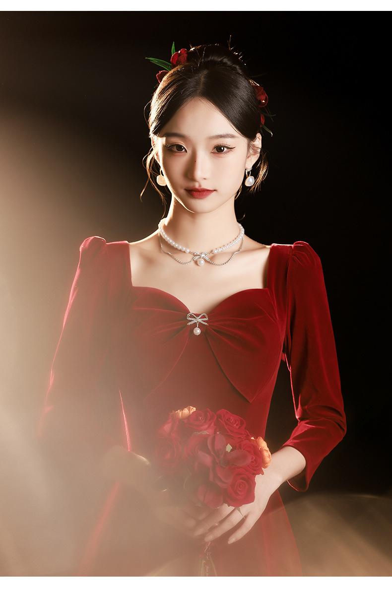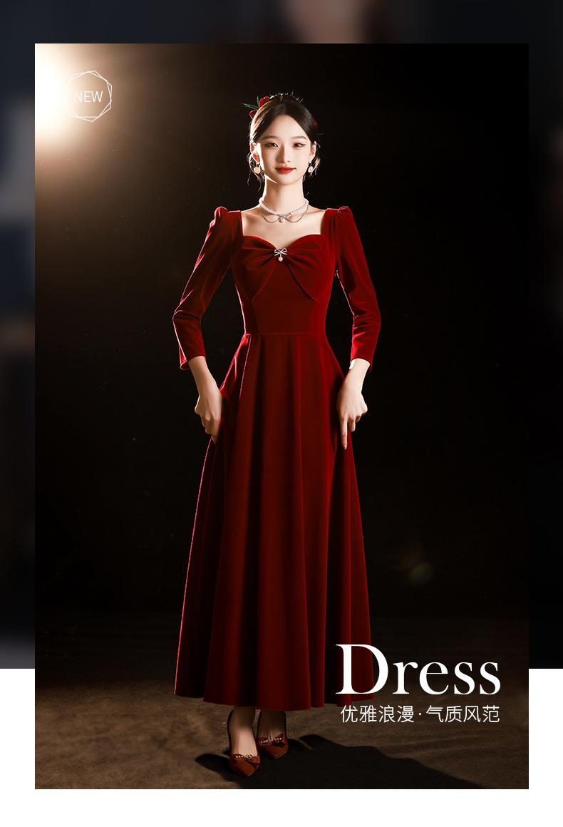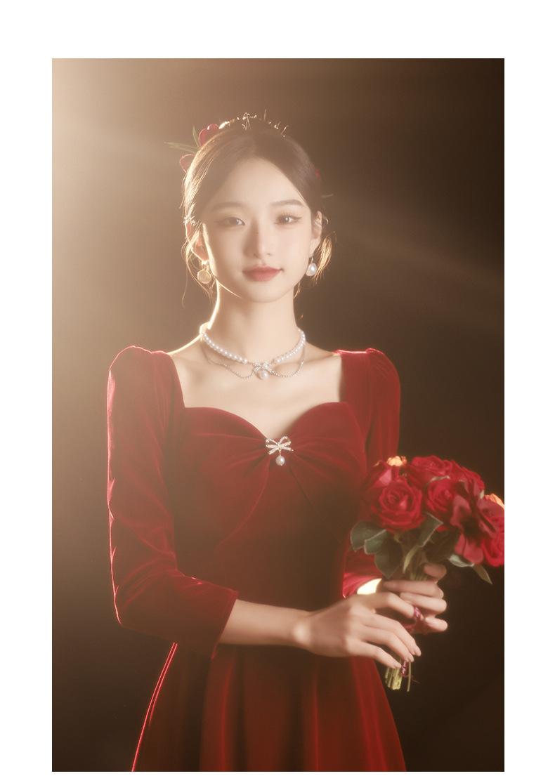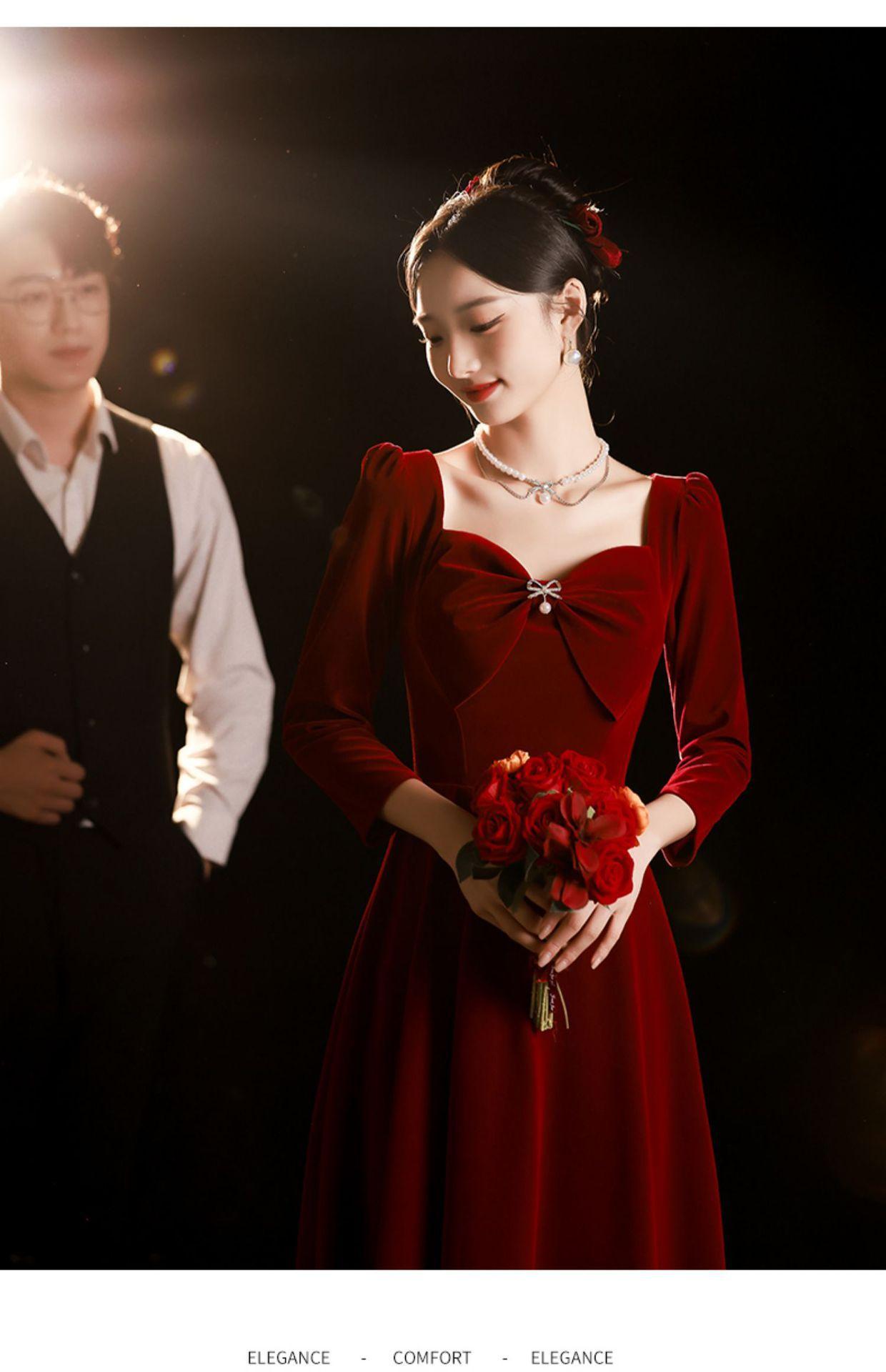 Vestido de Brindis de la Novia 2025 Otoño Nuevo Manga Larga Compromiso Regreso a Casa Vestido Borgoña Terciopelo Vestido de Brindis de Boda