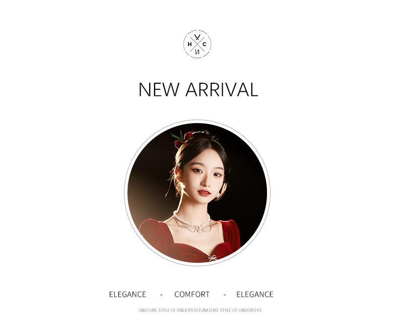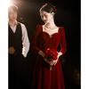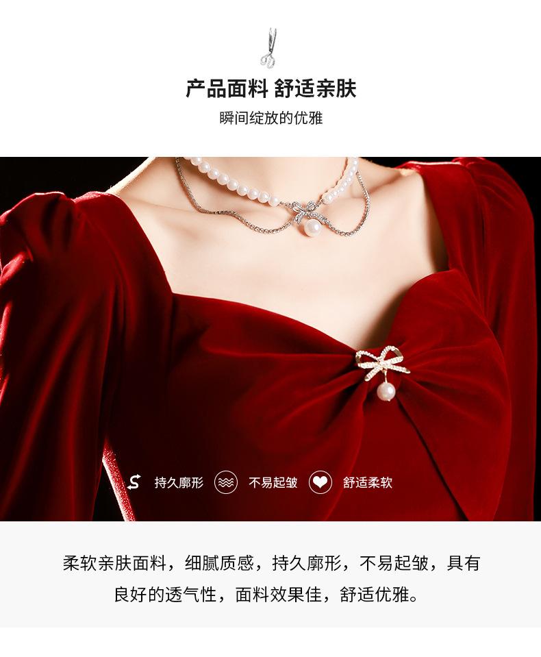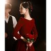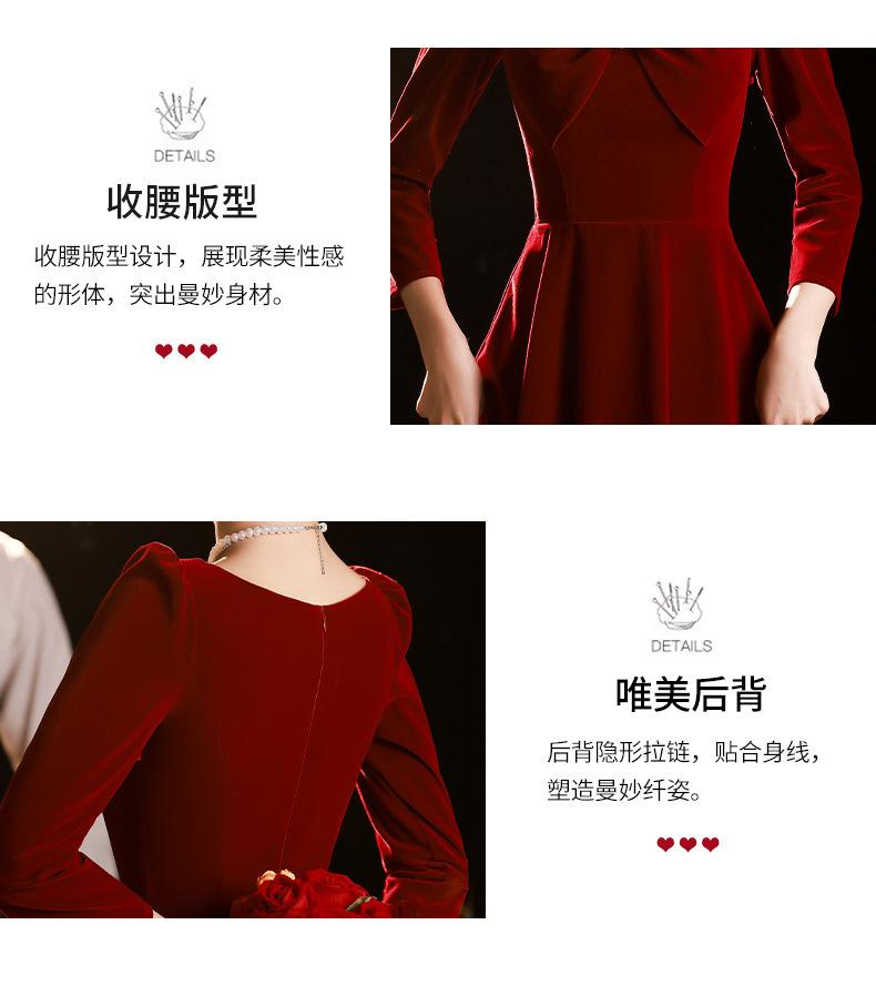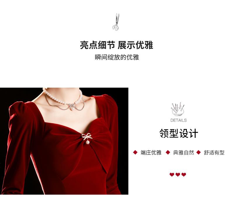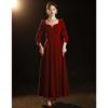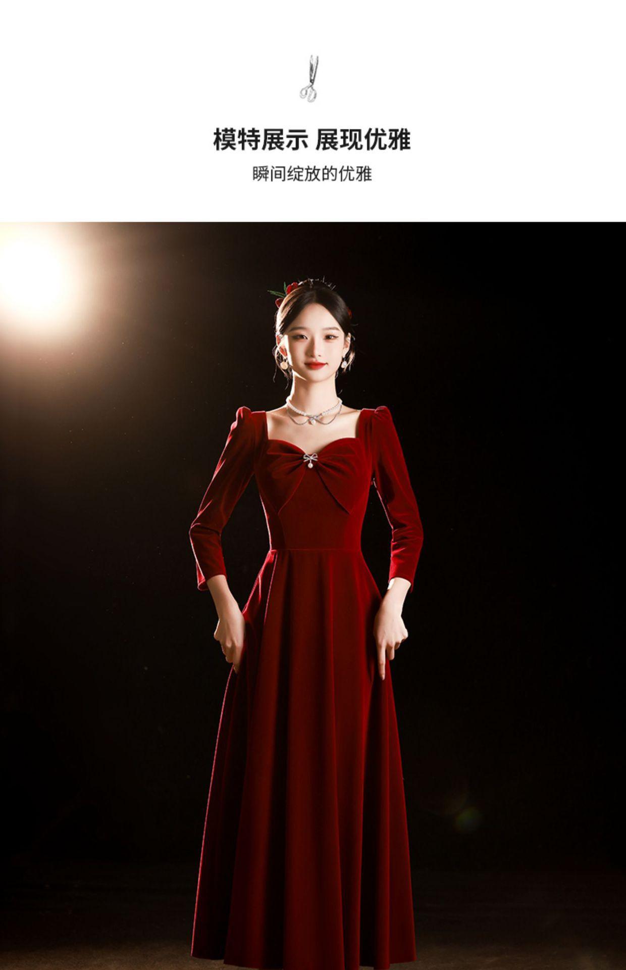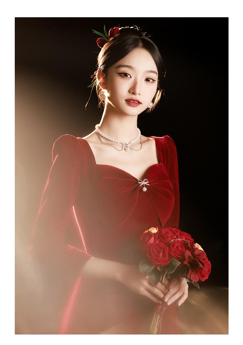 Vestido de Brindis de la Novia 2025 Otoño Nuevo Manga Larga Compromiso Regreso a Casa Vestido Borgoña Terciopelo Vestido de Brindis de Boda