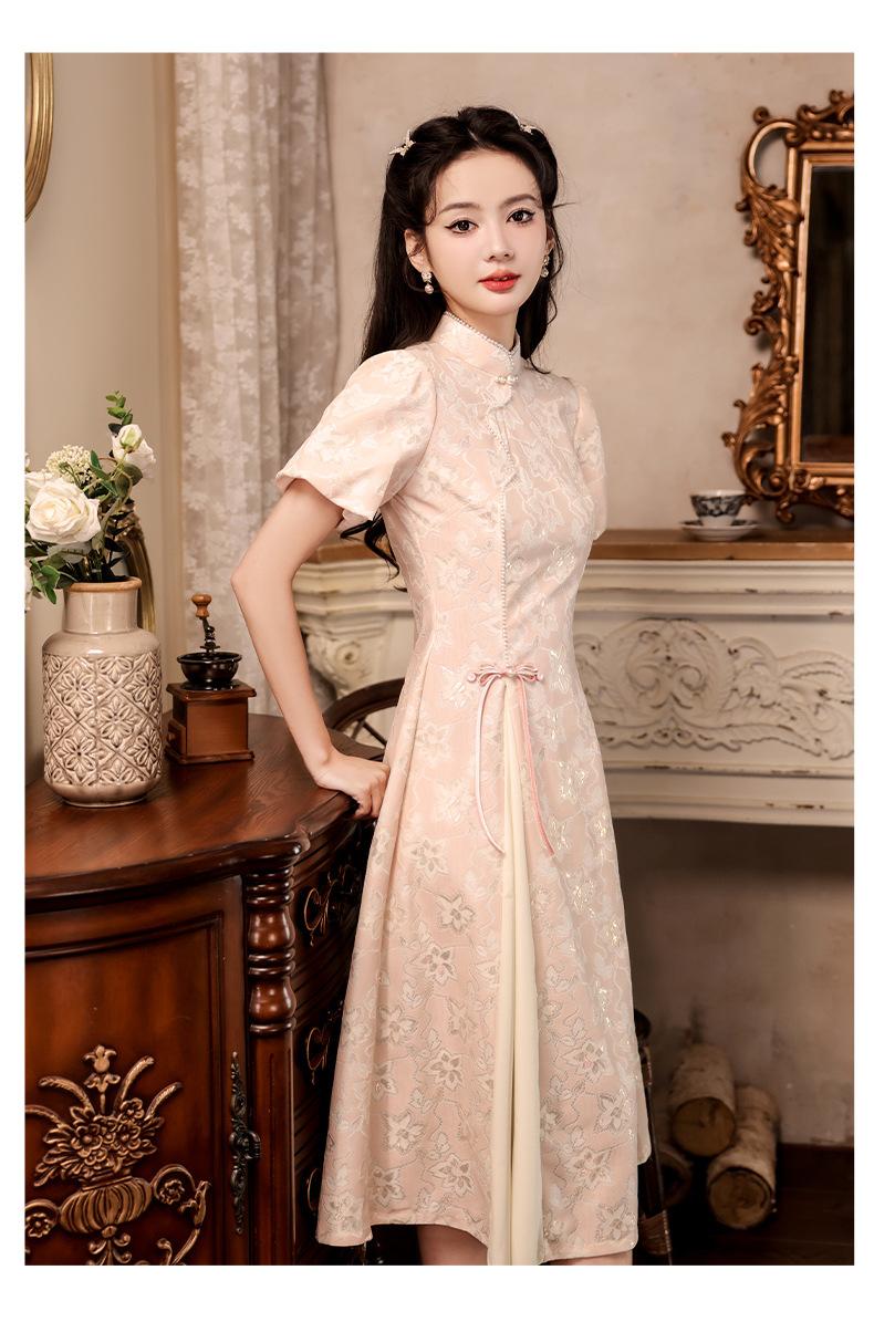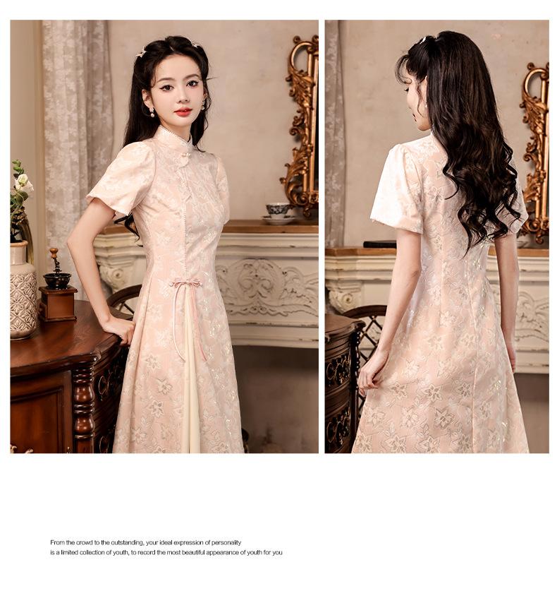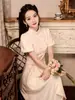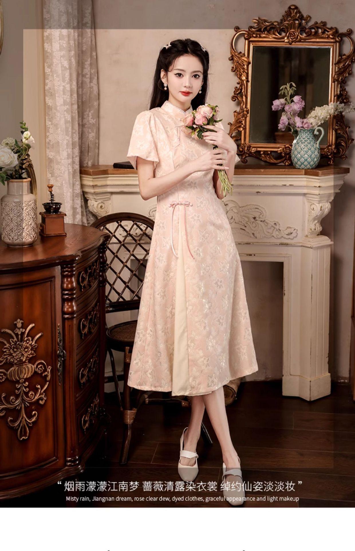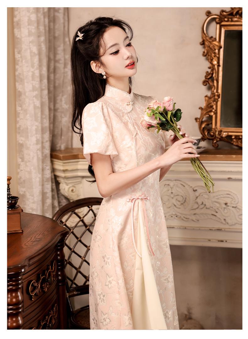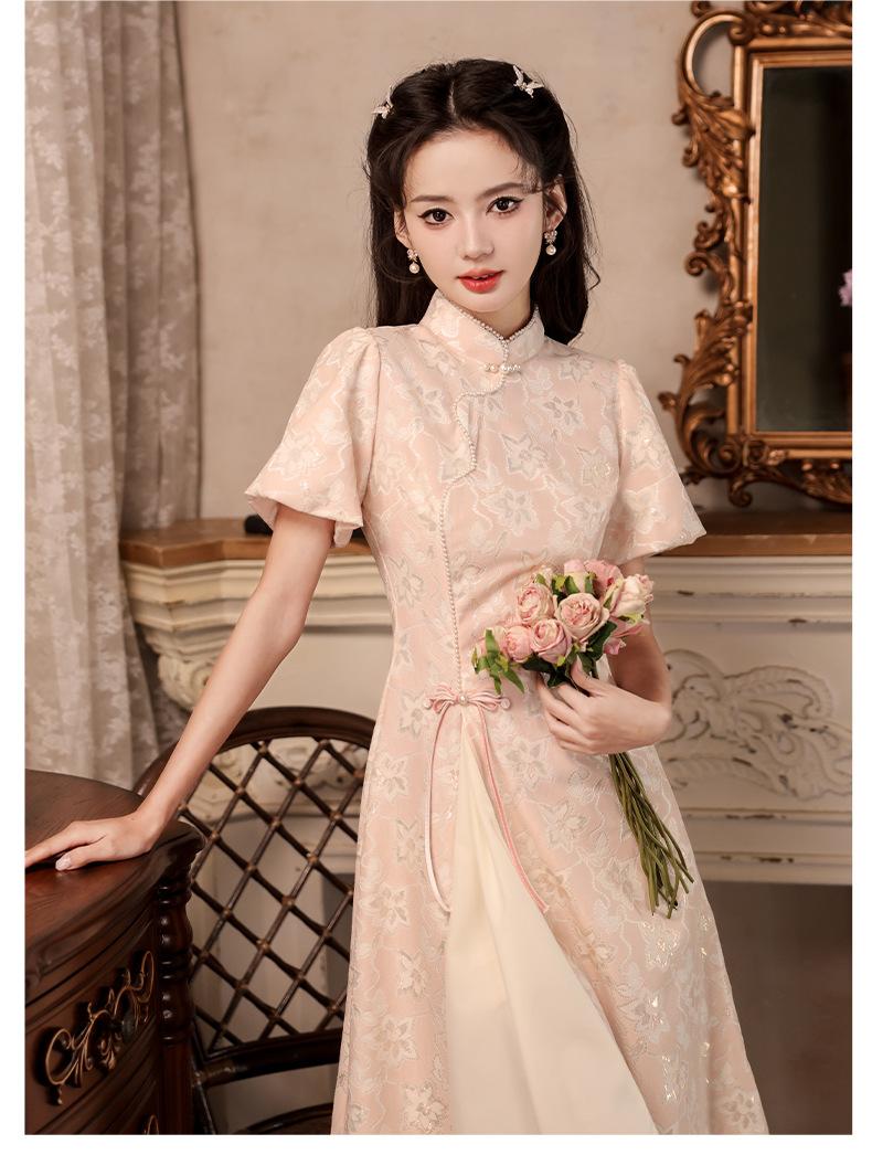 Nuevo estilo chino mejorado ao dai cheongsam para niña 2024 Nuevo vestido de compromiso de estilo nacional rosa ropa de té de verano