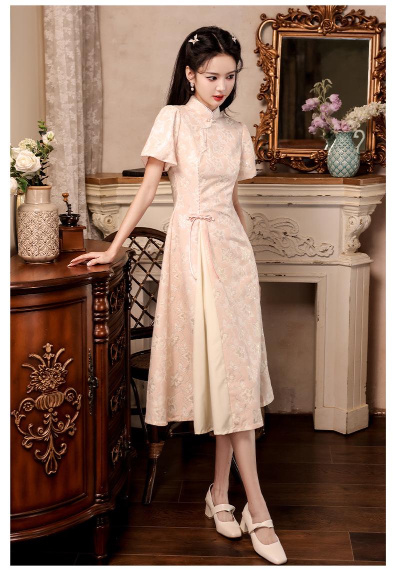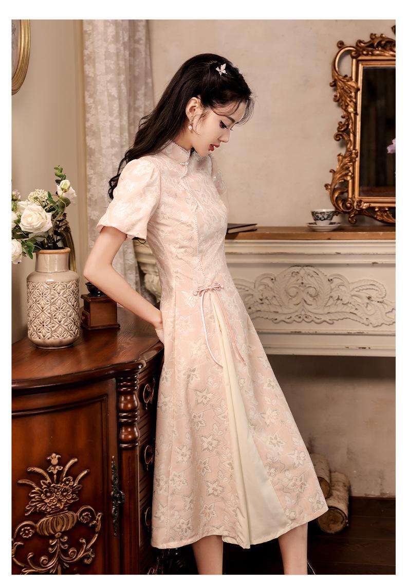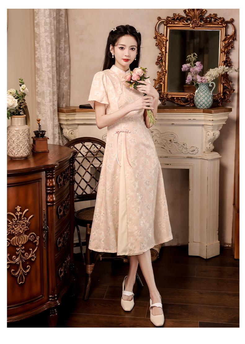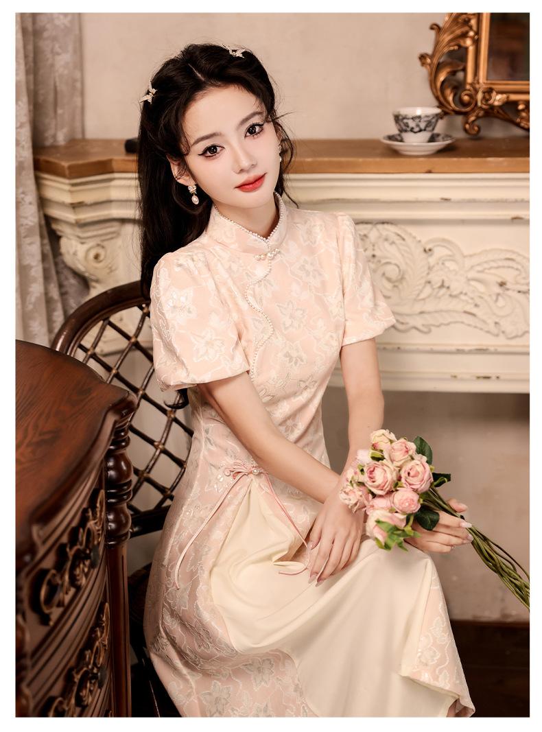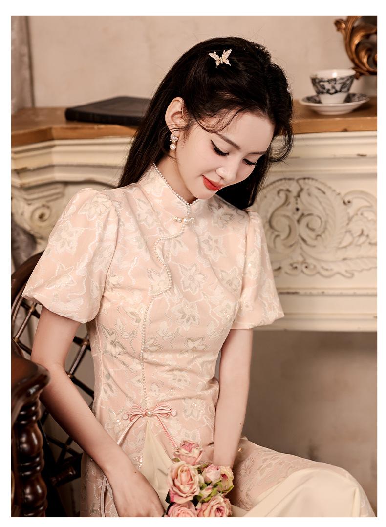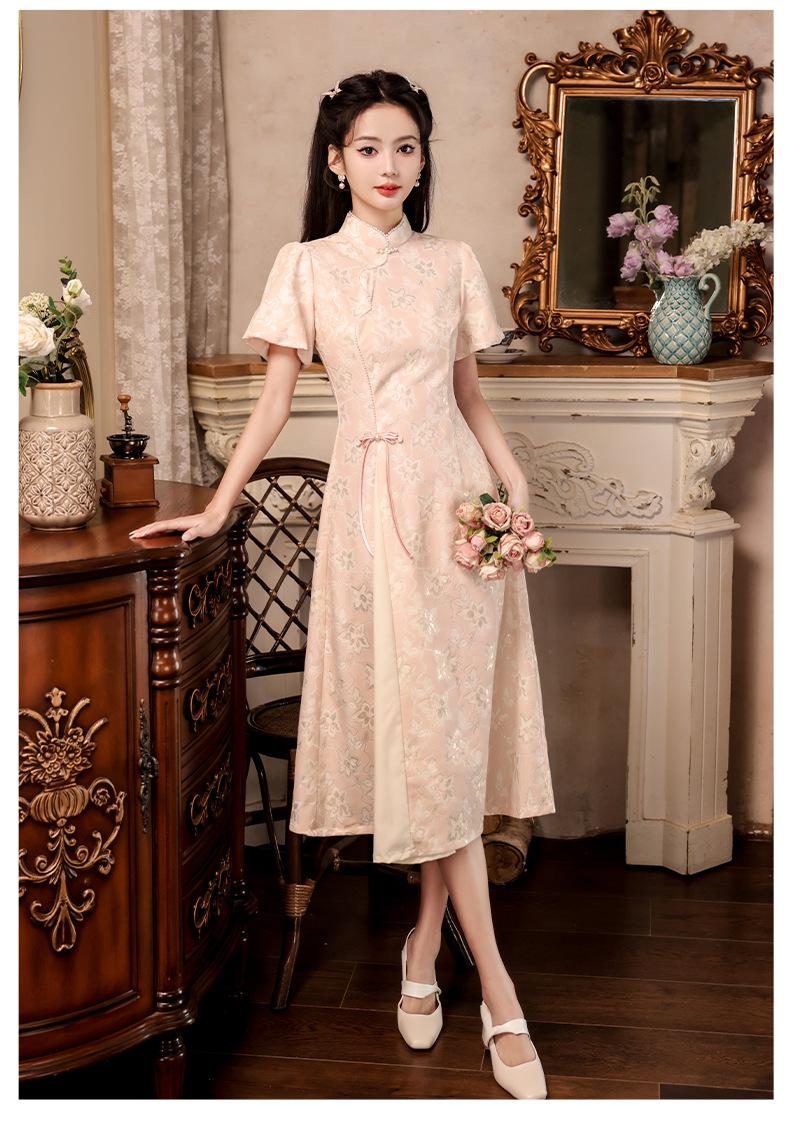 Nuevo estilo chino mejorado ao dai cheongsam para niña 2024 Nuevo vestido de compromiso de estilo nacional rosa ropa de té de verano