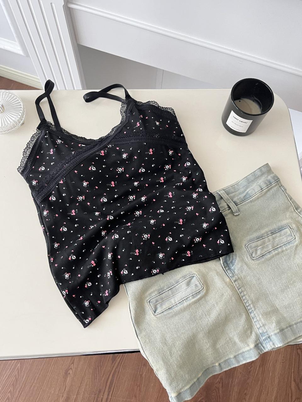 Chaleco de tirantes con estampado floral de estilo Pure Desire para mujer, top corto sexy de verano estilo francés, dulce y sexy