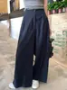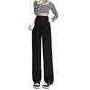 Pantalones de traje de pierna ancha para mujer, de verano, estilo coreano, de cintura alta, holgados, negros, drapeados, ajustados y rectos.