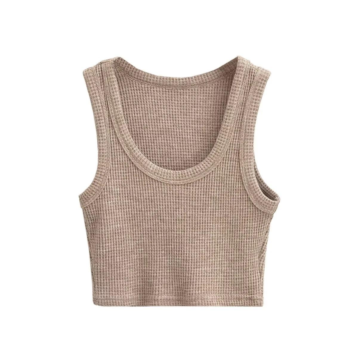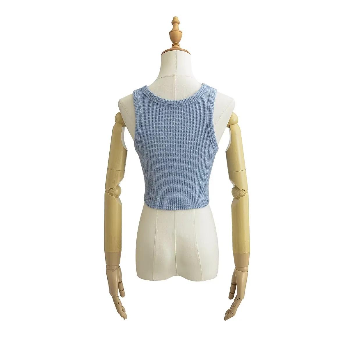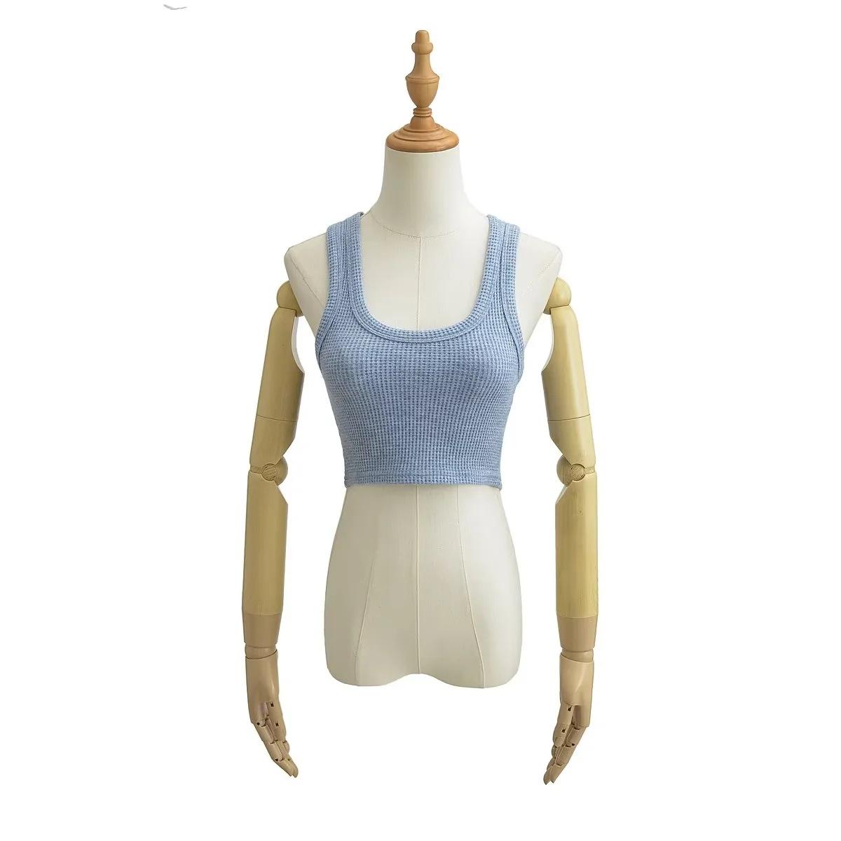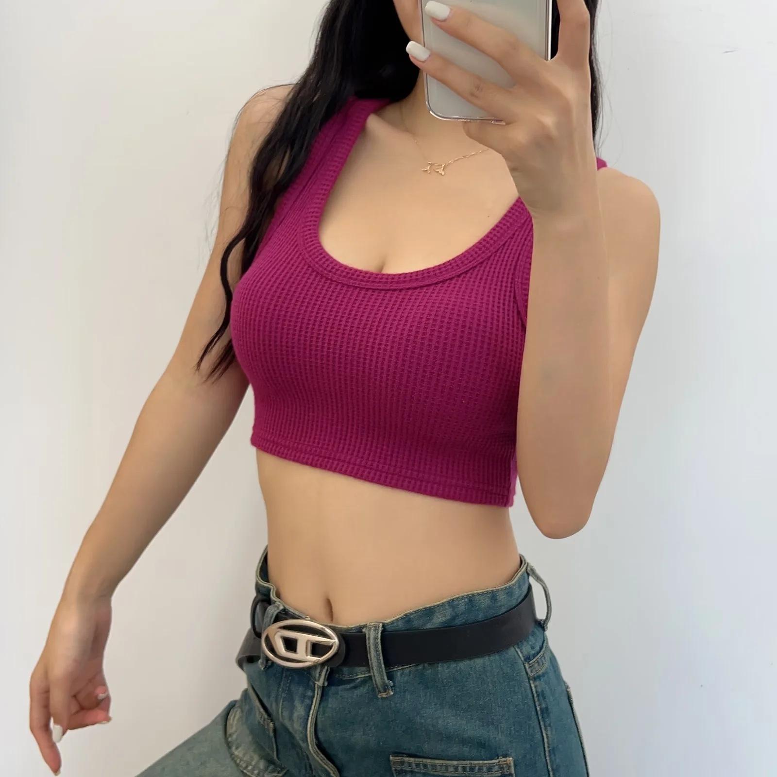 Top ultracorto de cintura alta para chica sexy, de otoño, de cachemir, con cuello en U, sin mangas, ajustado, para uso exterior e interior.