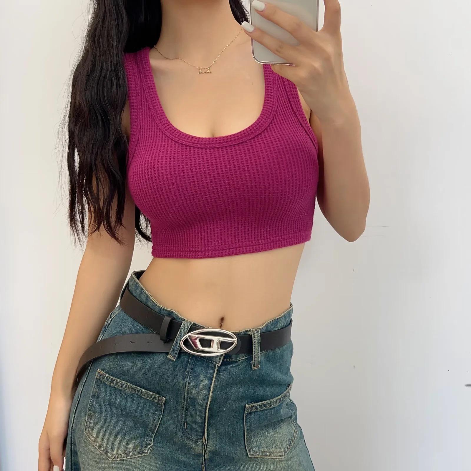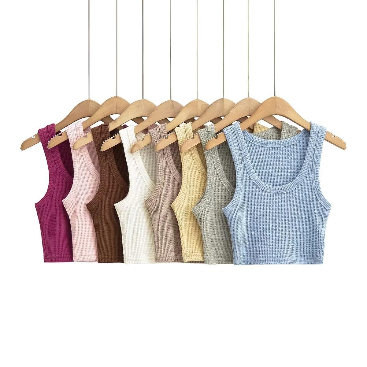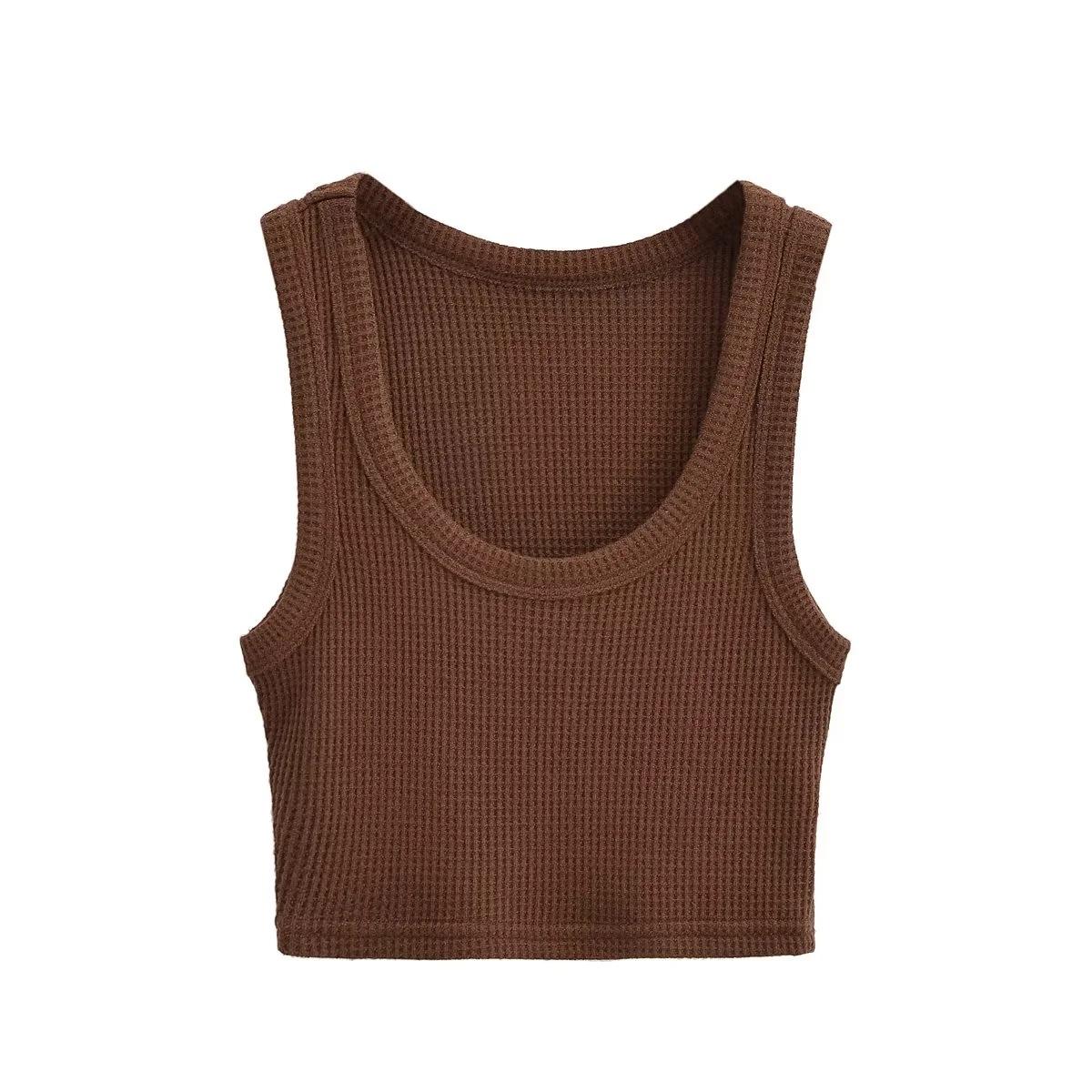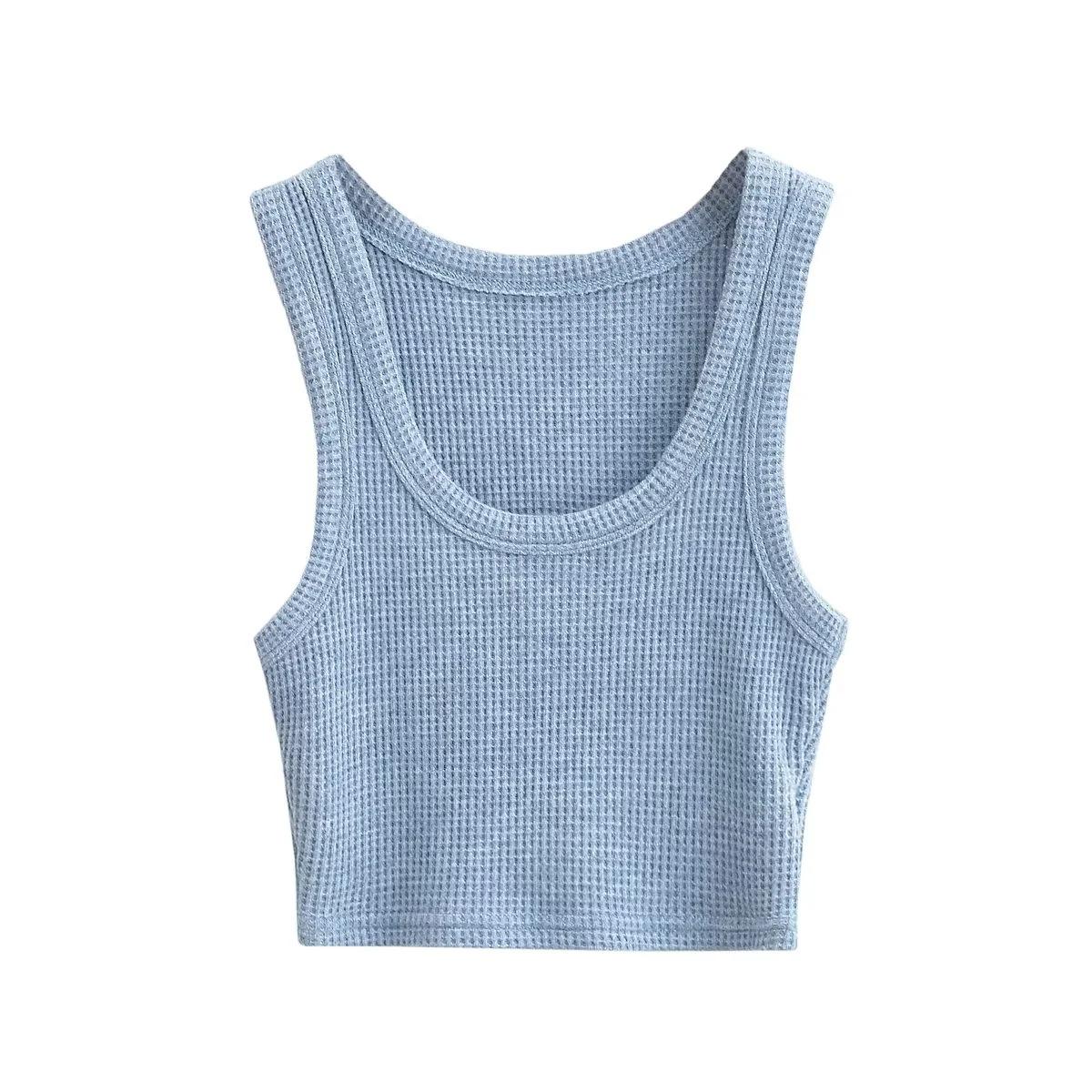 Top ultracorto de cintura alta para chica sexy, de otoño, de cachemir, con cuello en U, sin mangas, ajustado, para uso exterior e interior.