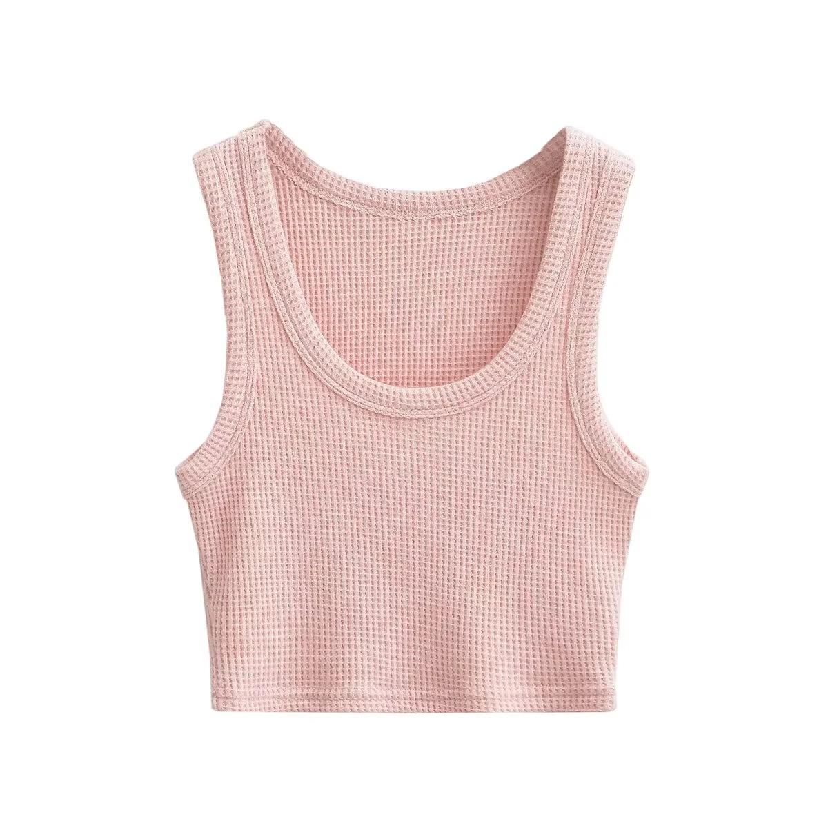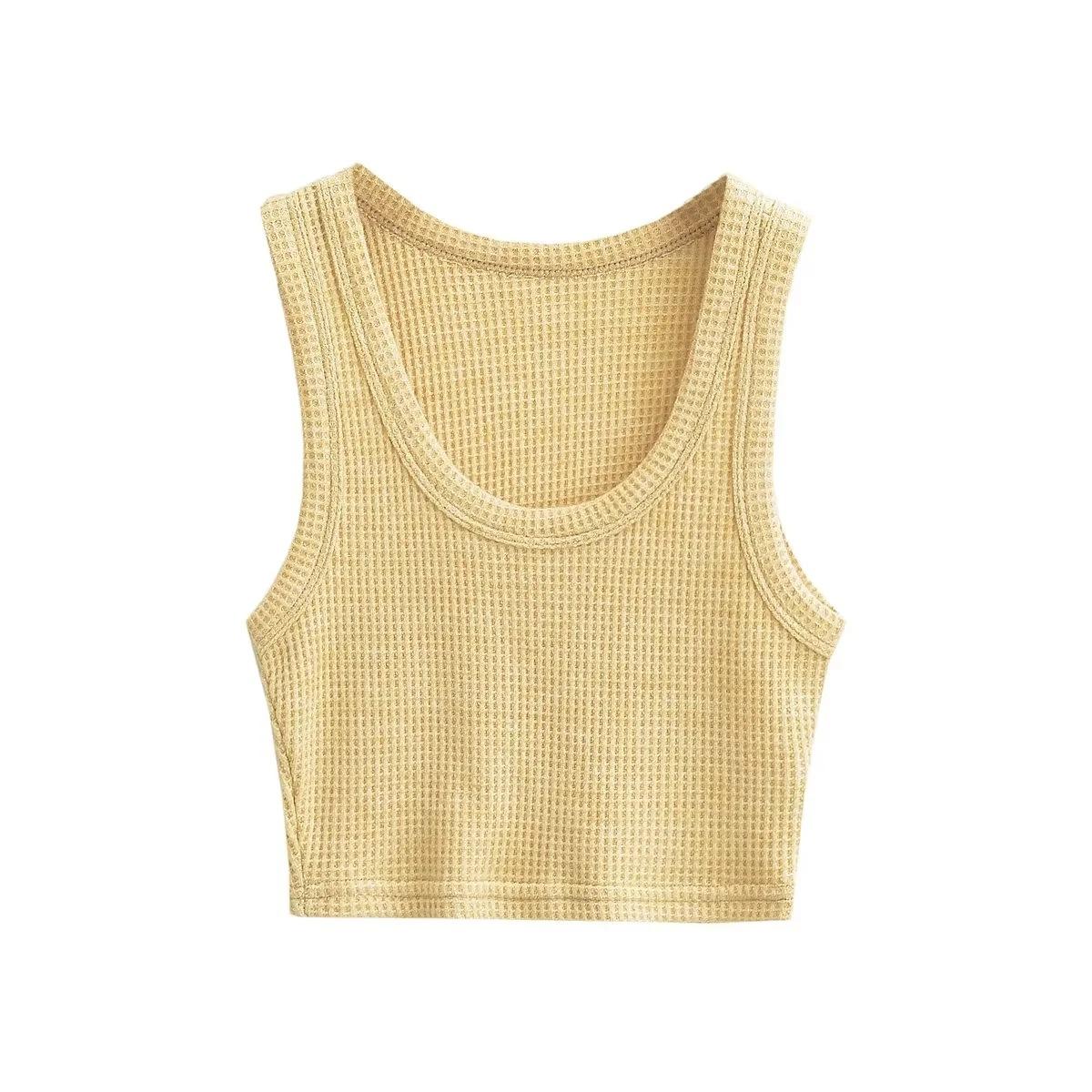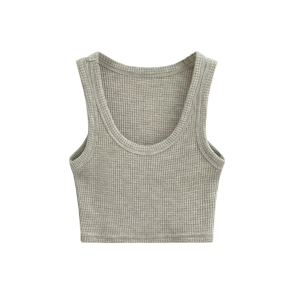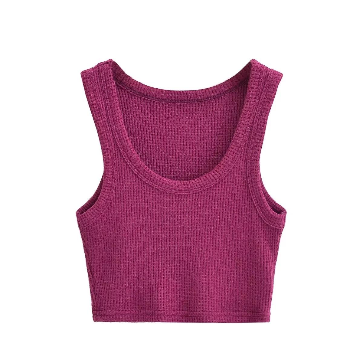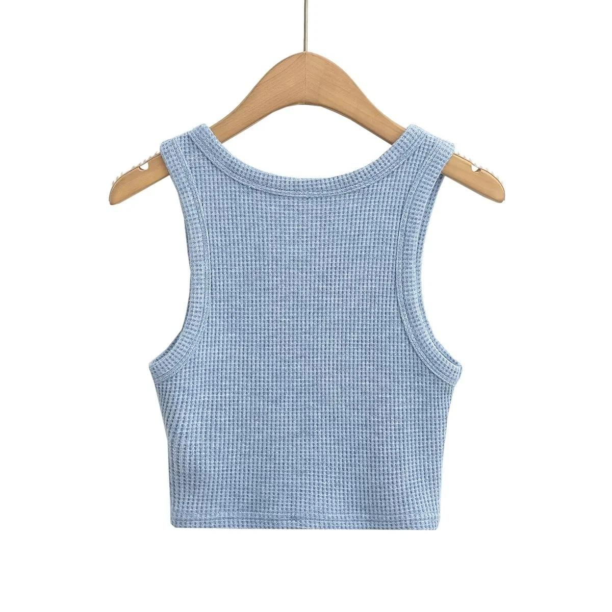 Top ultracorto de cintura alta para chica sexy, de otoño, de cachemir, con cuello en U, sin mangas, ajustado, para uso exterior e interior.