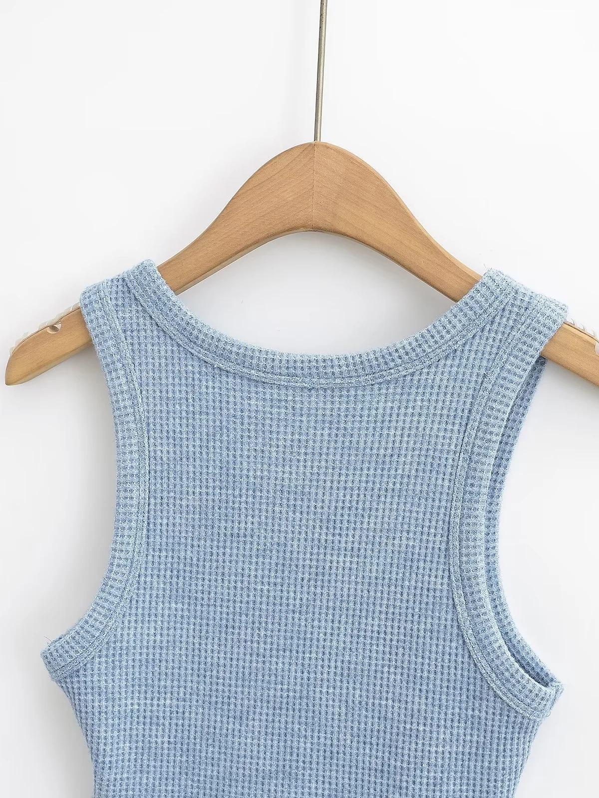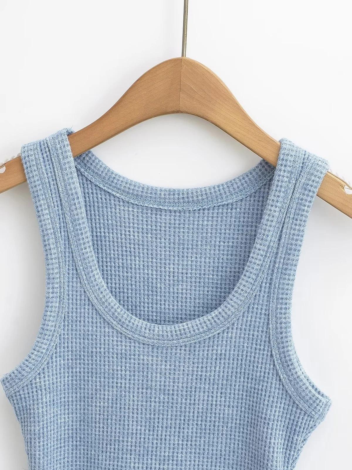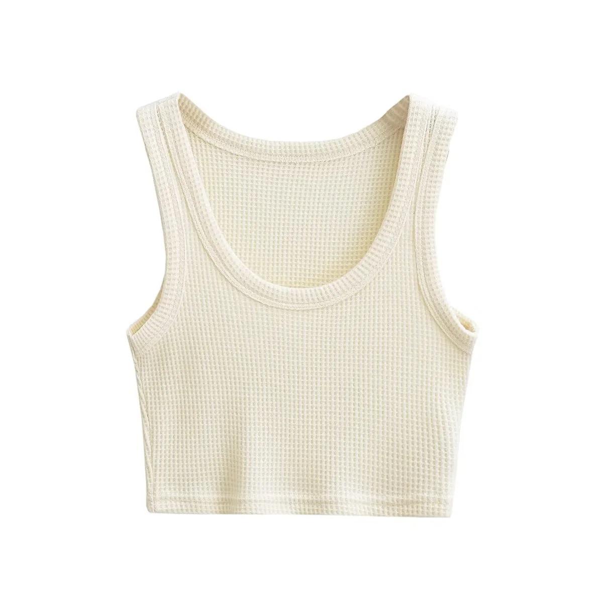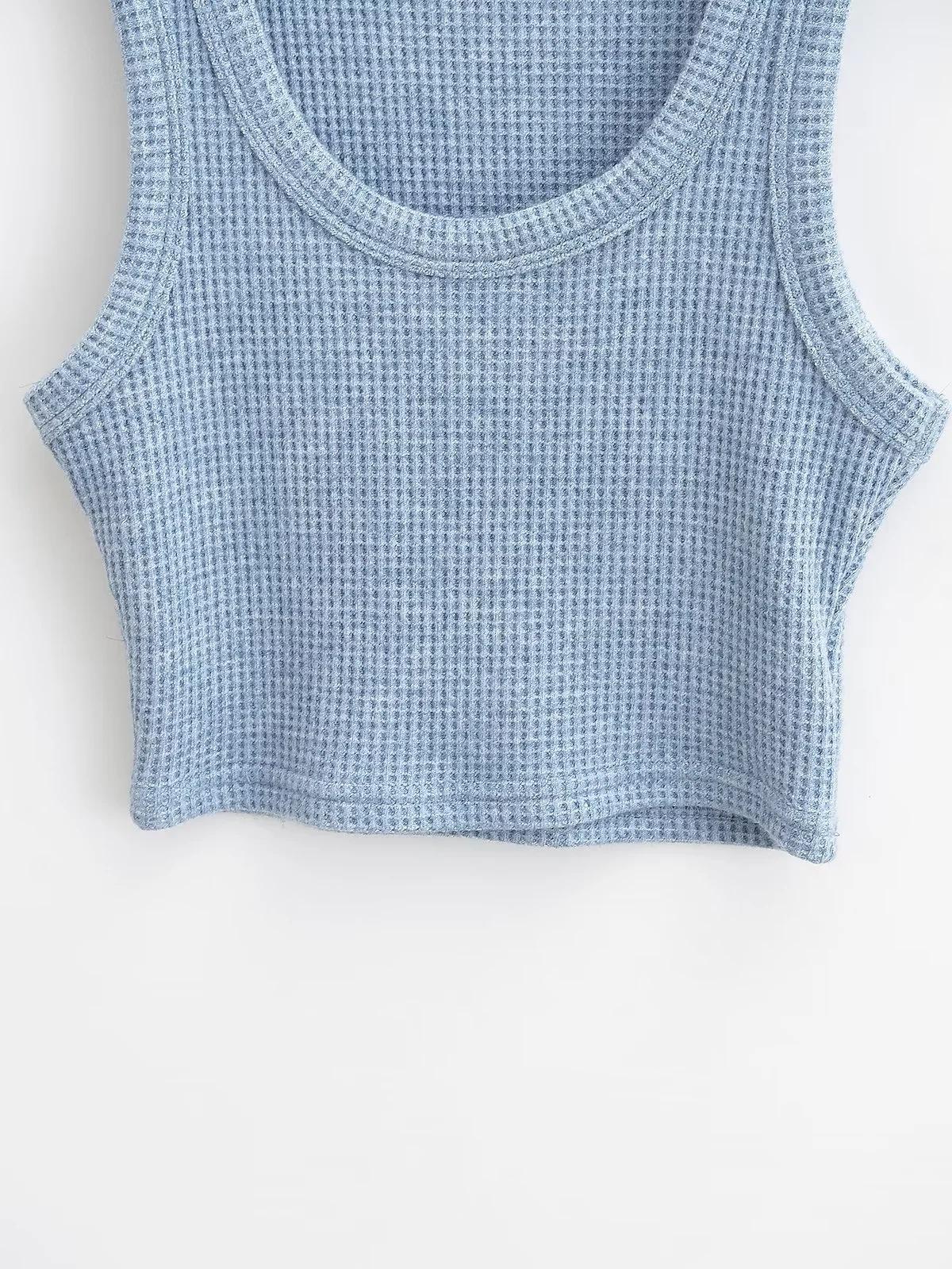 Top ultracorto de cintura alta para chica sexy, de otoño, de cachemir, con cuello en U, sin mangas, ajustado, para uso exterior e interior.