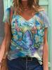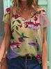 Camiseta holgada de manga corta de verano con cuello en V y estampado digital para mujer de Europa y América de Amazon.