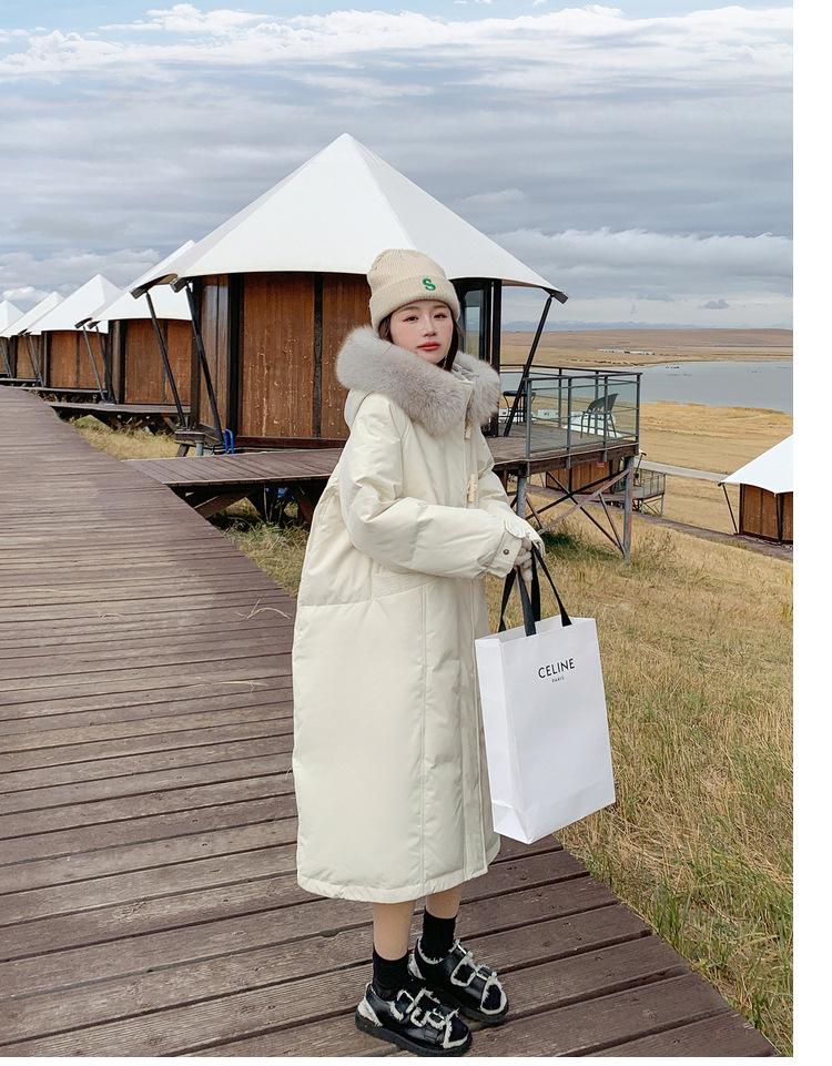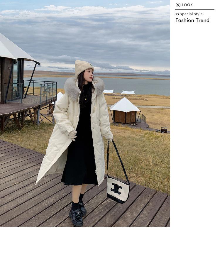 Chaqueta acolchada de algodón Real Shot Down para mujer, de longitud media, 2024, nueva moda popular, estilo coreano, diseño Sense Niche, invierno, engrosada sobre la rodilla.