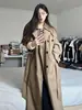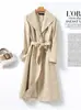 3249 Abrigo de Cuero Genuino Otoño/Invierno Estilo Europeo y Americano Piel de Oveja Cuello Solapa Doble Botonadura Corte Slim Largo Alto Abrigo Trench con Cinturón