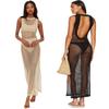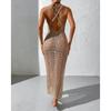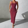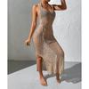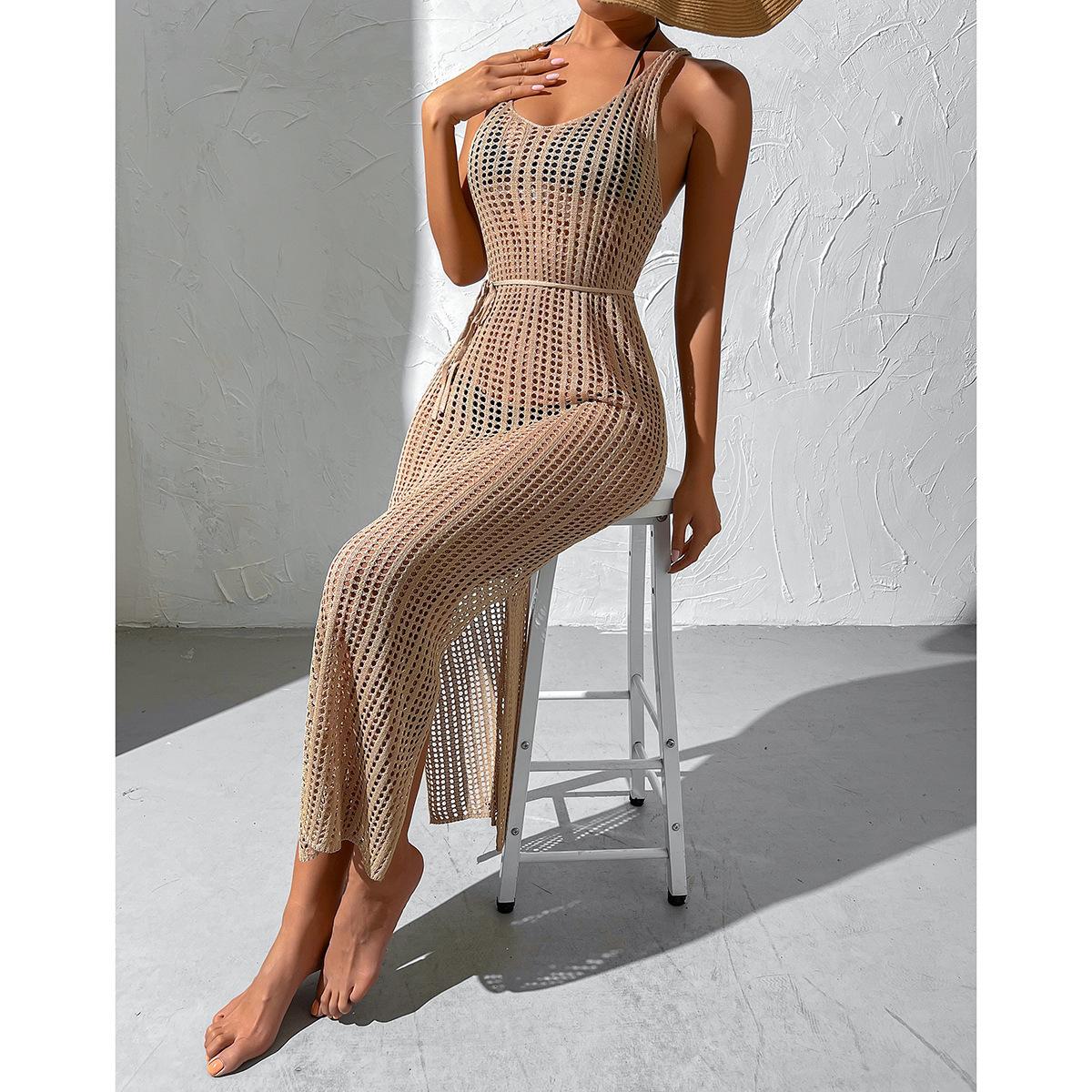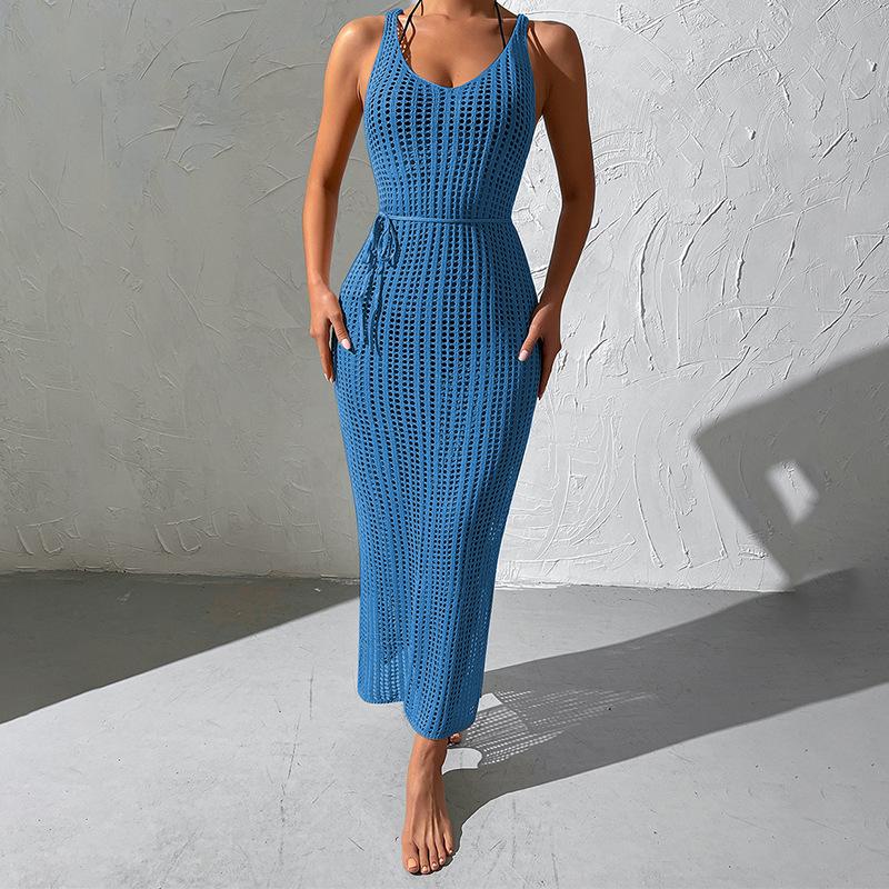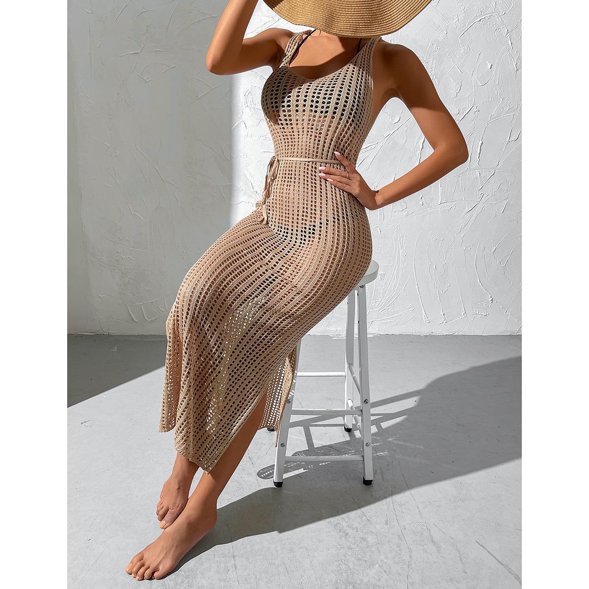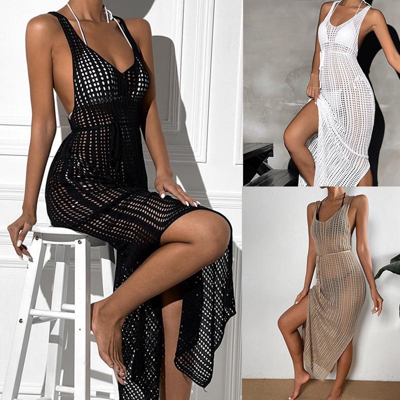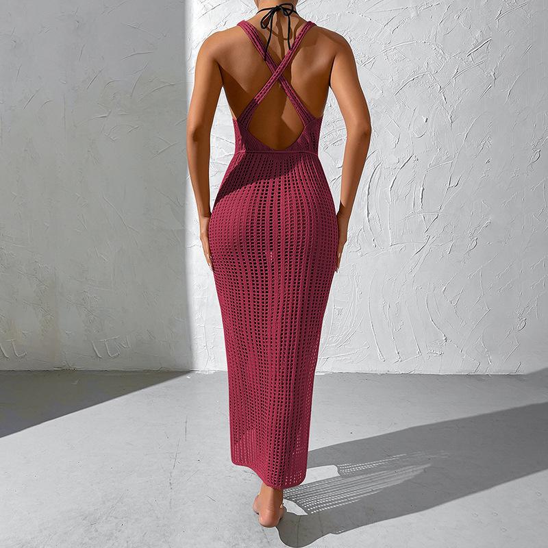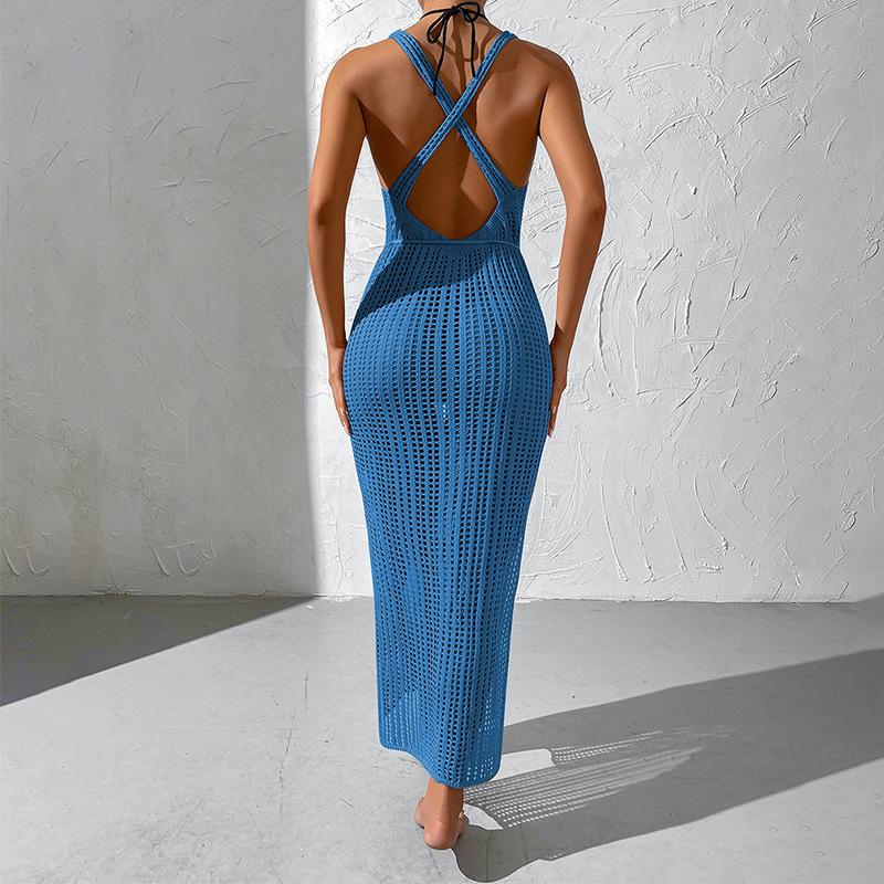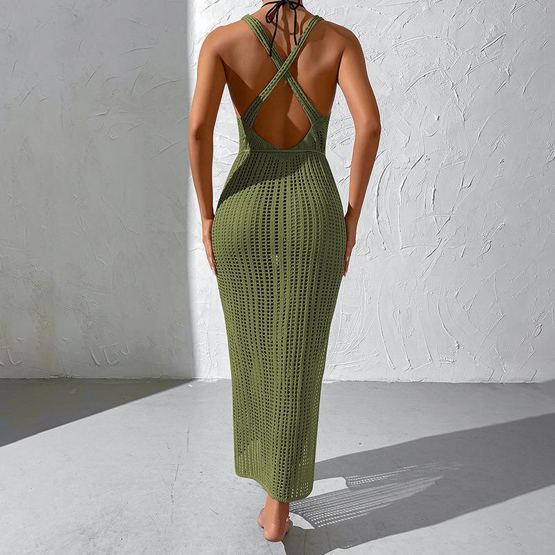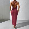 Estilo Europeo y Americano Transfronterizo Comercio Exterior Más Vendido Amazon Vacaciones Playa Encubrimiento Hueco Sin Espalda Vestido de Punto para Mujer