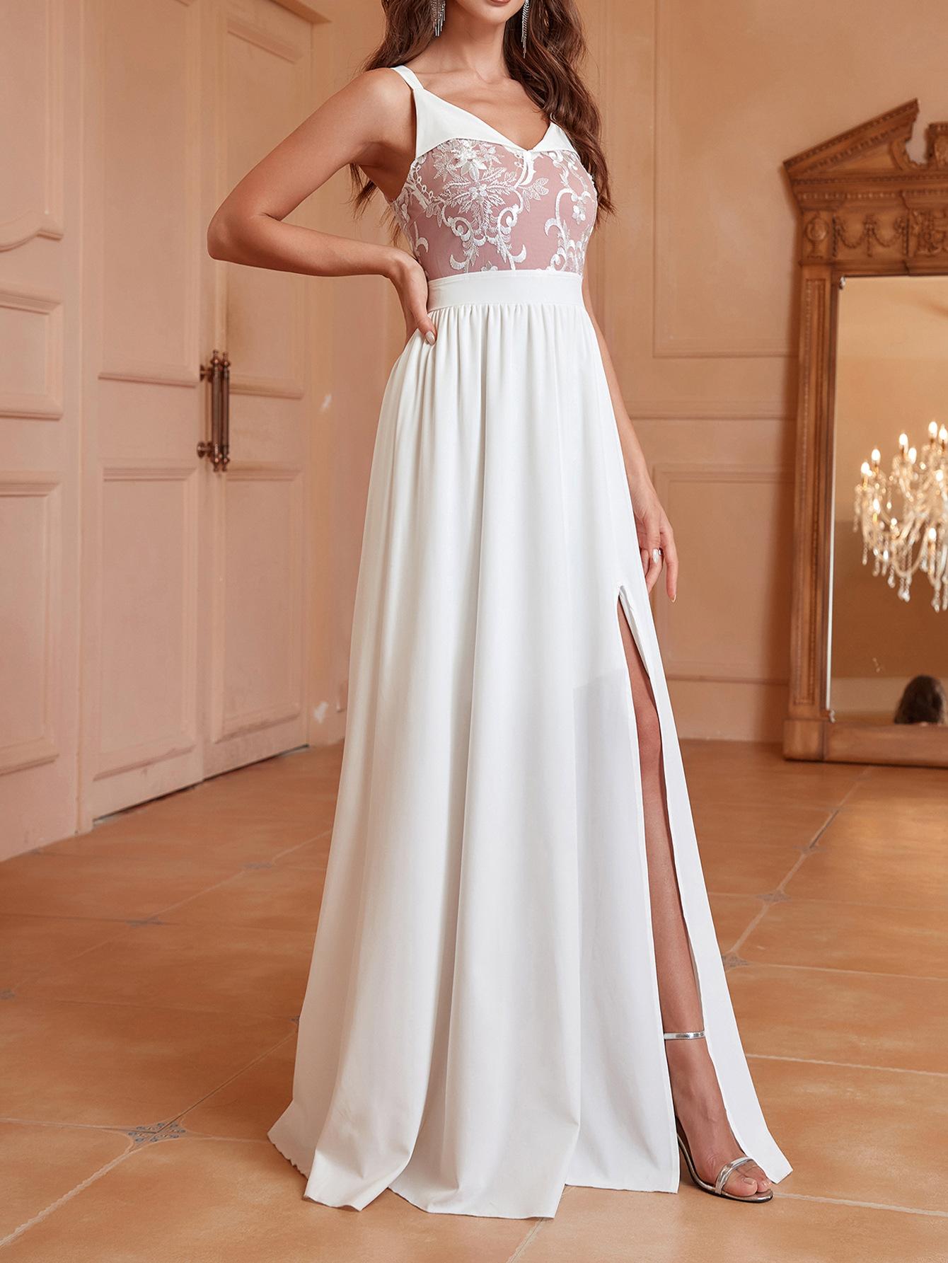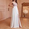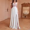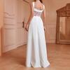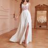 Ropa de mujer de comercio exterior europea y americana, venta caliente, vestido largo liso sin espalda, vestido sexy blanco de encaje largo cruzado transfronterizo