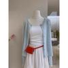 Cárdigan de verano de seda de hielo, chaqueta de protección solar, aire acondicionado de verano, blusa fina de punto de manga larga con falda de tirantes, top tipo chal