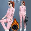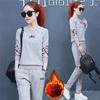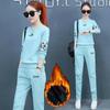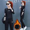 361# Traje deportivo grueso con forro polar para mujer, ropa deportiva de otoño e invierno, conjunto de dos piezas holgado e informal a la moda
