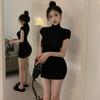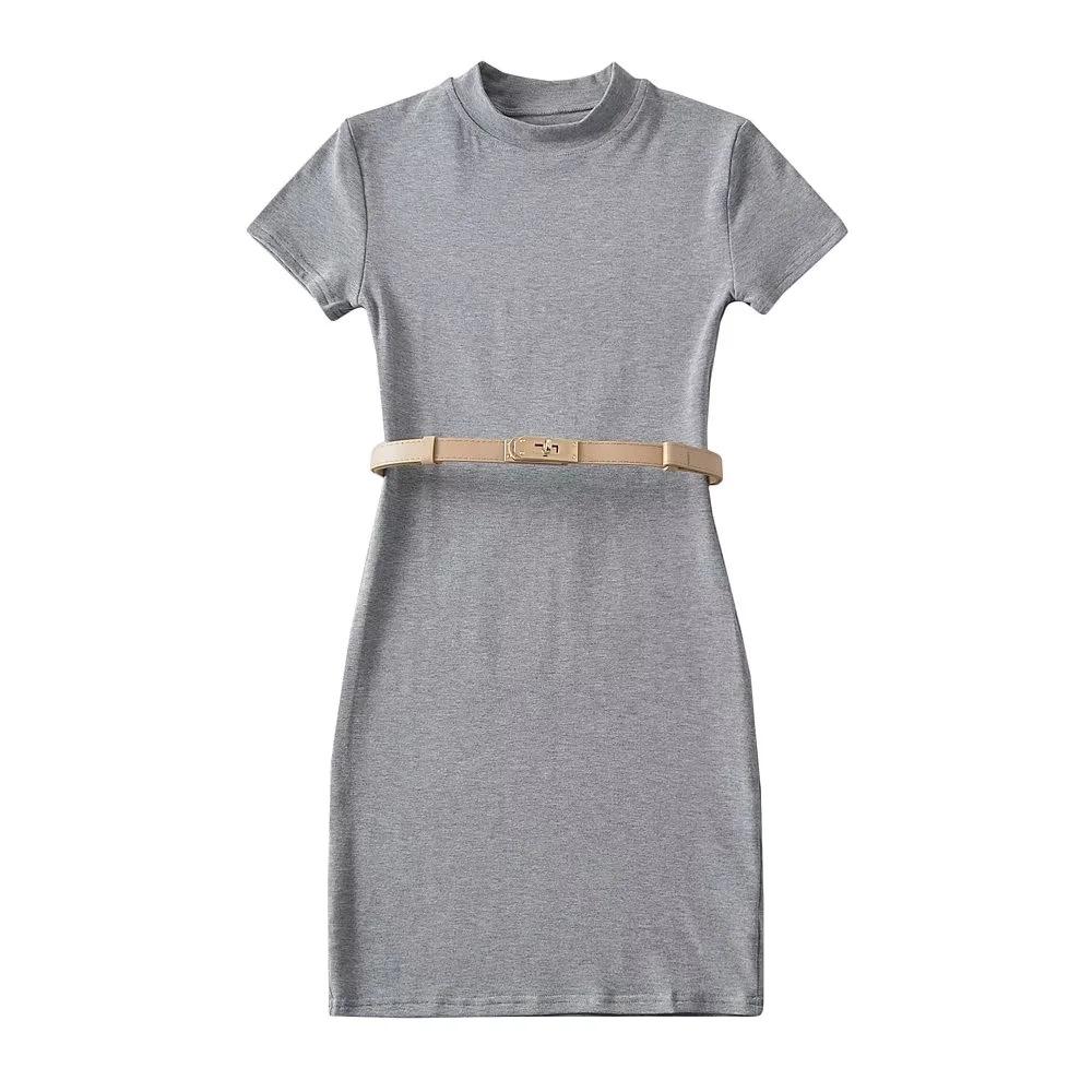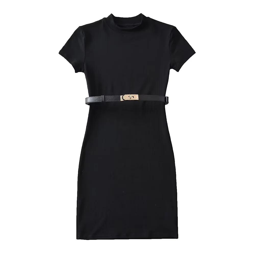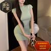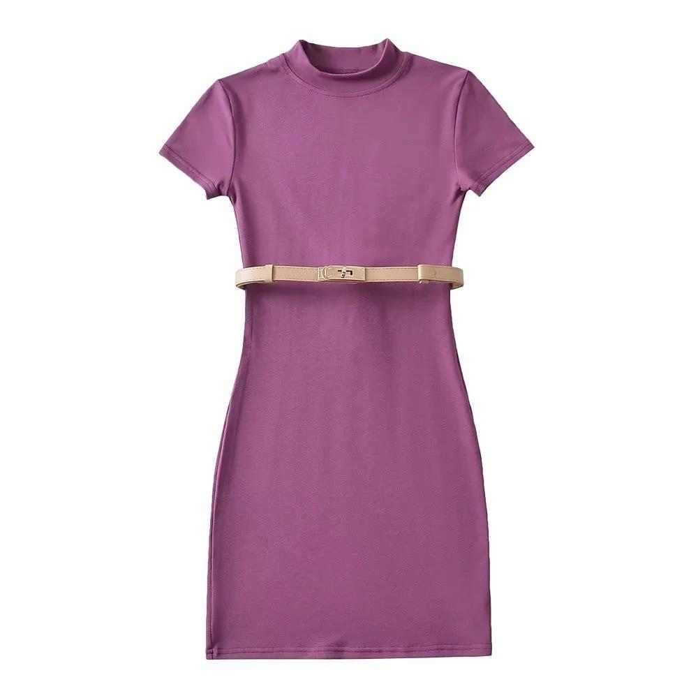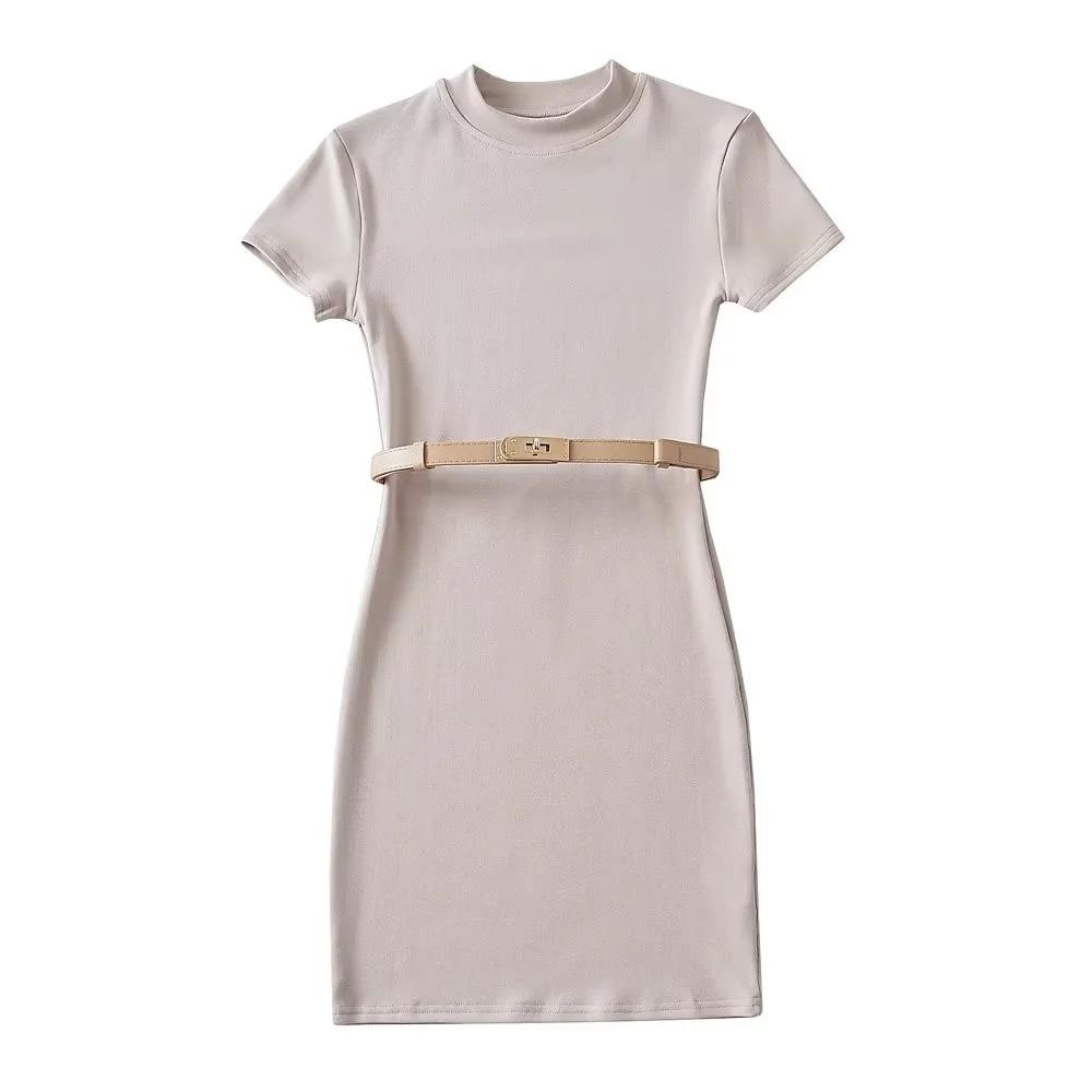 Vestido sexy de cuello medio alto para mujer, de verano, puro deseo, chica sexy, elegante, de manga corta, ajustado, falda a la cadera