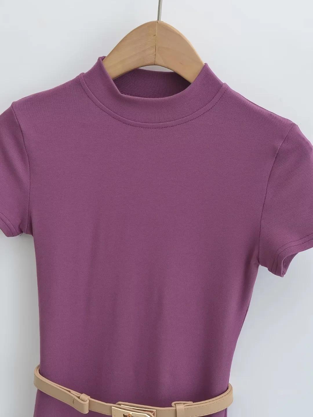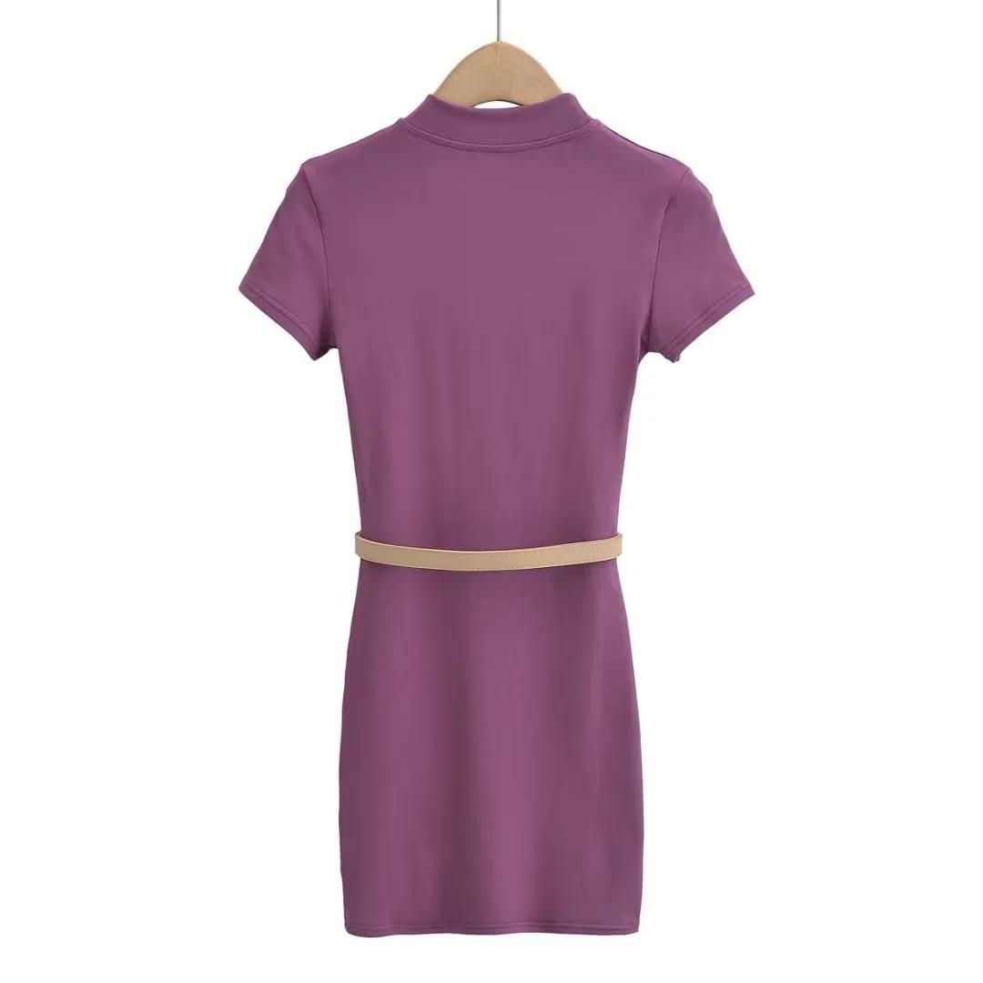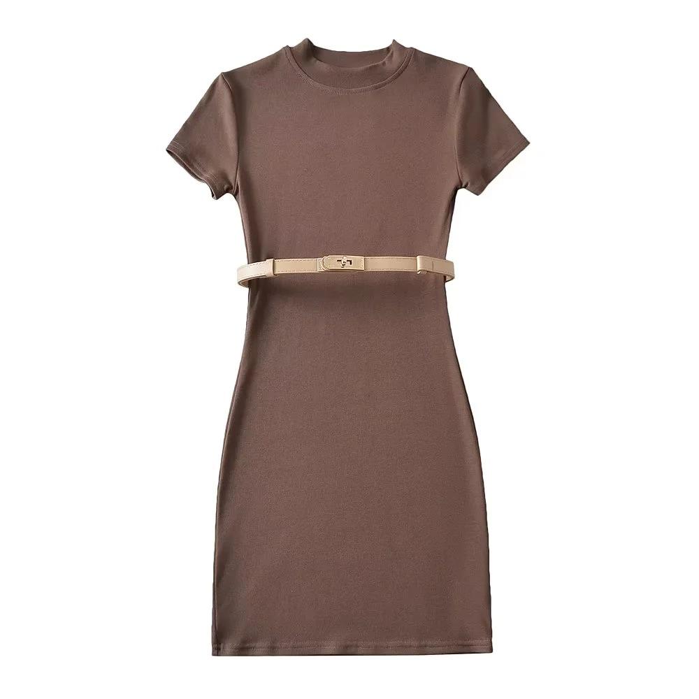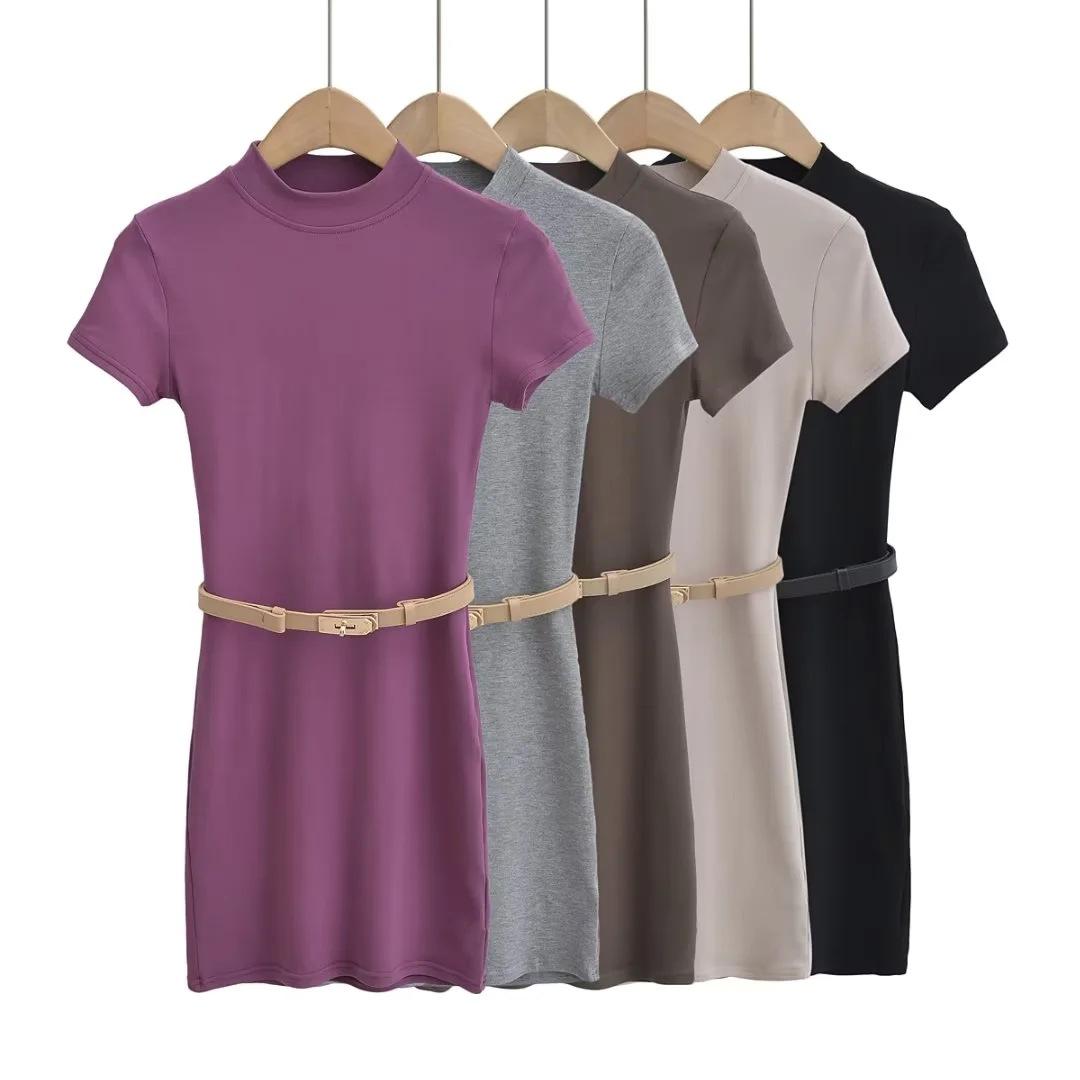 Vestido sexy de cuello medio alto para mujer, de verano, puro deseo, chica sexy, elegante, de manga corta, ajustado, falda a la cadera