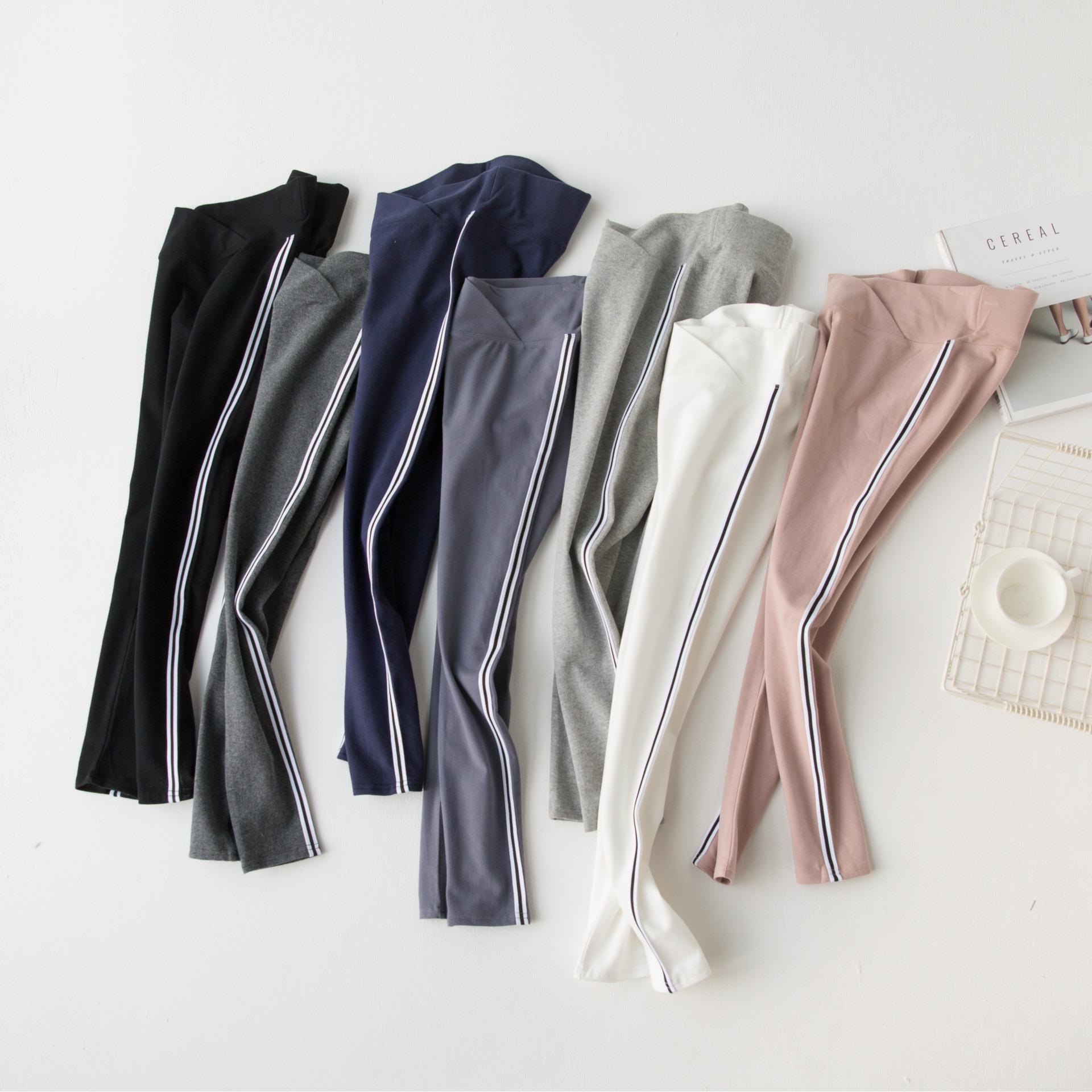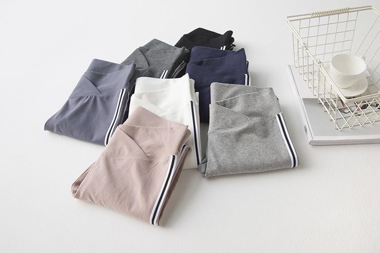 Leggings de Primavera y Otoño de Cintura Baja con Borde Blanco para Mujeres Embarazadas Verano Talla Grande Soporte para el Vientre Pantalones Nueve Puntos Algodón Puro Período de Embarazo