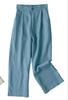 Pantalones rectos sueltos de color sólido japoneses nuevos de verano 2024 con forro de tela de lino de buena calidad para mujer