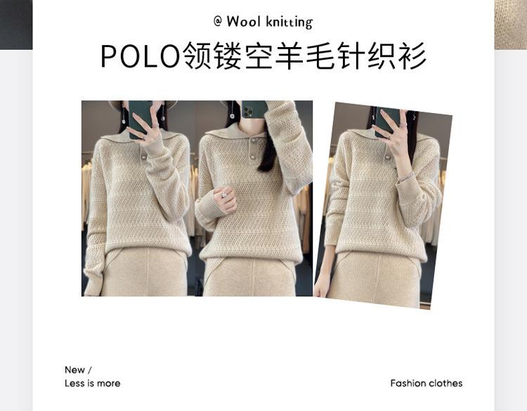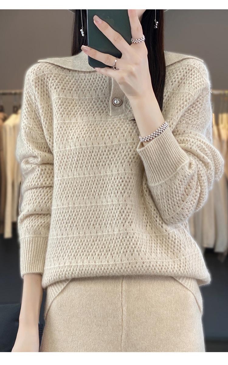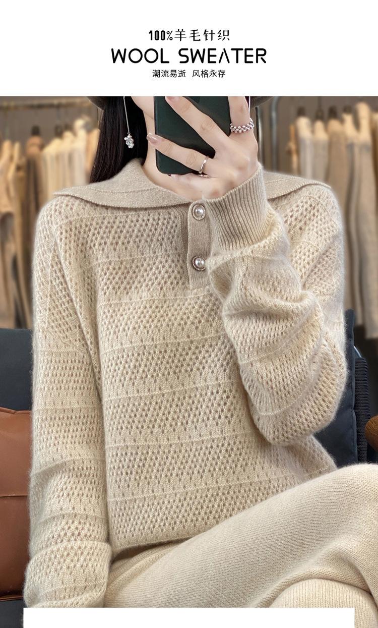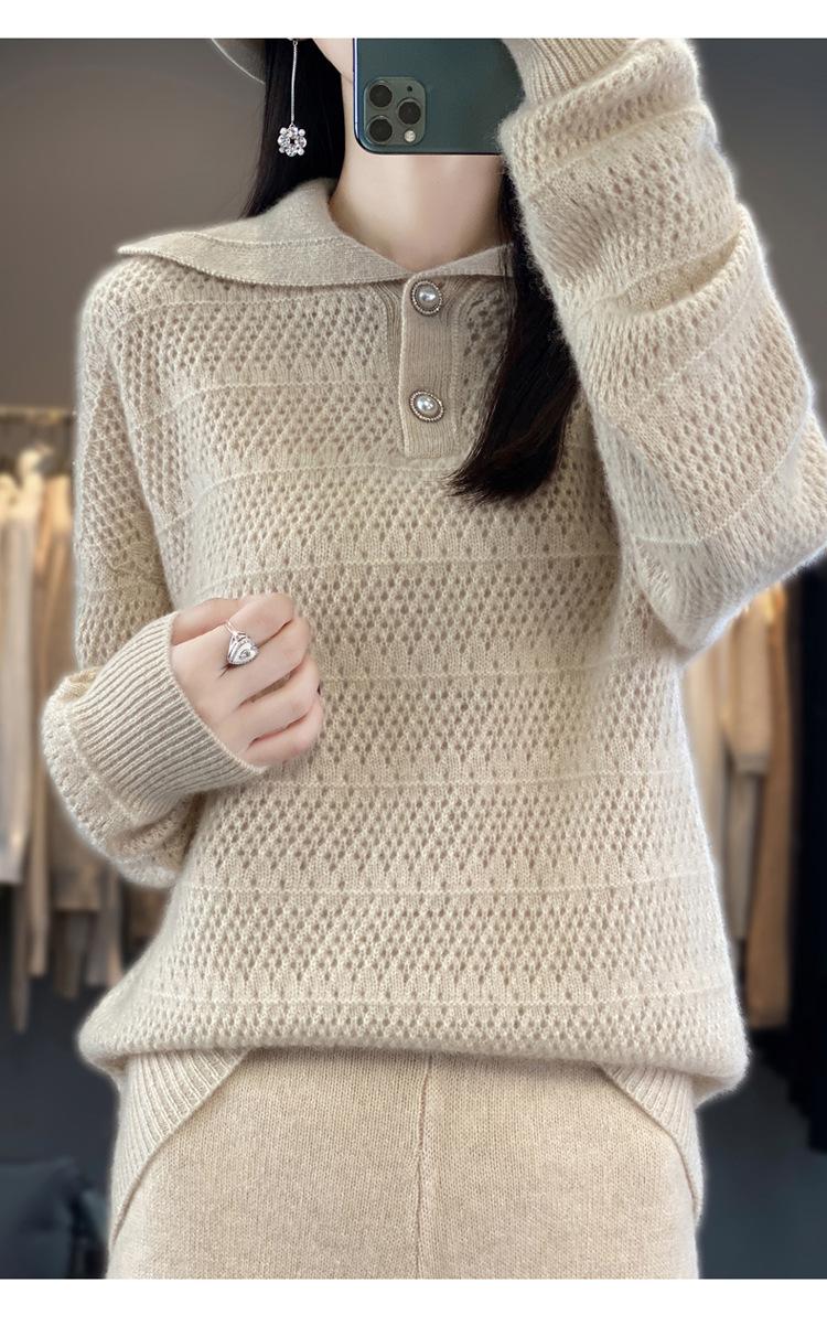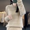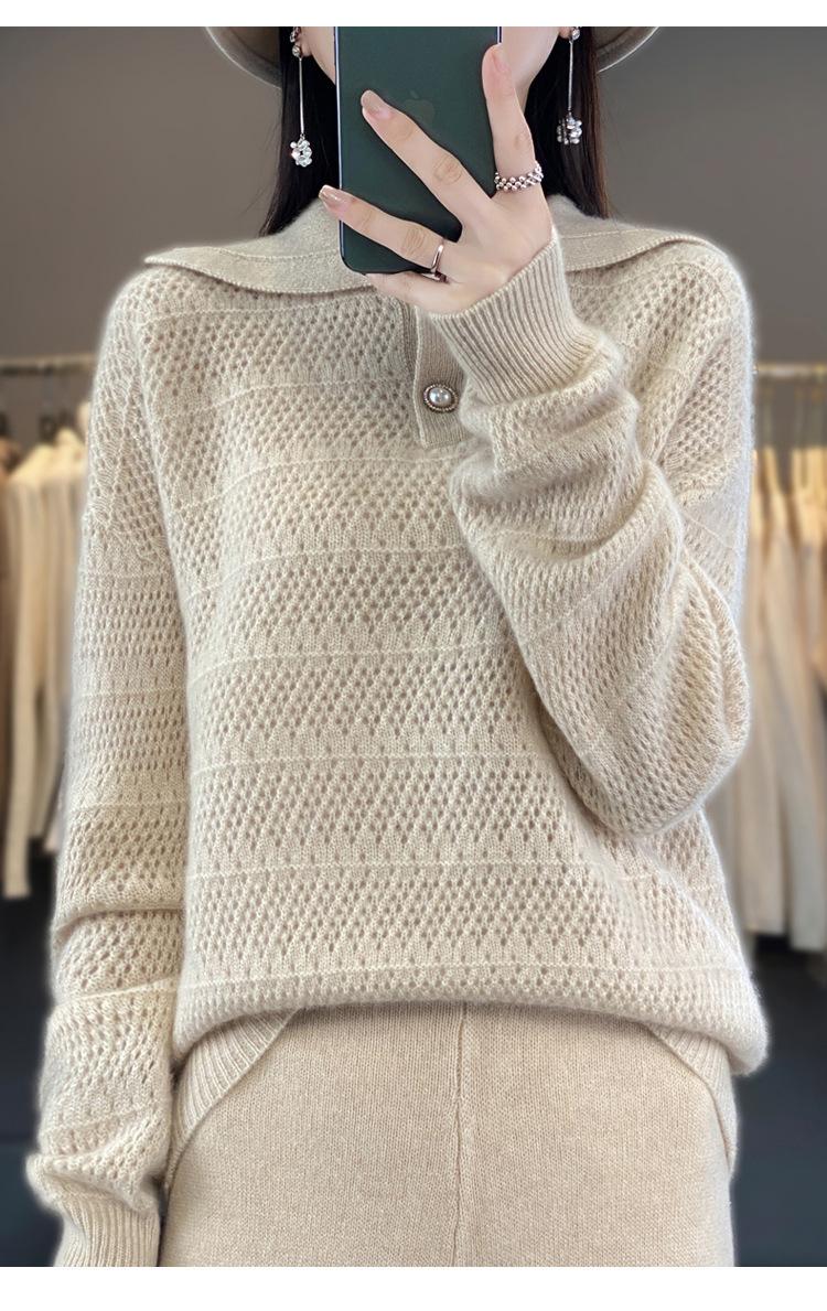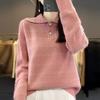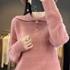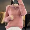 Suéter de Lana para Mujer Otoño e Invierno 2025 Nuevo Jersey con Aberturas Cuello Polo Tejido Suéter Holgado Cálido Suéter Grueso a la Moda