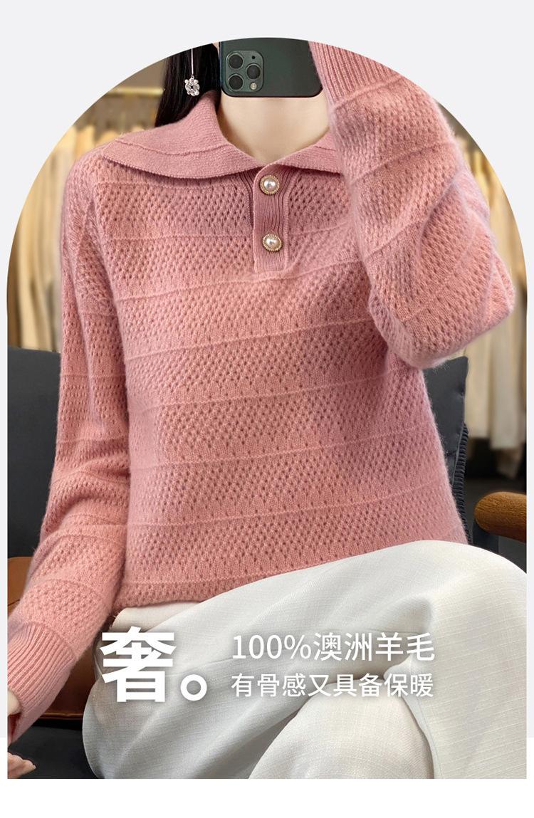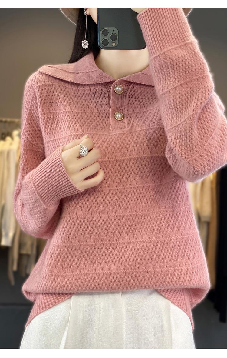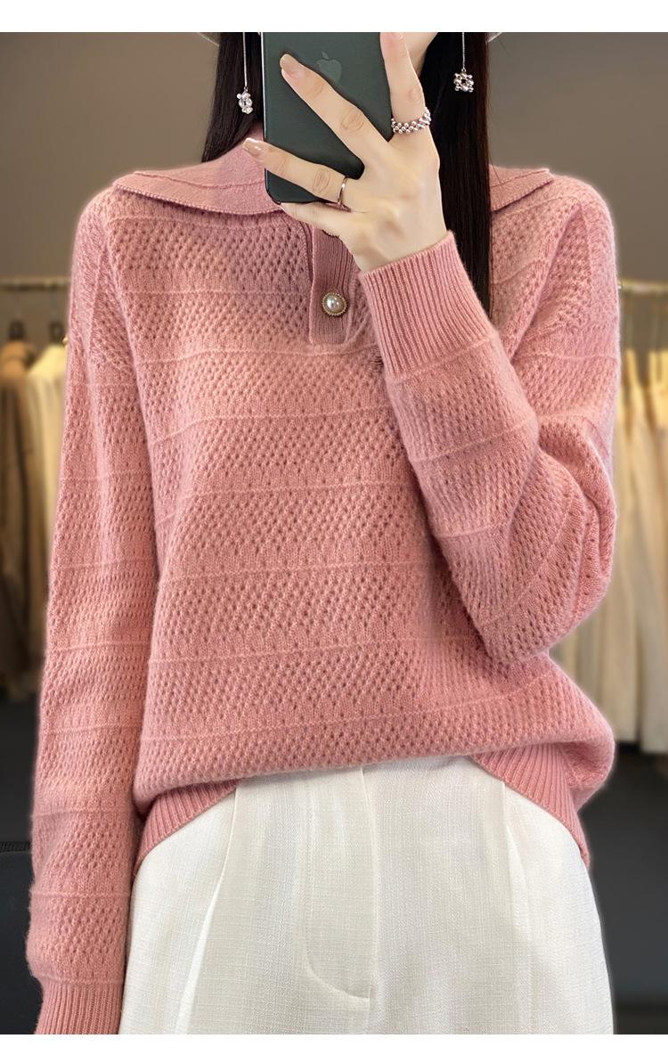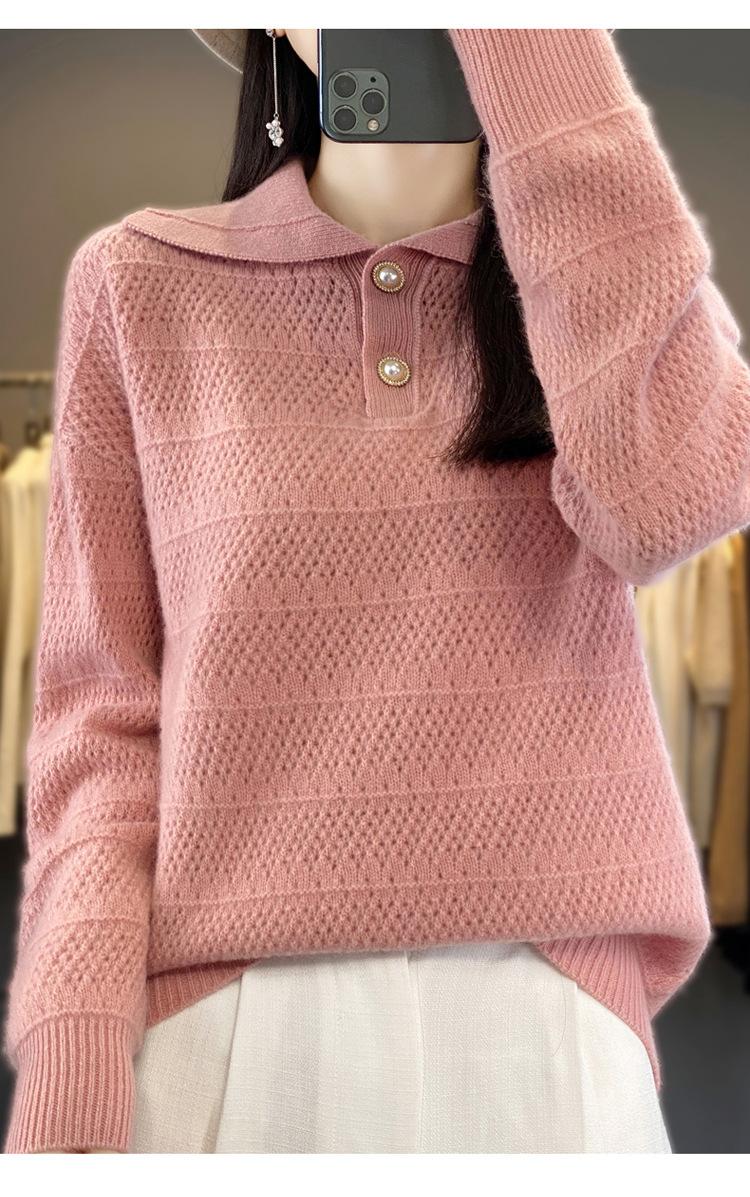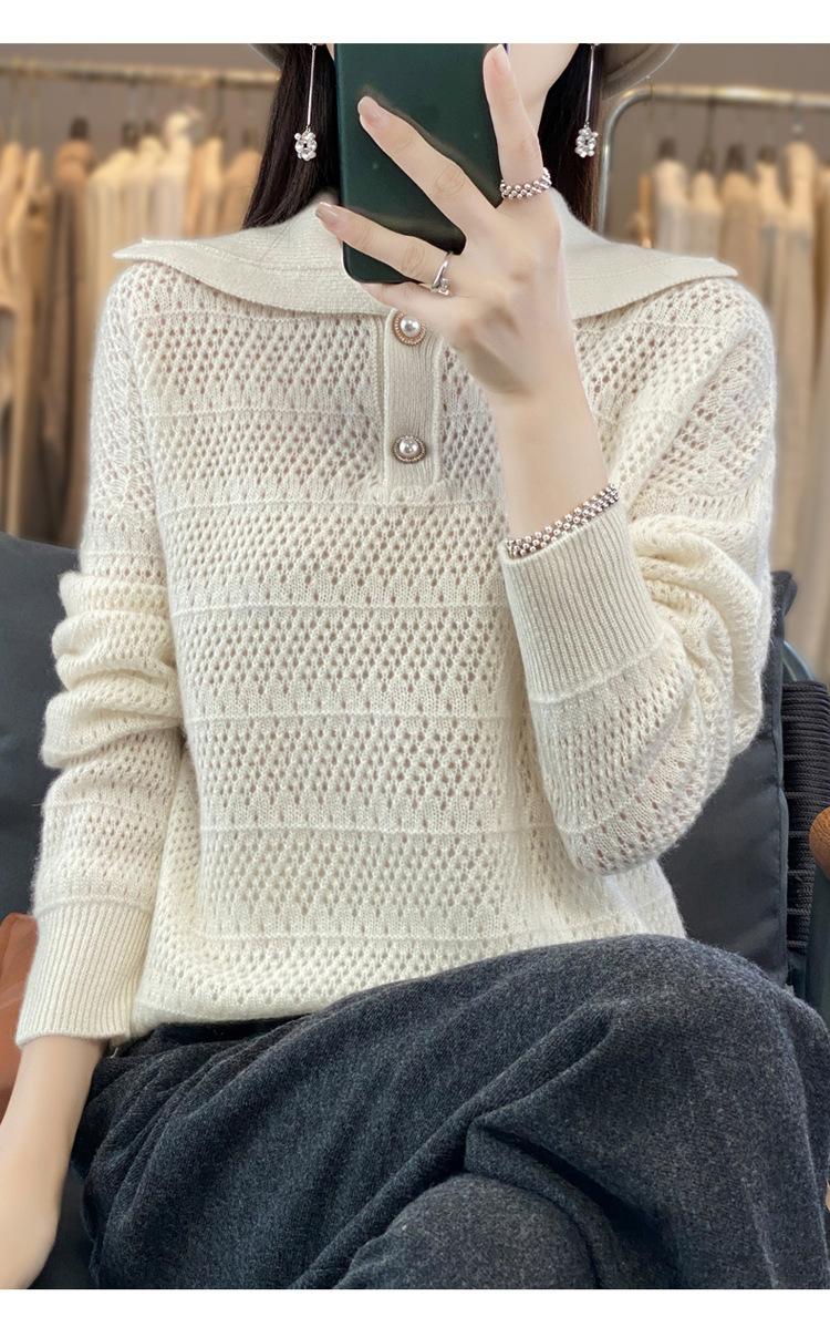 Suéter de Lana para Mujer Otoño e Invierno 2025 Nuevo Jersey con Aberturas Cuello Polo Tejido Suéter Holgado Cálido Suéter Grueso a la Moda