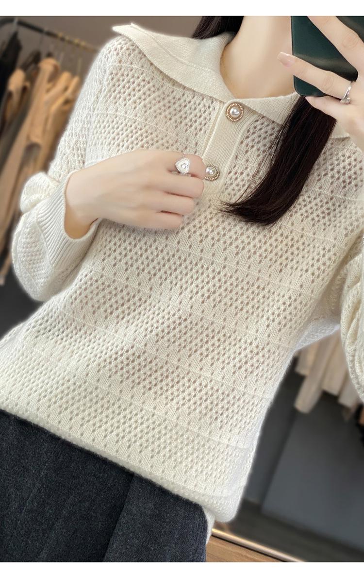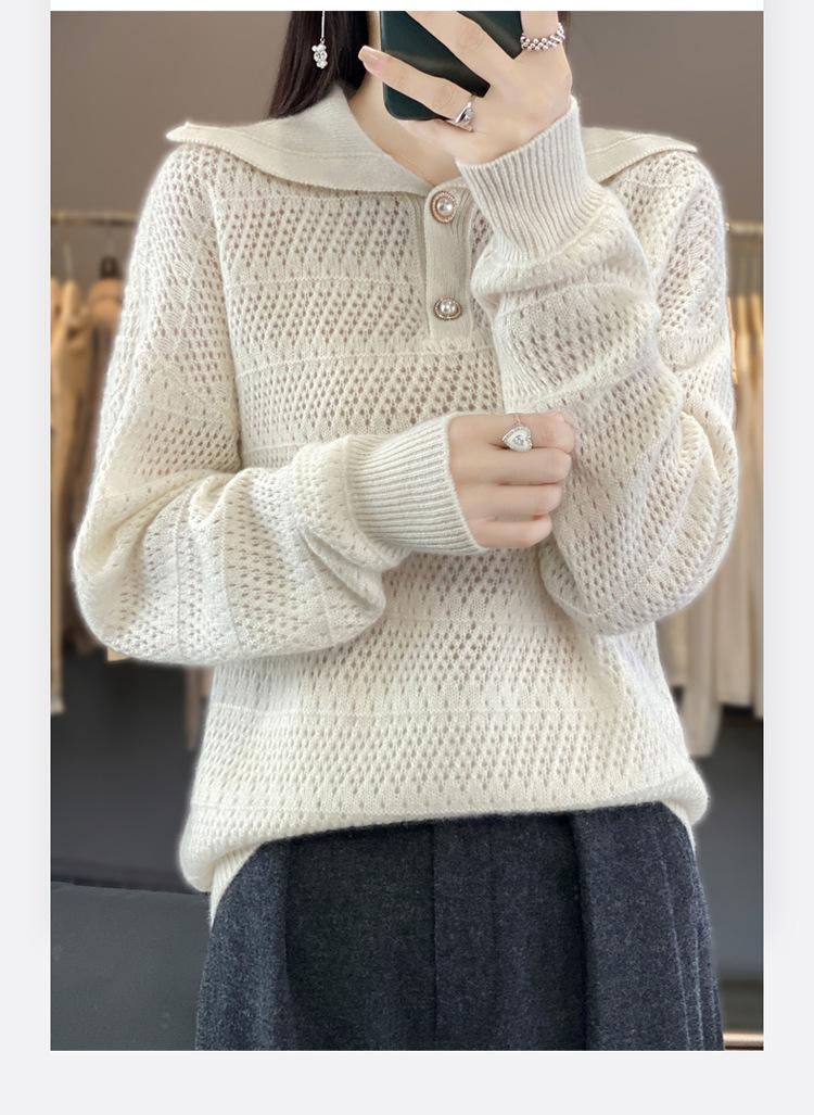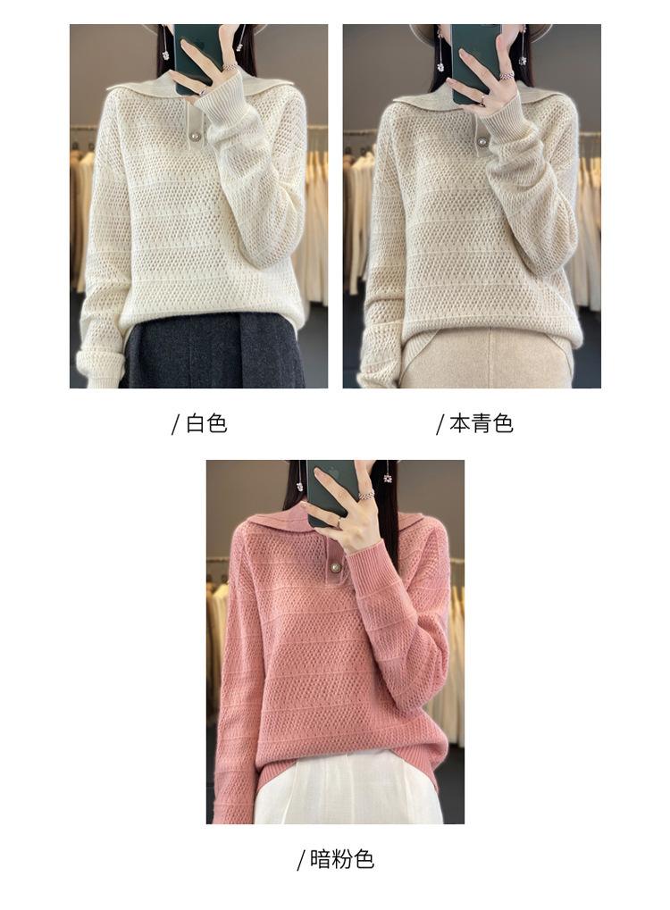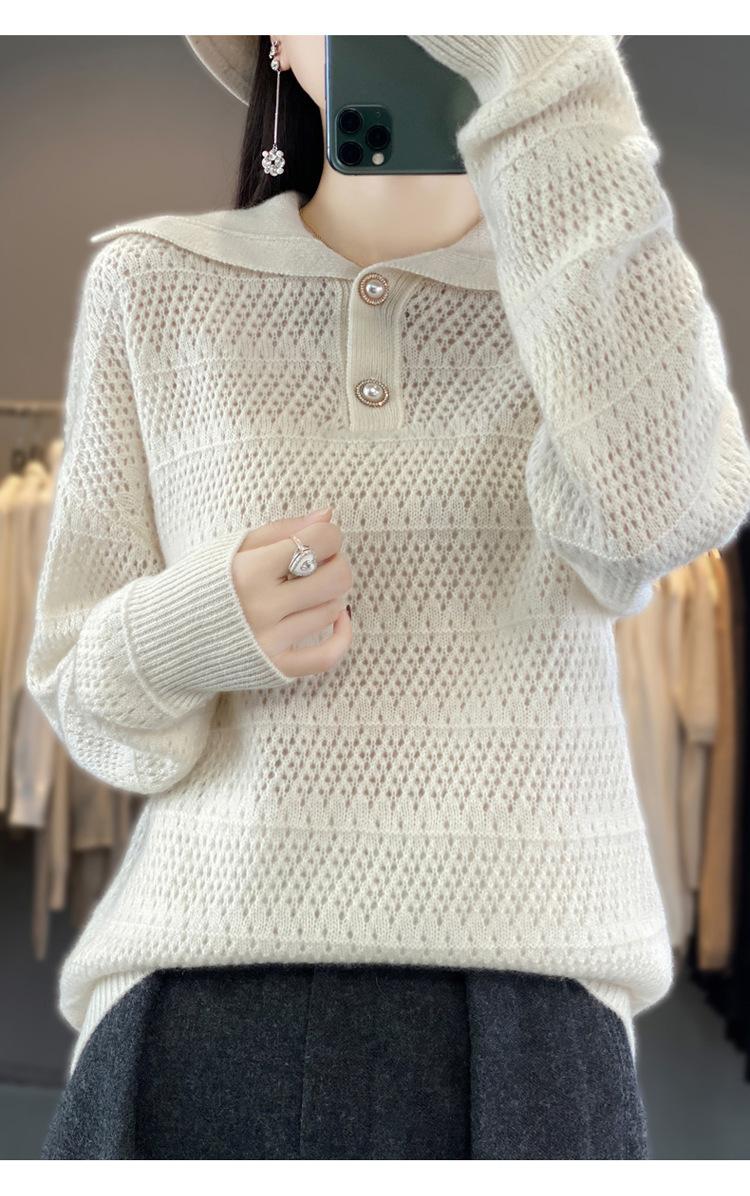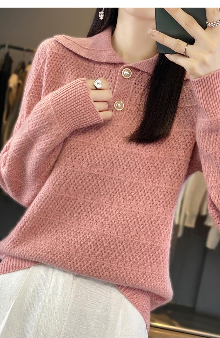 Suéter de Lana para Mujer Otoño e Invierno 2025 Nuevo Jersey con Aberturas Cuello Polo Tejido Suéter Holgado Cálido Suéter Grueso a la Moda