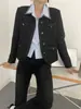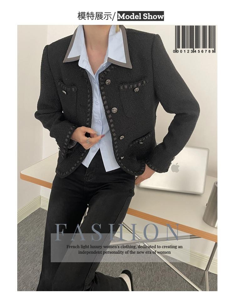 Abrigo tweed negro pequeño fragante soñador buscador de sol nuevo temperamento versátil top corto X1939