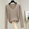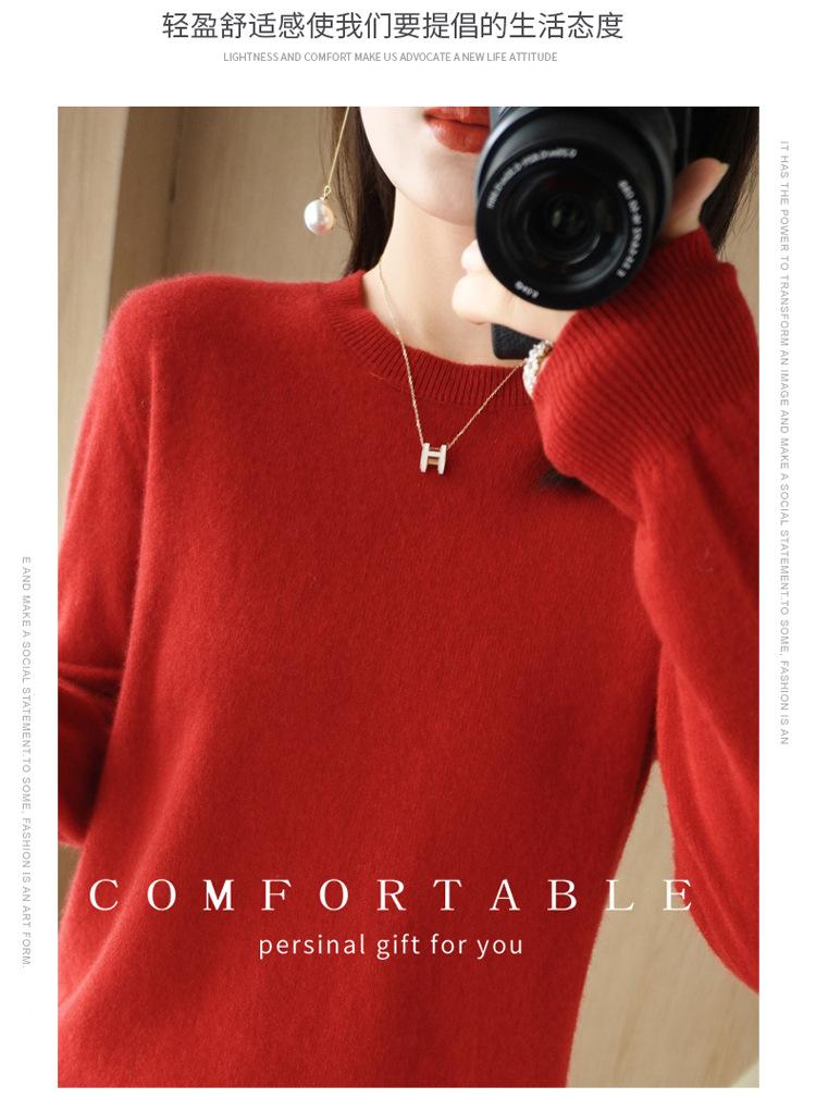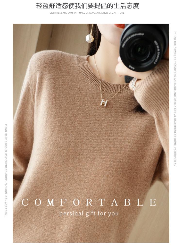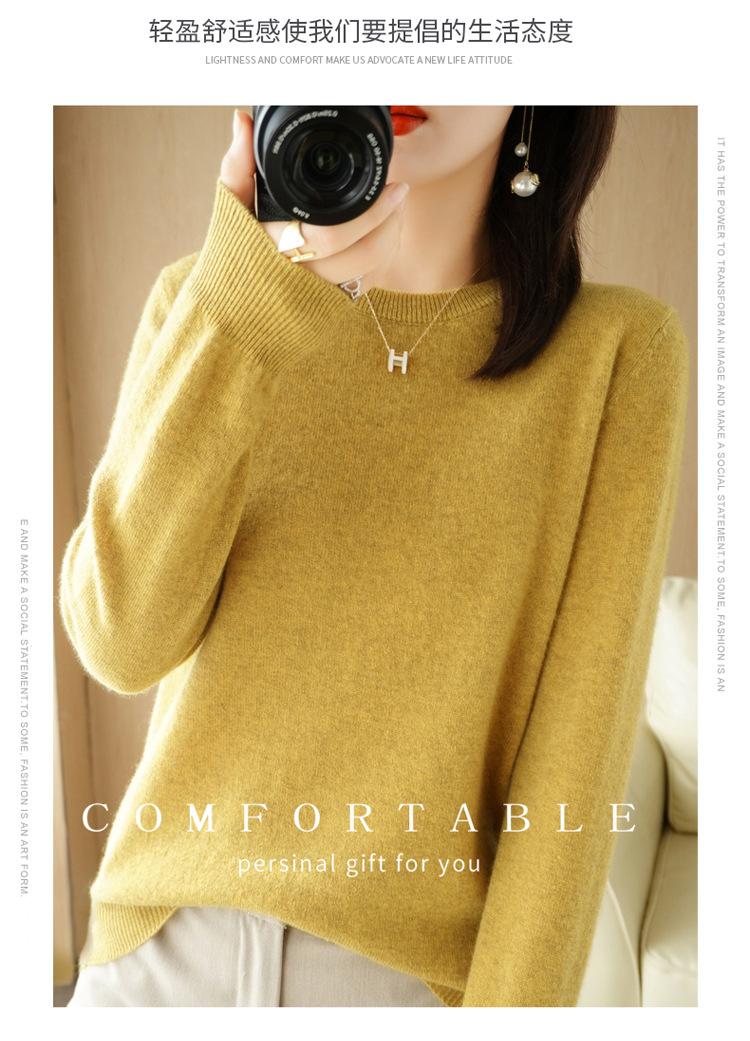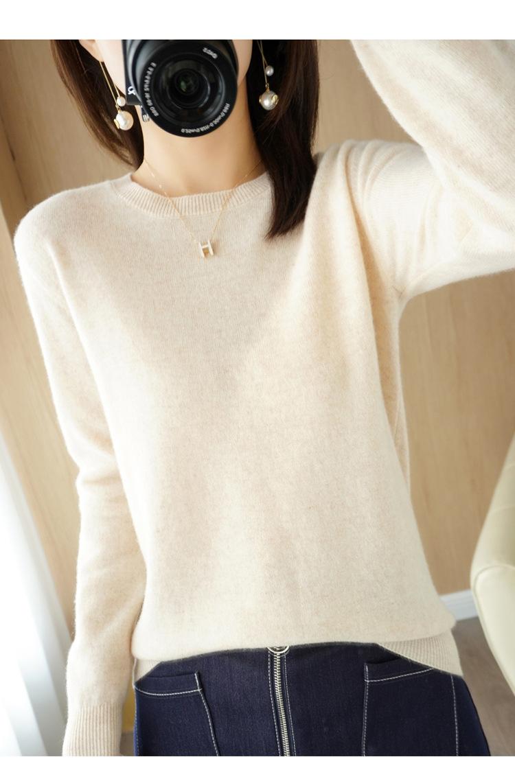 Suéter de cuello redondo para mujer, jersey de color liso, manga larga, fino, interior, corto, para otoño e invierno