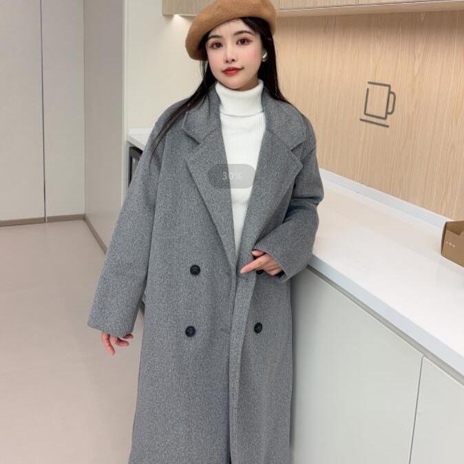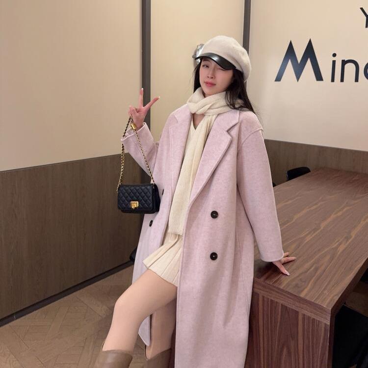 Abrigo de lana de doble cara de avena para mujer, otoño e invierno 2024, nuevo abrigo largo holgado elegante de estilo coreano para mujer