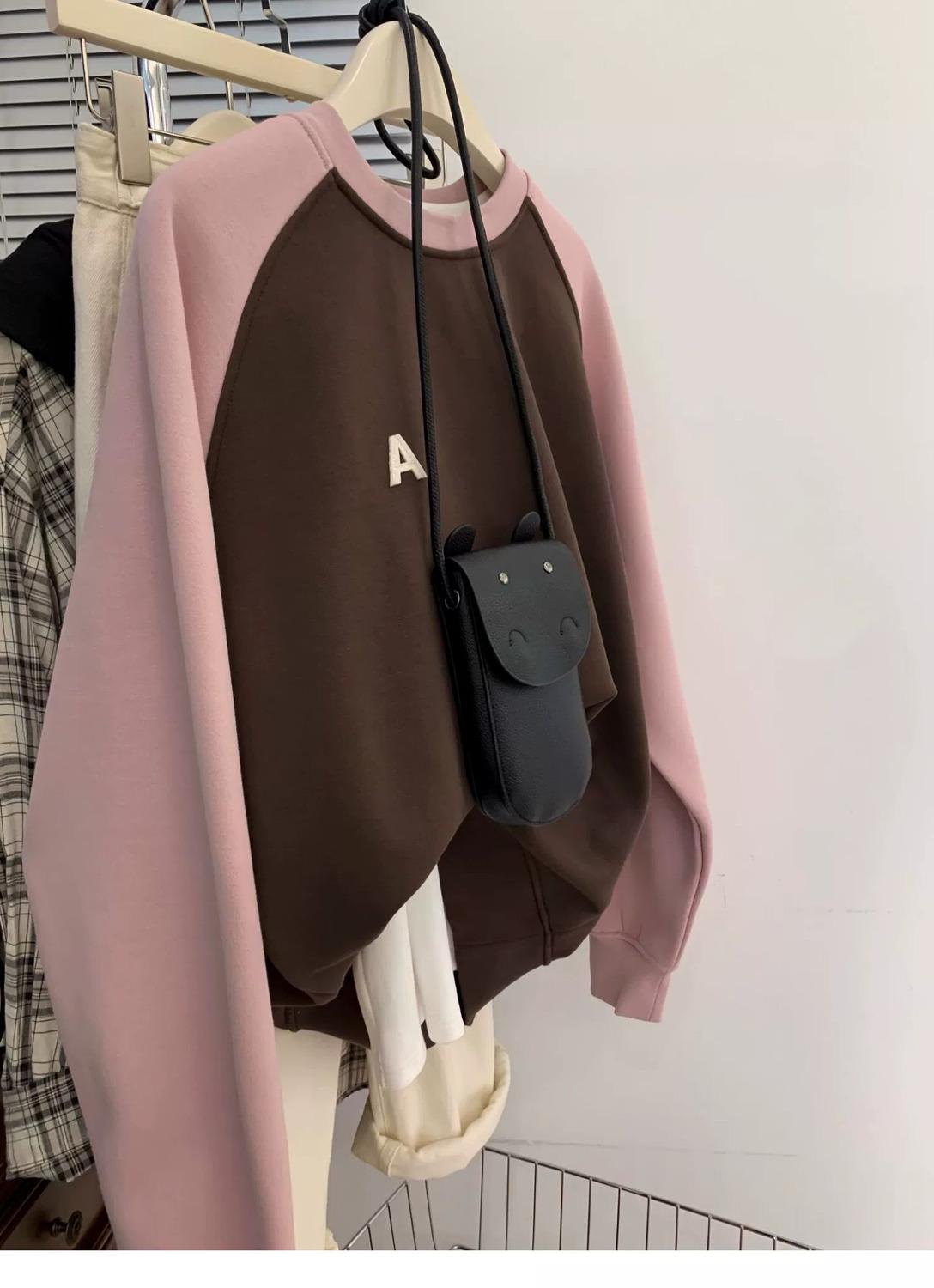 Sudadera Americana Retro Oversize de Cuello Redondo con Capucha Raglán para Mujer Top Estilo Lazy Primavera y Otoño Principios de Otoño 2024 Nuevo Estilo
