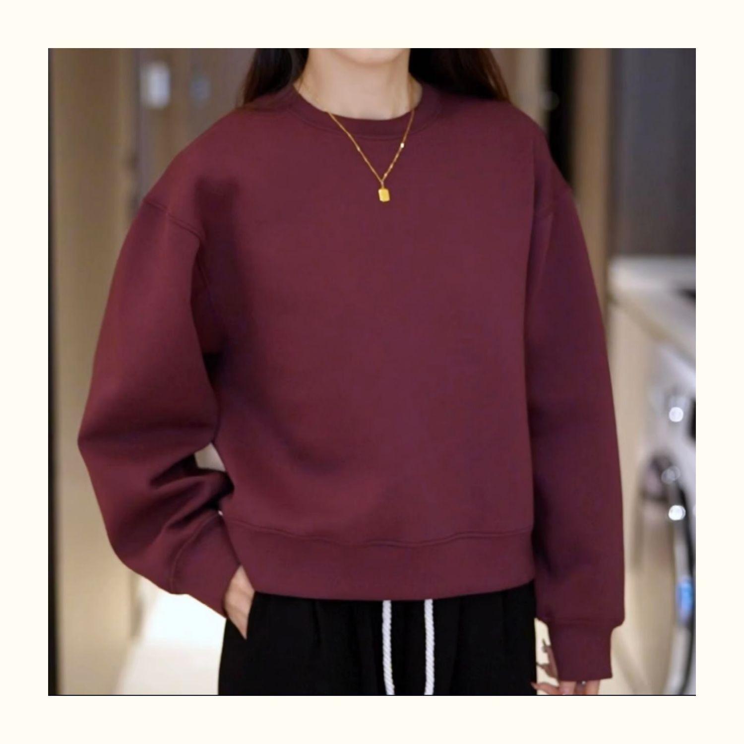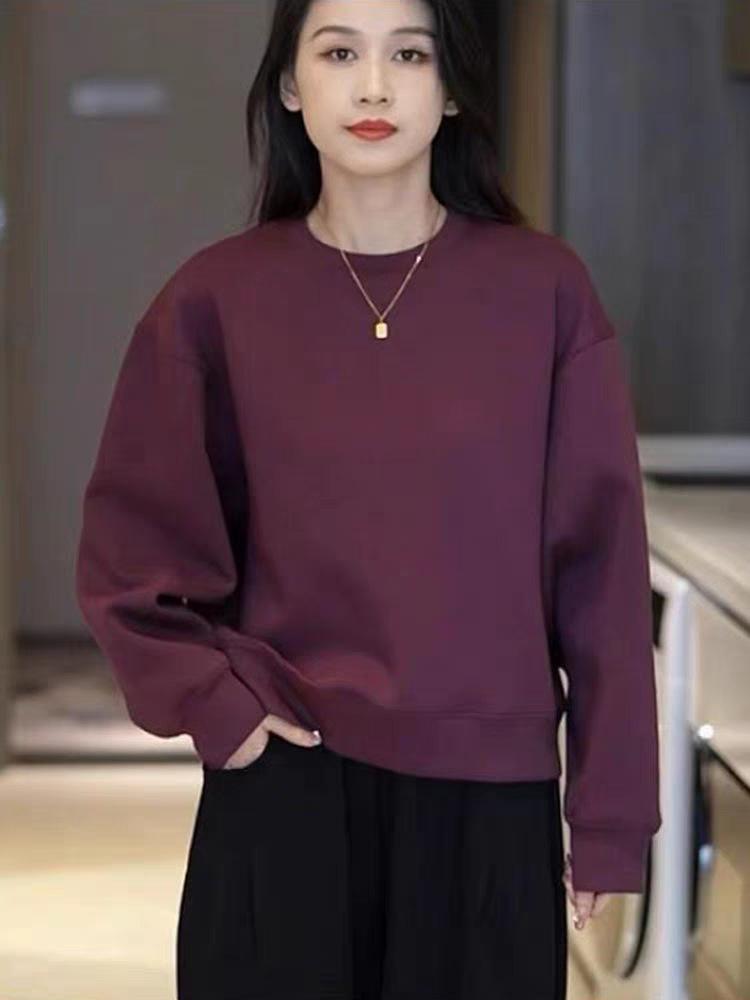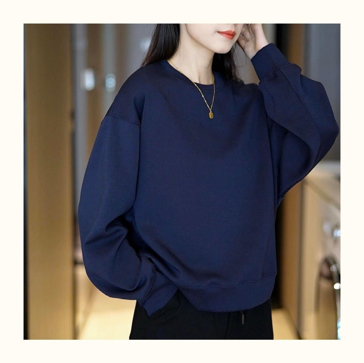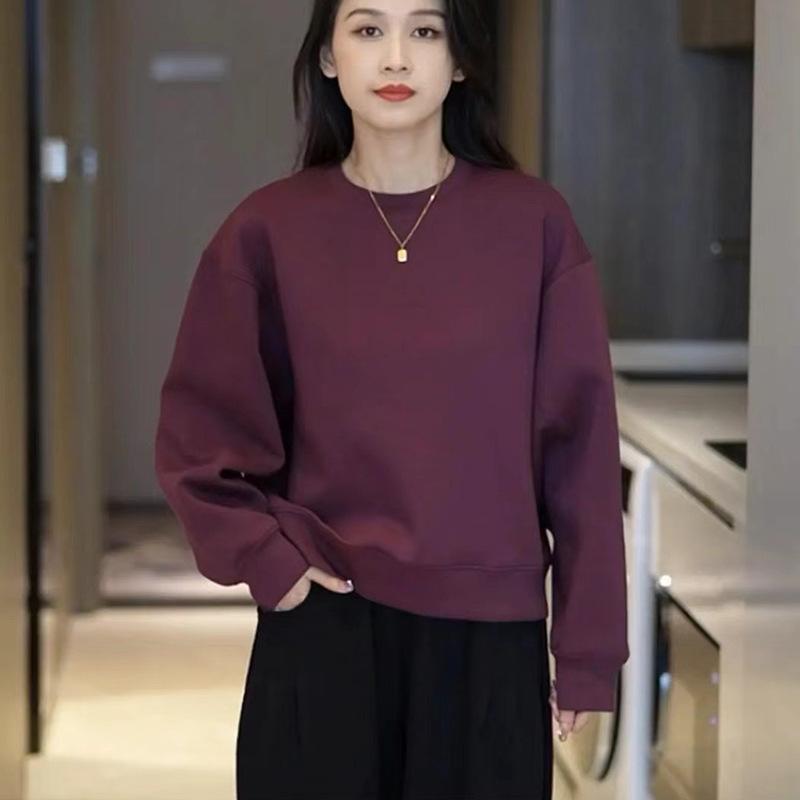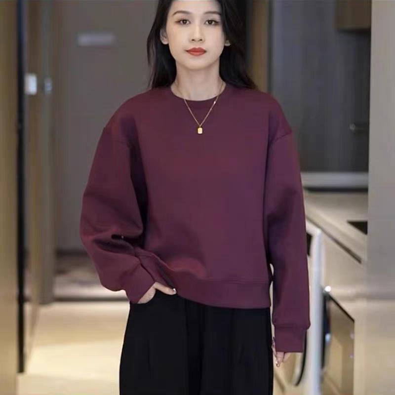 Sudadera corta gruesa de color sólido para mujer, manga larga, nueva primavera 2024, holgada, casual, versátil, moderna