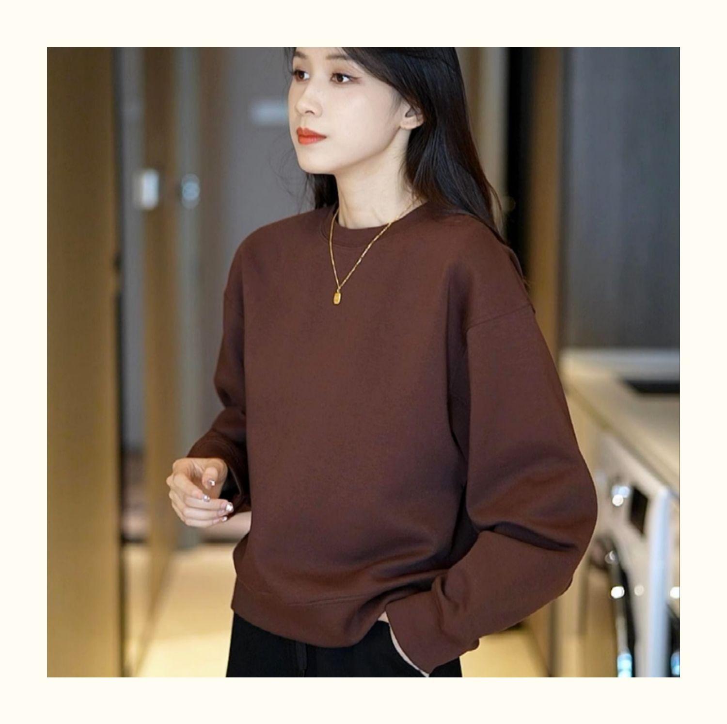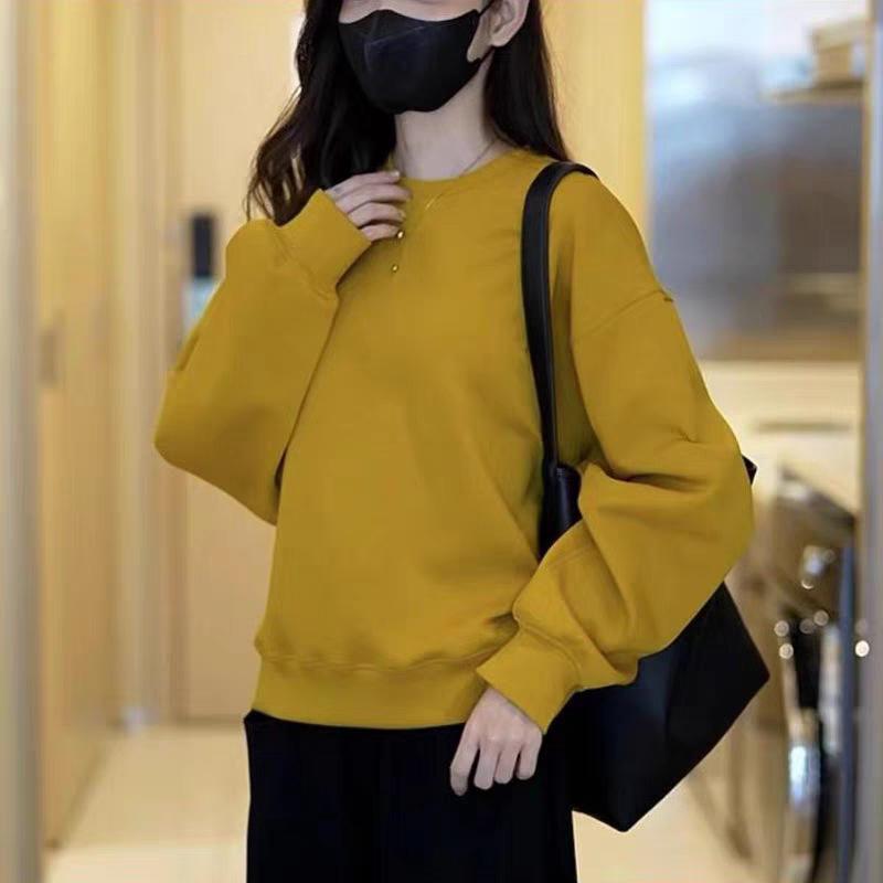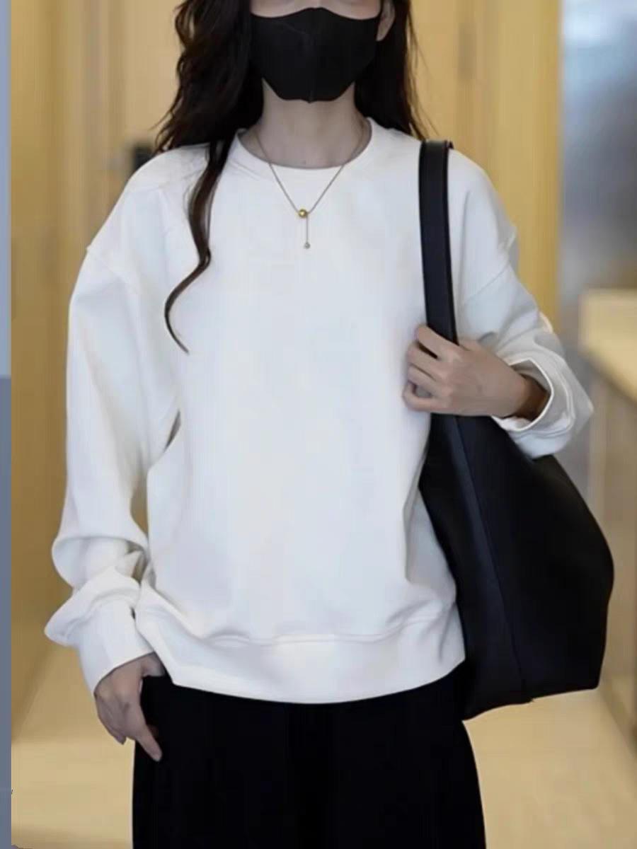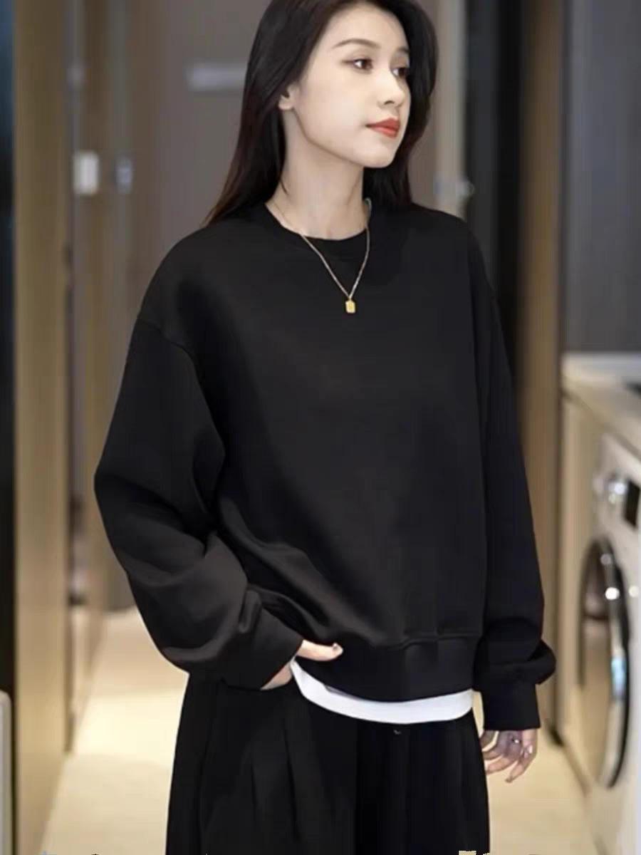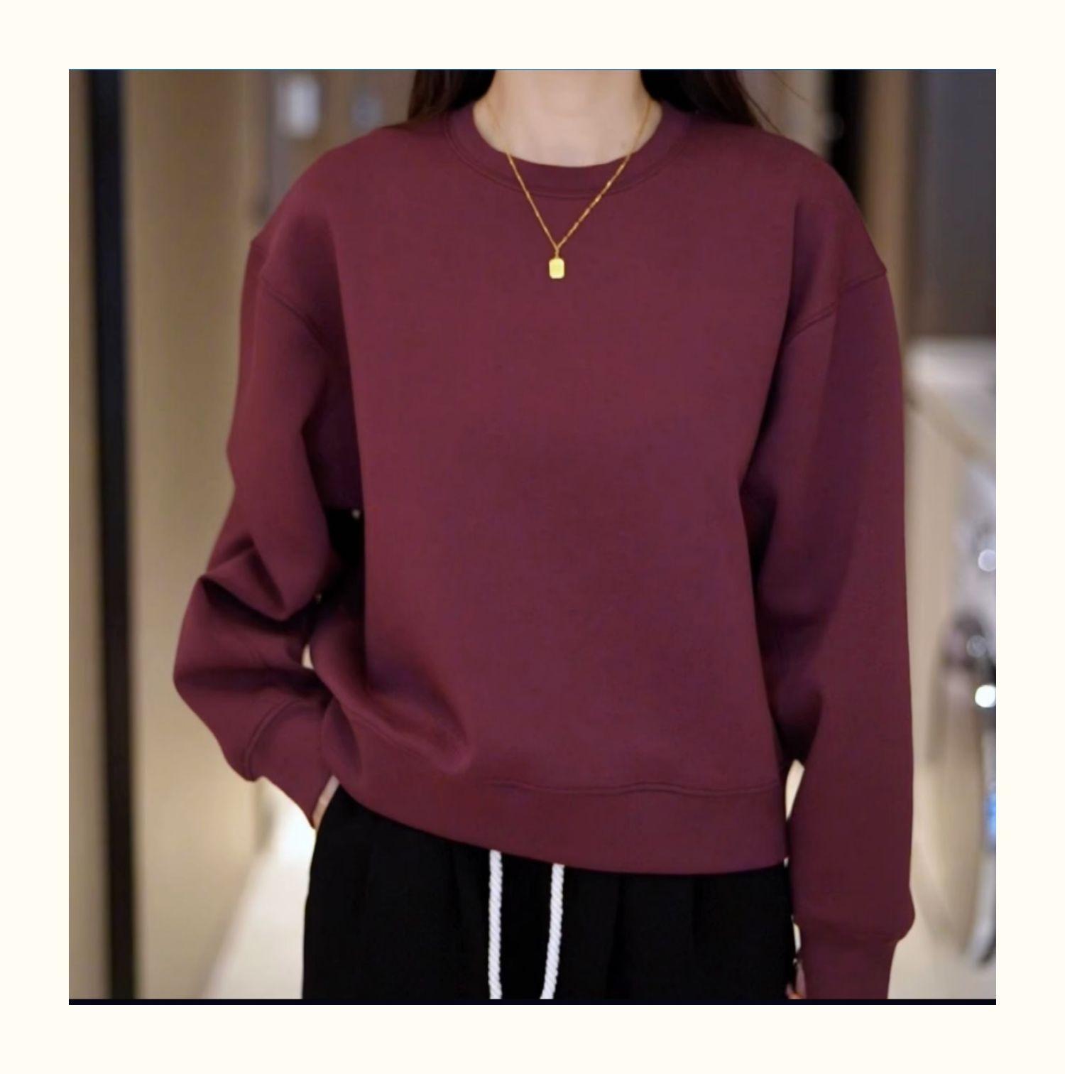 Sudadera corta gruesa de color sólido para mujer, manga larga, nueva primavera 2024, holgada, casual, versátil, moderna