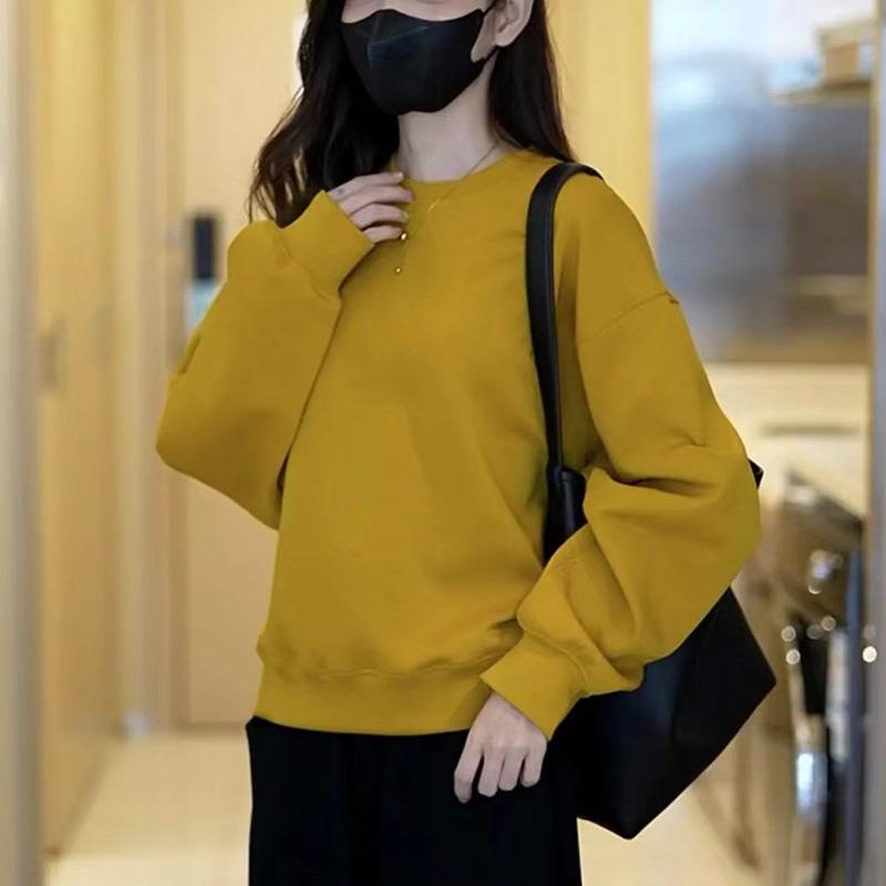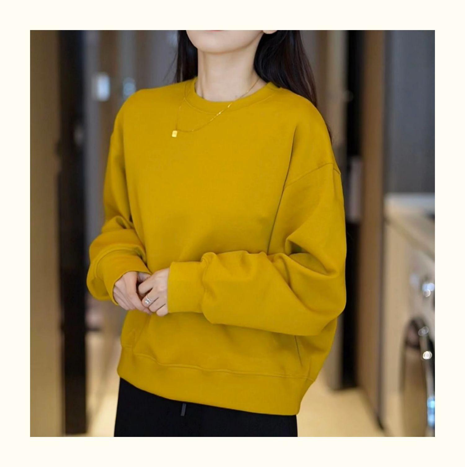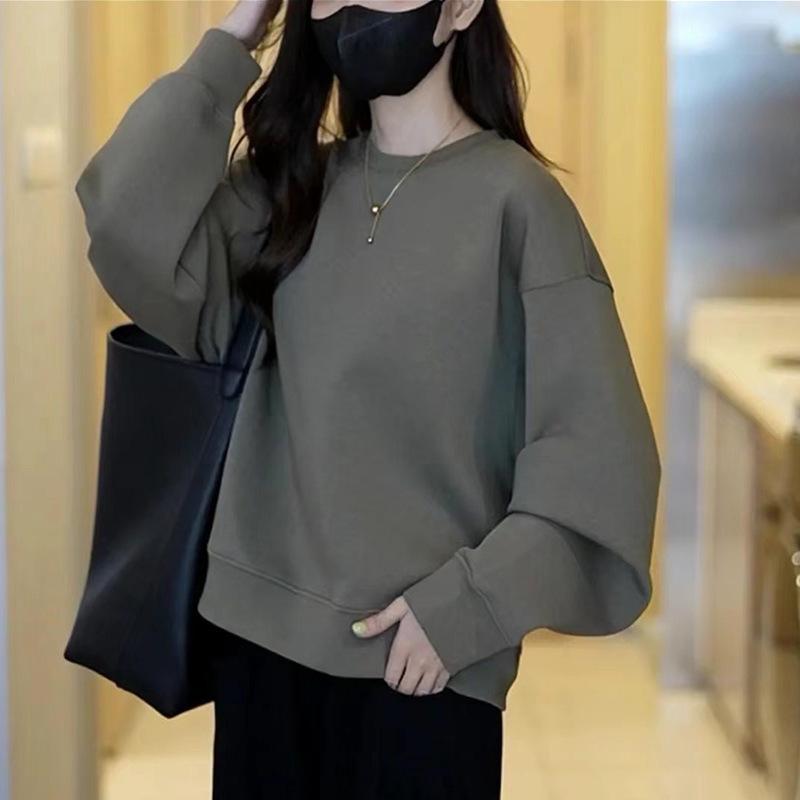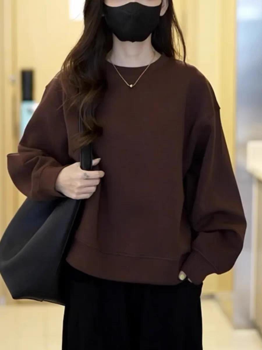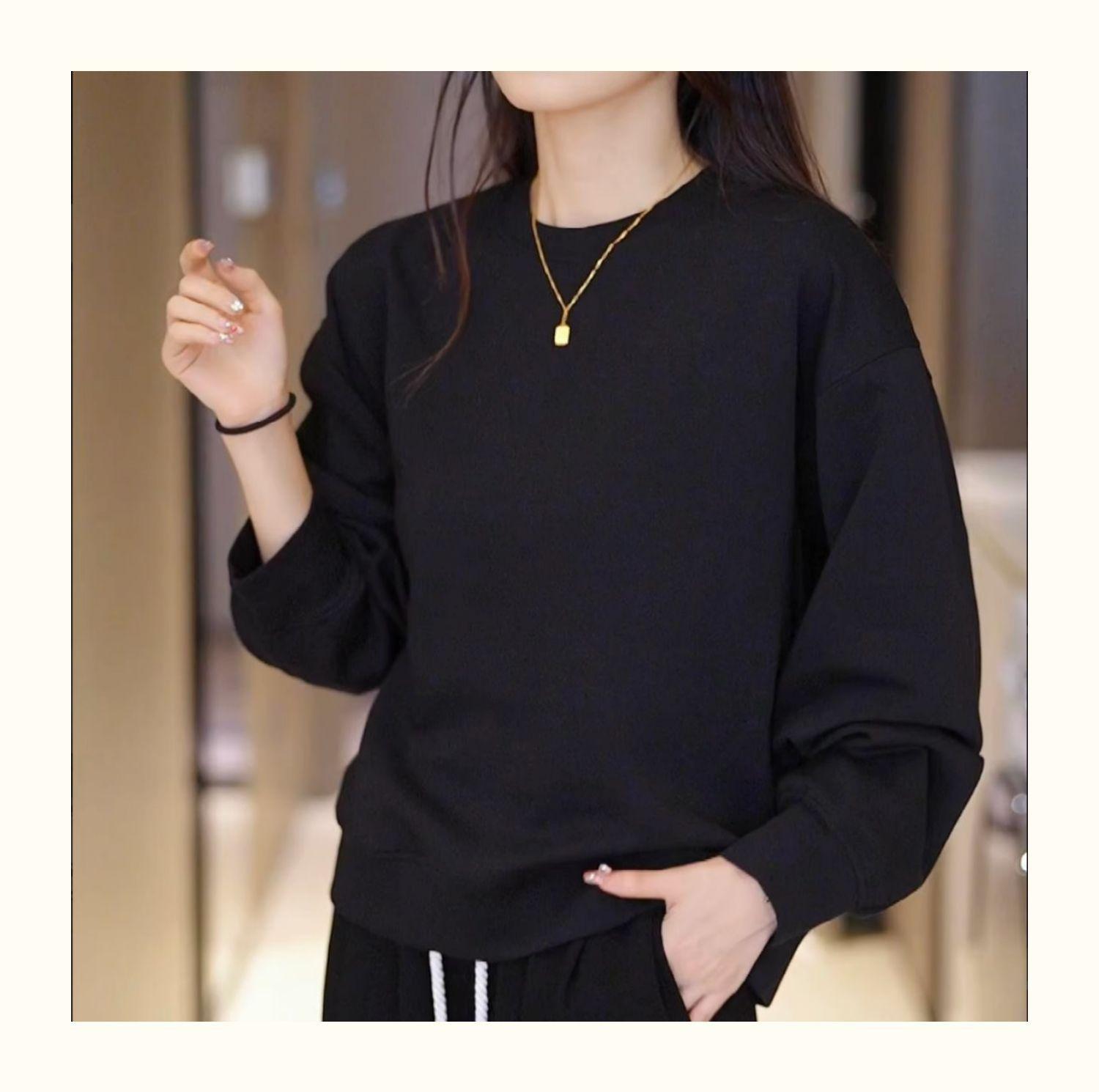 Sudadera corta gruesa de color sólido para mujer, manga larga, nueva primavera 2024, holgada, casual, versátil, moderna