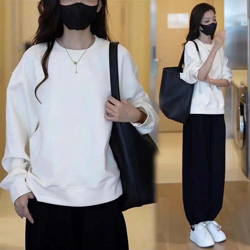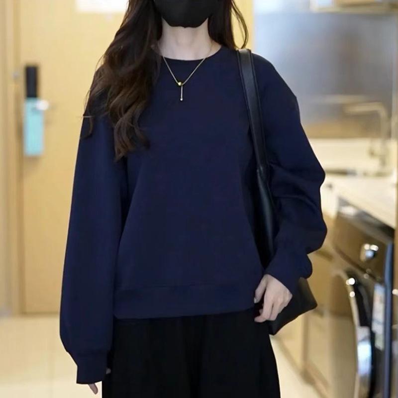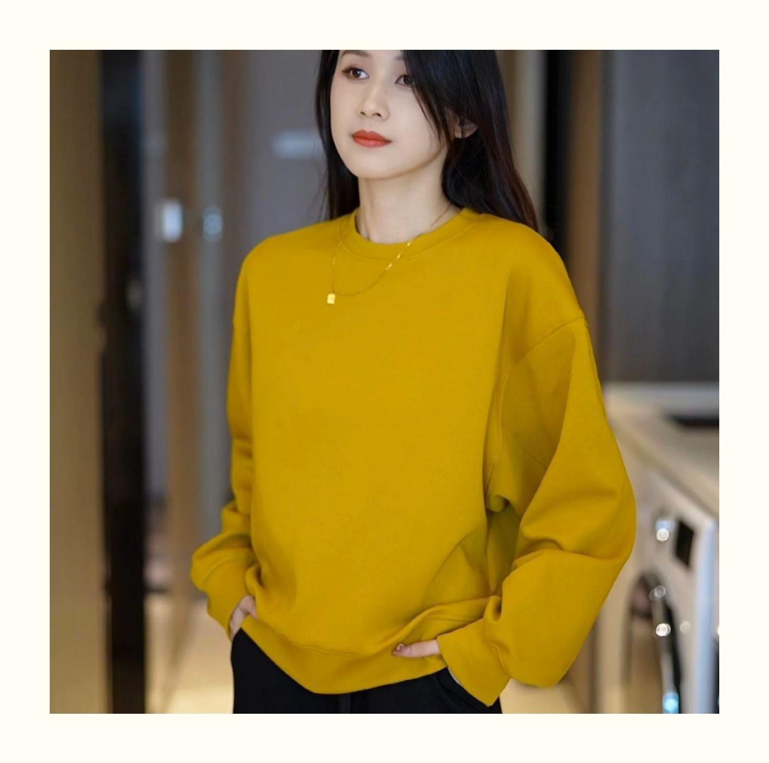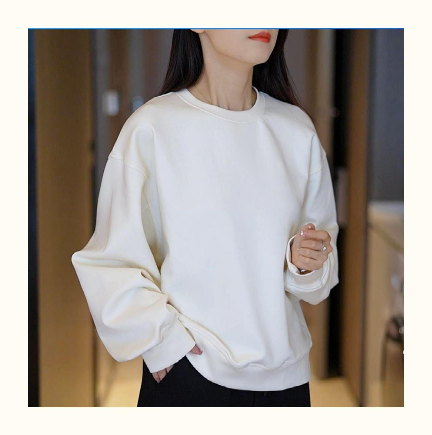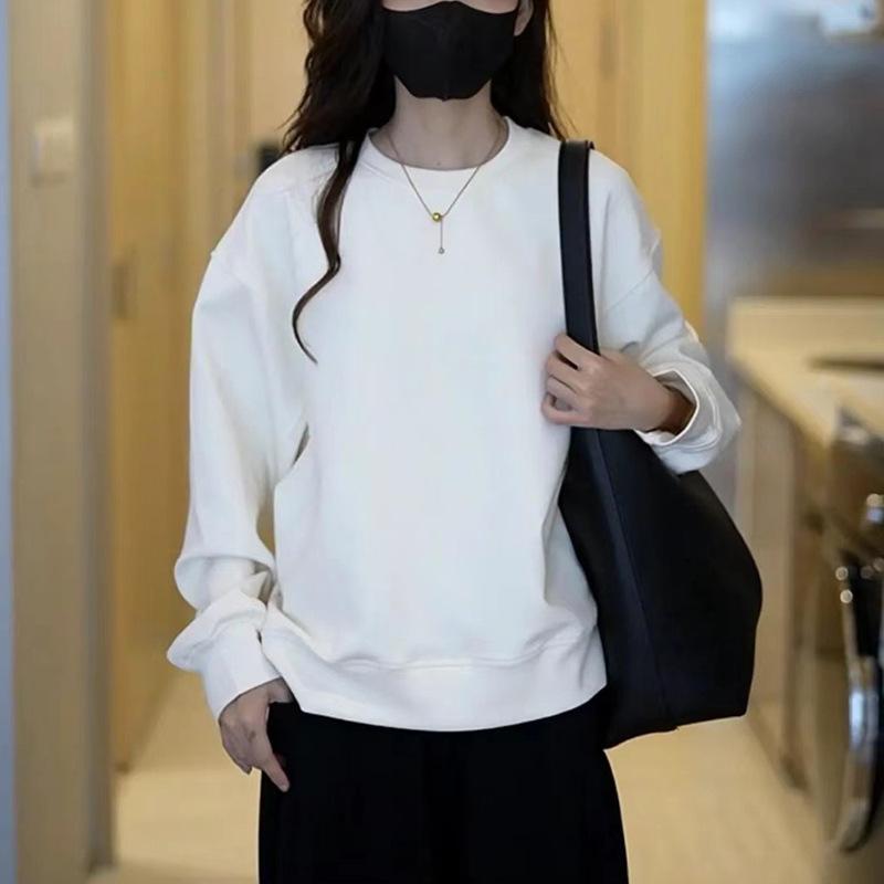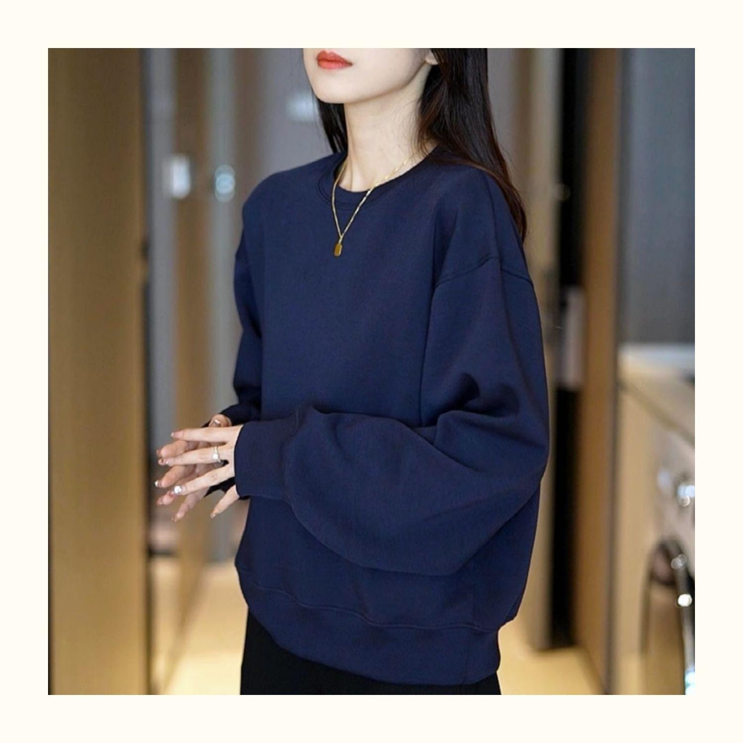 Sudadera corta gruesa de color sólido para mujer, manga larga, nueva primavera 2024, holgada, casual, versátil, moderna