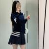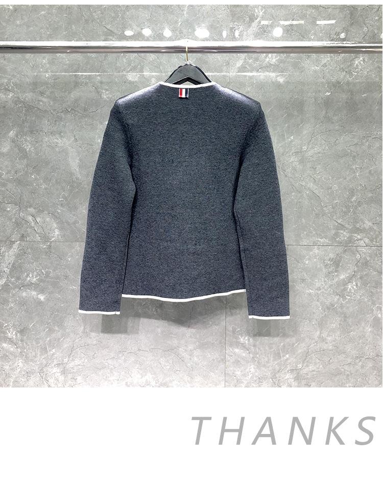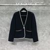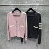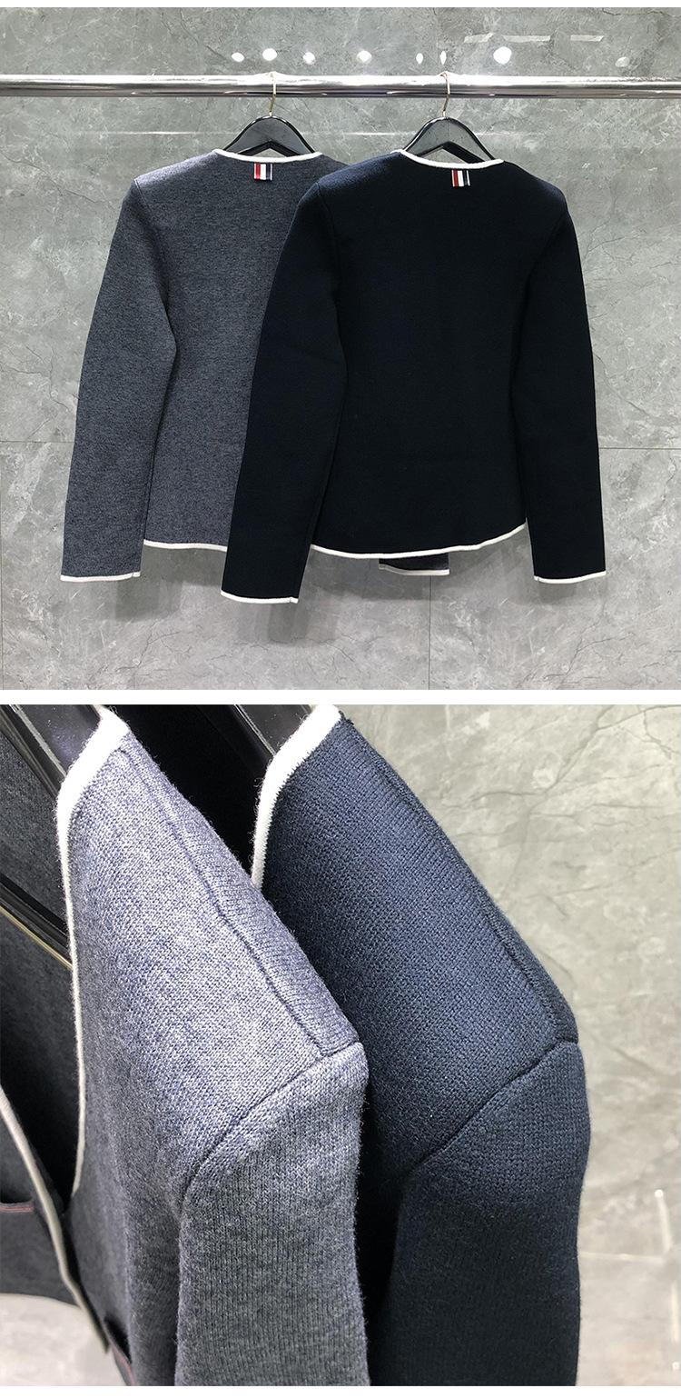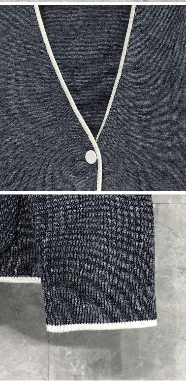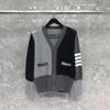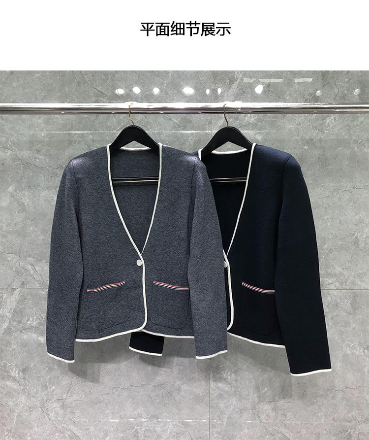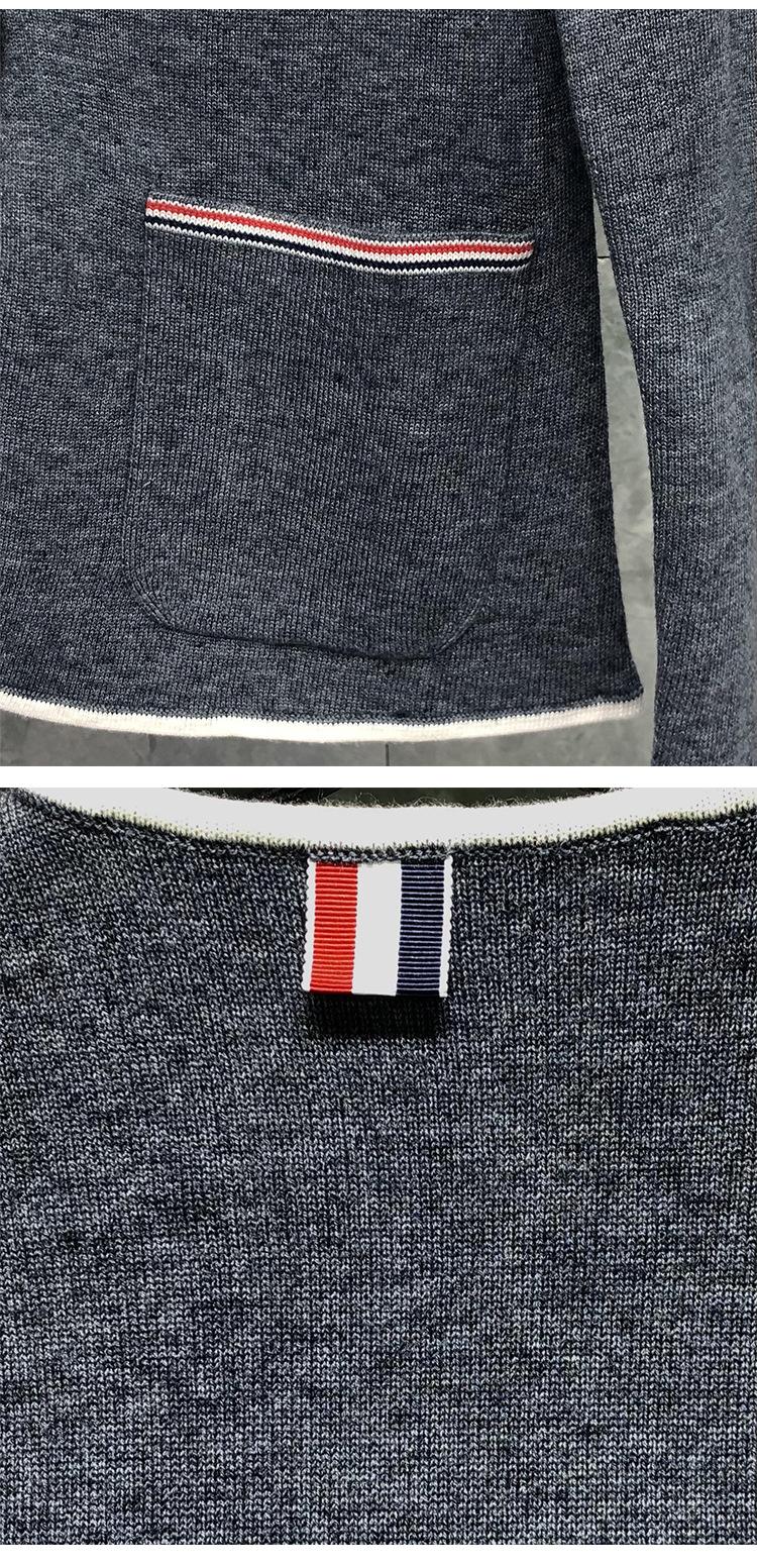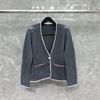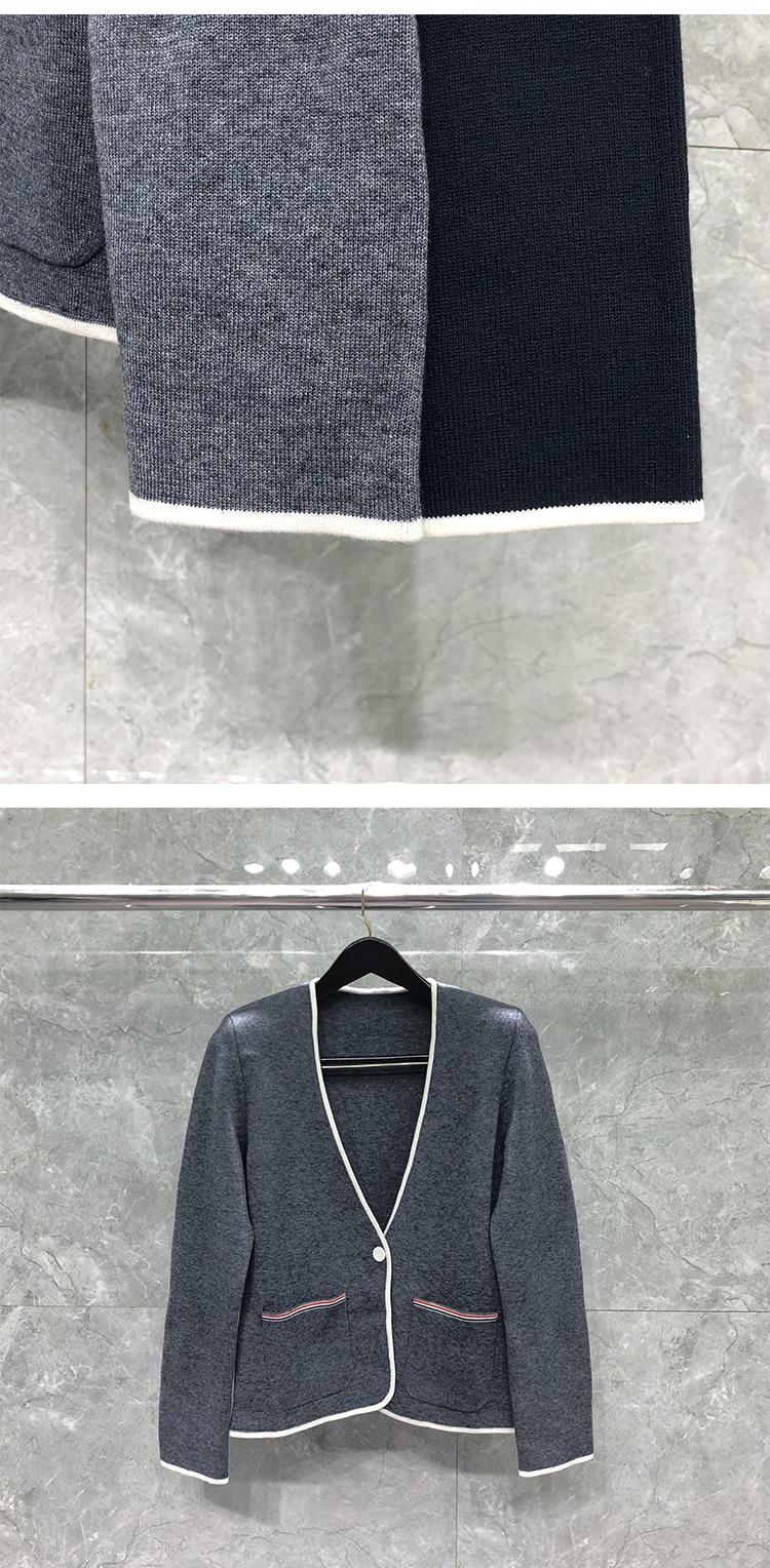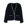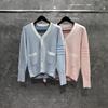 Suéter TIME BREATHE para mujer, primavera y otoño, cárdigan de lana con cuello en V, color rojo, blanco y azul, con un solo botón y bolsillo lateral blanco.