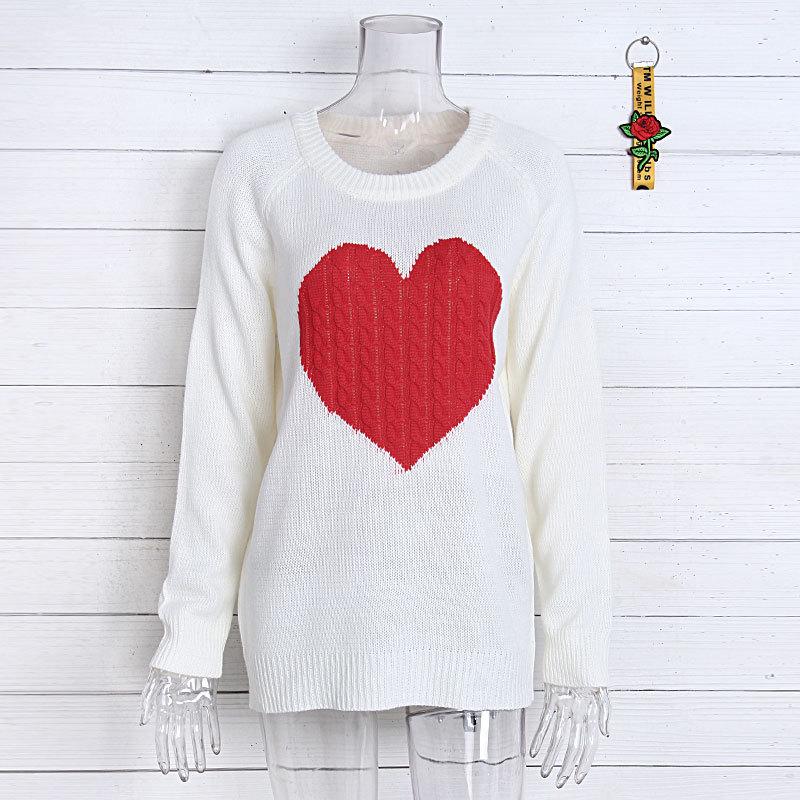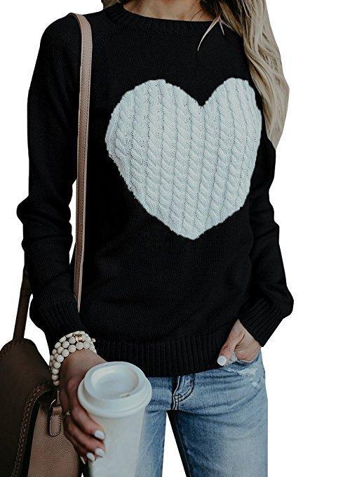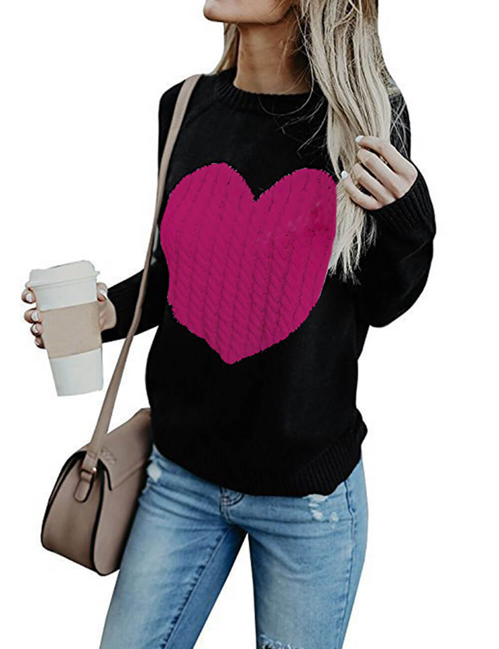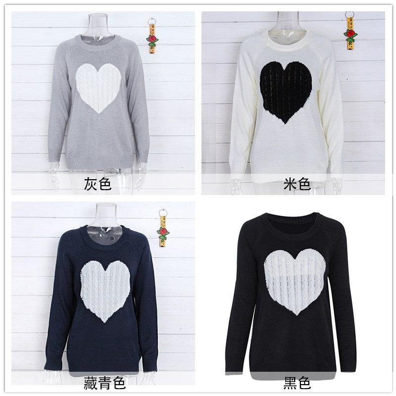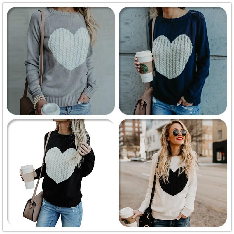 Suéteres Nuevos de Otoño e Invierno Europeos y Americanos a Juego Transfronterizo Amazon Suéteres de Moda de Cuello Redondo Suéteres de Amor Jersey de Moda Ropa de Mujer