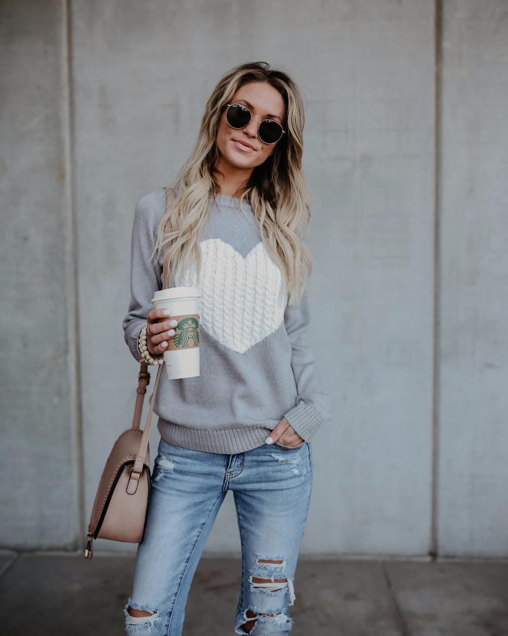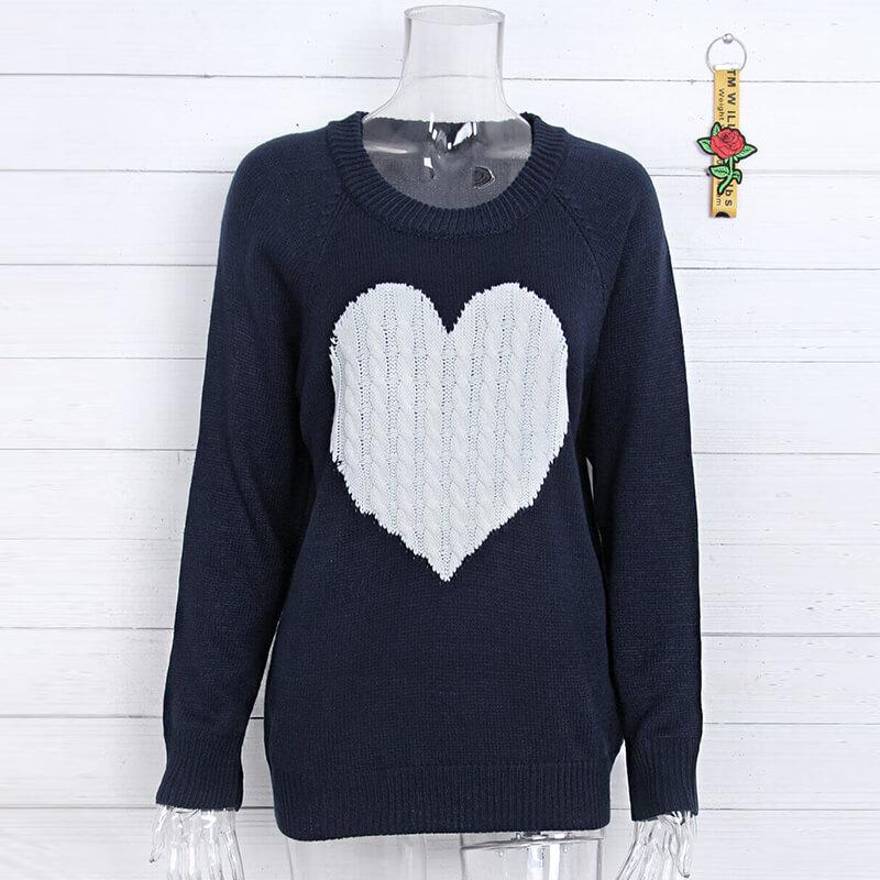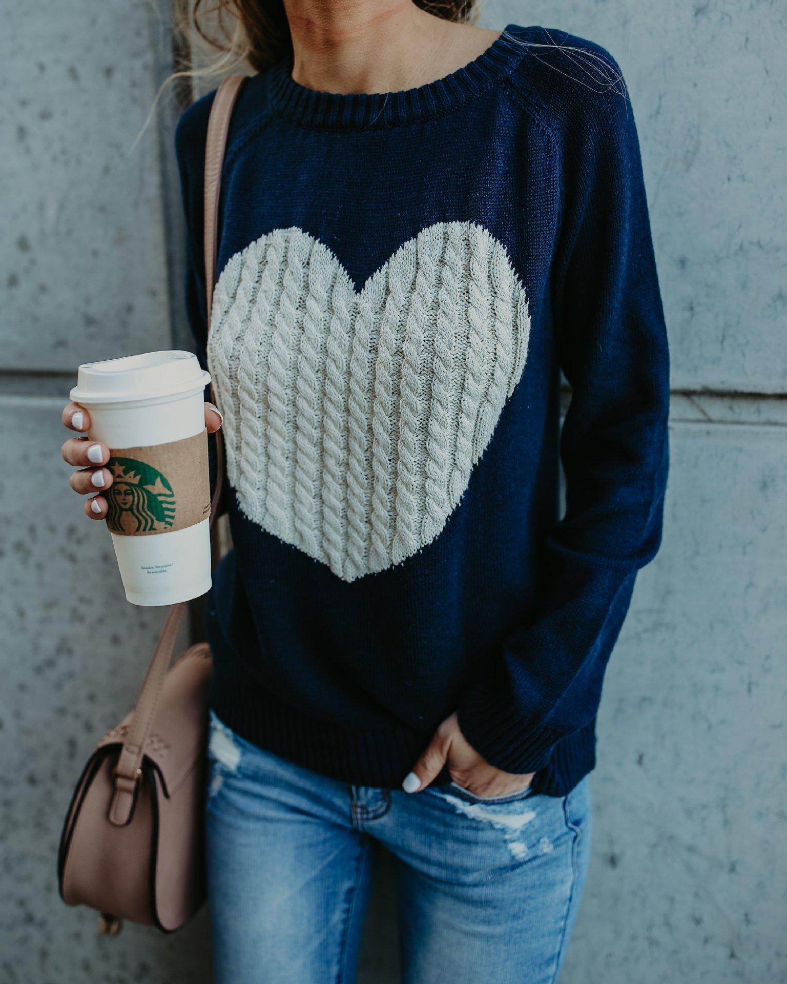 Suéteres Nuevos de Otoño e Invierno Europeos y Americanos a Juego Transfronterizo Amazon Suéteres de Moda de Cuello Redondo Suéteres de Amor Jersey de Moda Ropa de Mujer