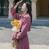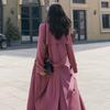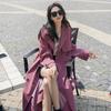 Abrigo cortavientos color púrpura rosa de tiro real para mujer, largo medio, primavera y otoño 2024 nuevo estilo coreano, abrigo cruzado