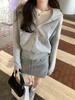 Suéter corto con capucha retro de estilo americano para mujer, abrigo de otoño e invierno 2023, nuevo cárdigan pequeño y versátil con cremallera.
