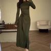 Otoño 2024 nuevo vestido europeo y americano transfronterizo Amazon transfronterizo estilo cintura con cordones elegante color sólido mujer