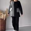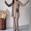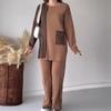 Otoño 2023, nuevo traje de punto informal con cuello redondo estampado a rayas de colores contrastantes de moda transfronteriza de Amazon para mujer, Europa y América